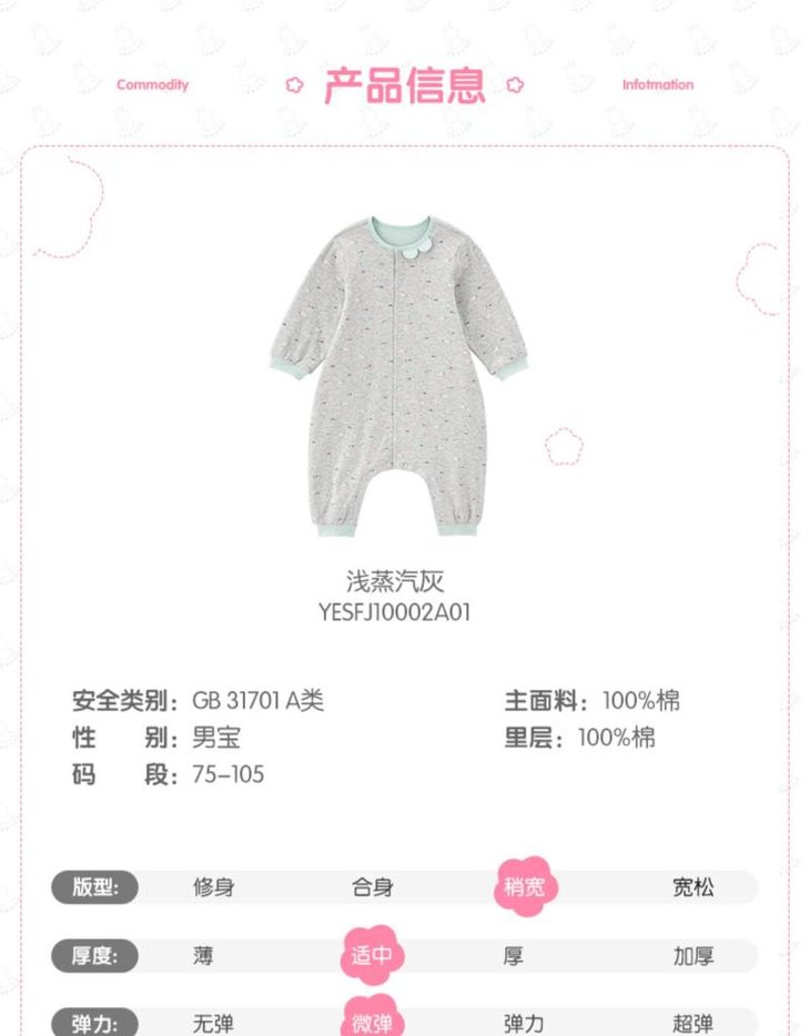 英氏婴儿纯棉防踢被分腿薄睡袋儿童YESFJ10002A01 YESFJ10001A01