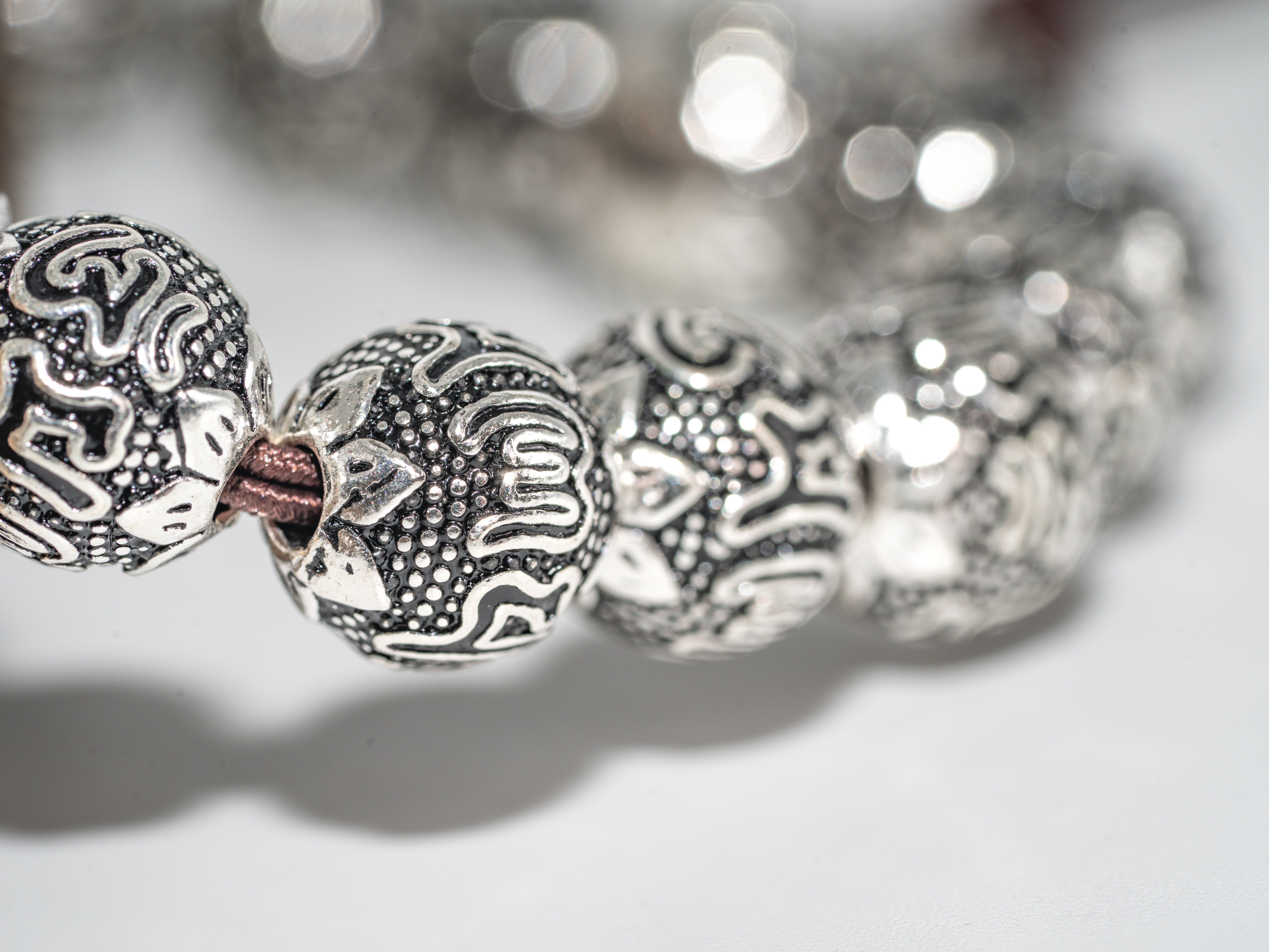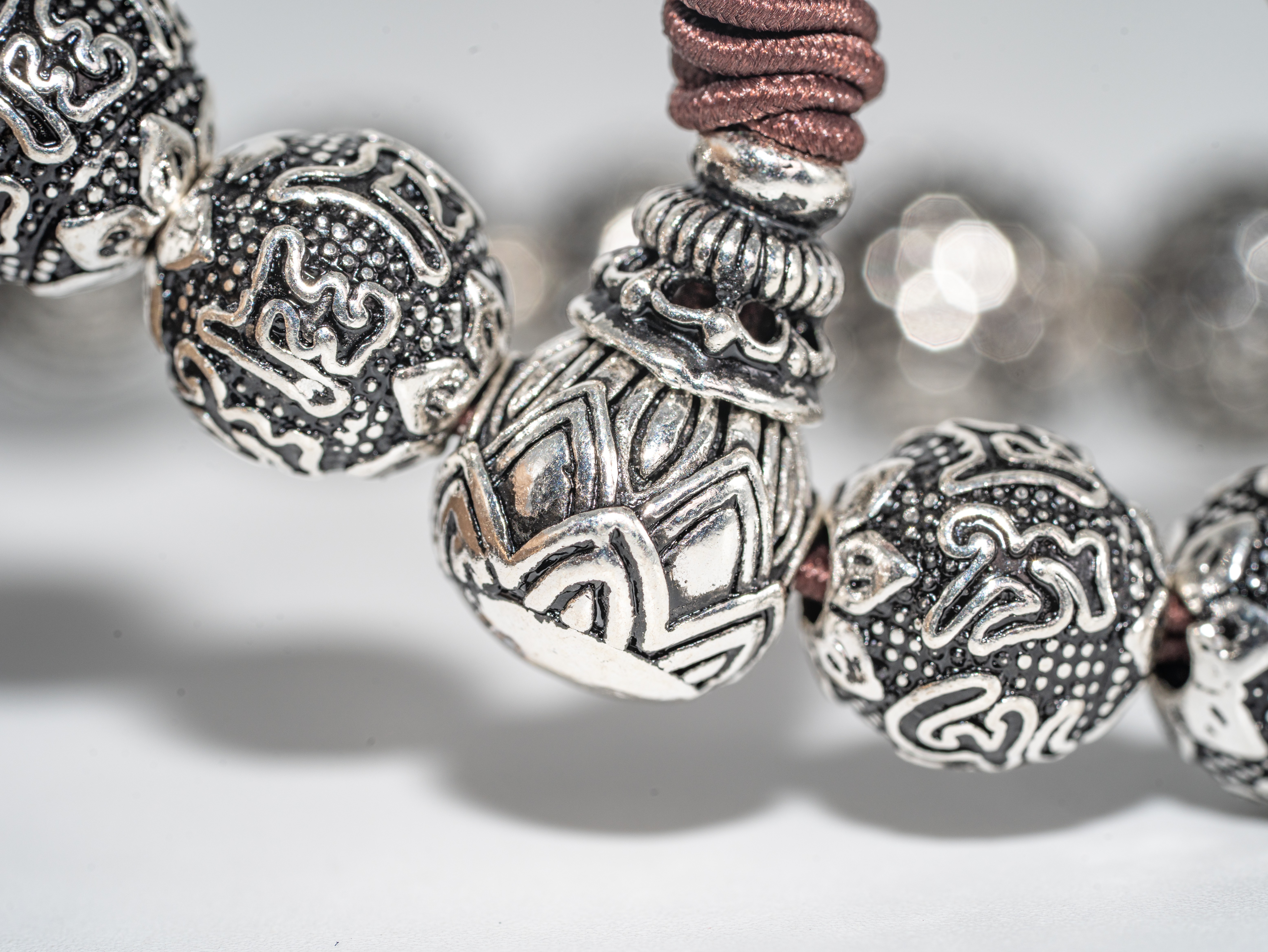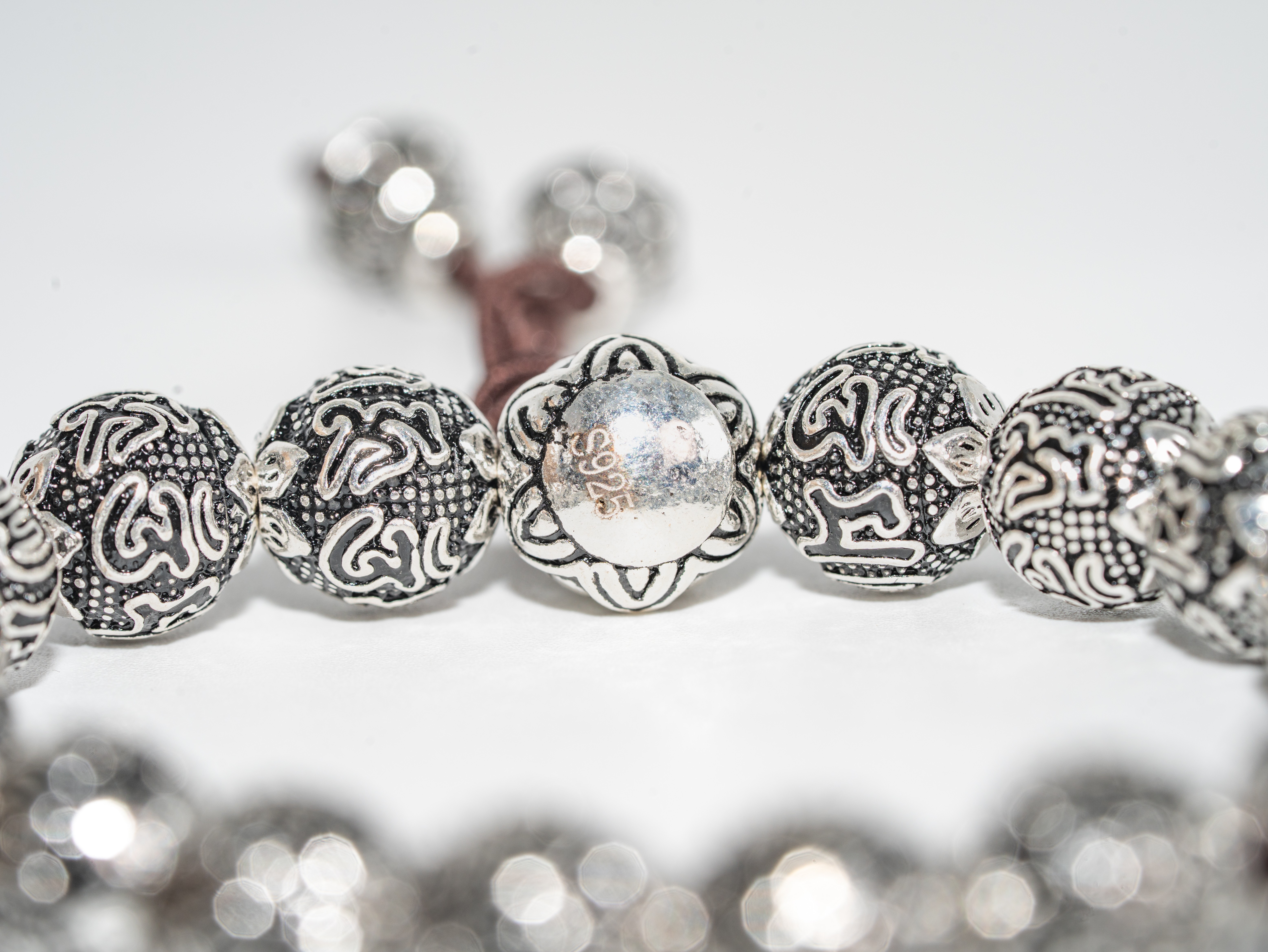 【热销款】六字真言珠串银手链(大)S925克重52