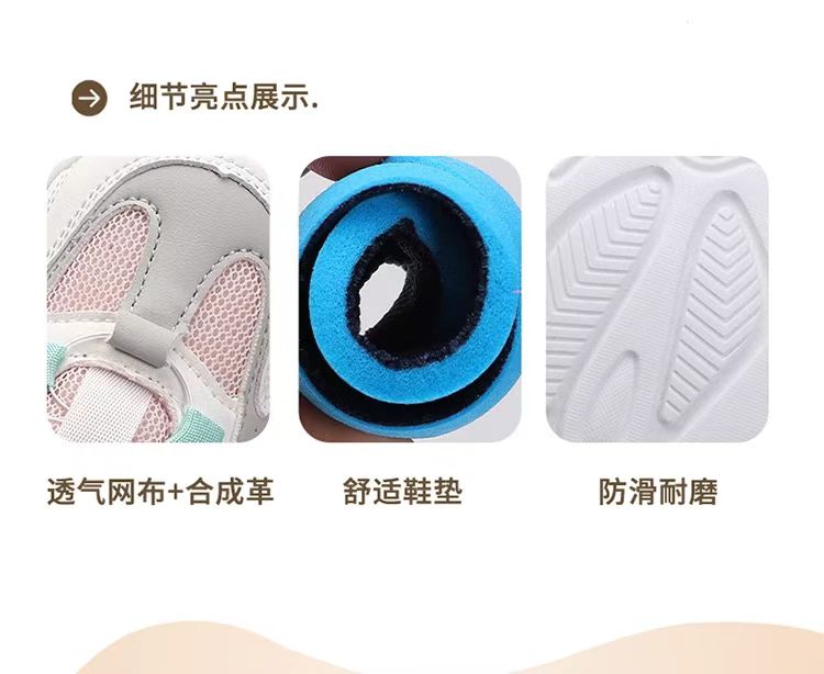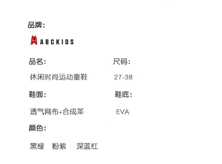 Abckids女童鞋子秋款新款透气网面男童休闲鞋软底儿童运动鞋27-38