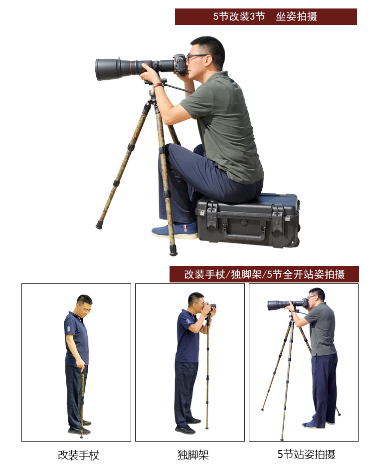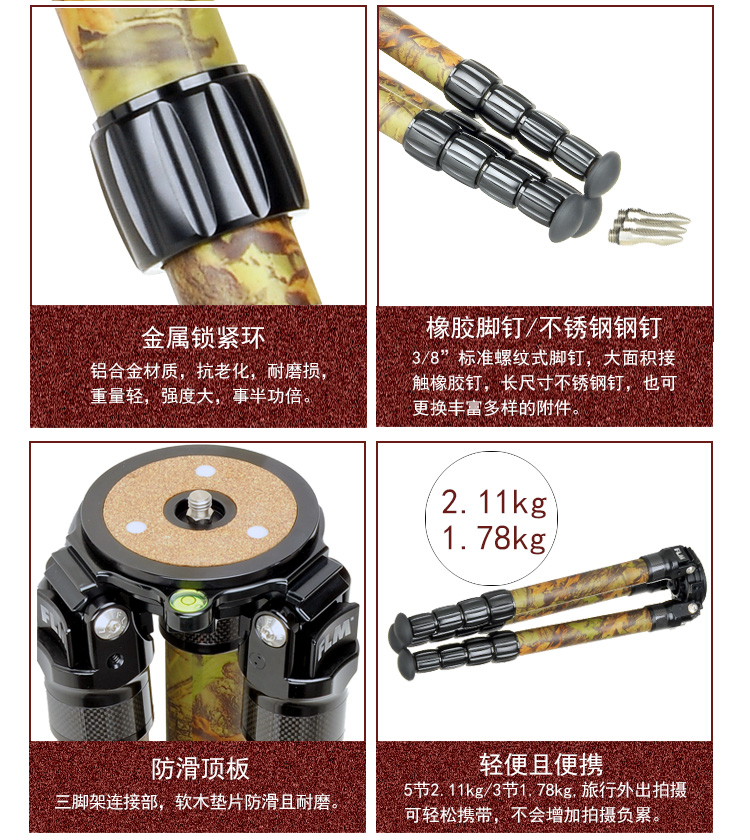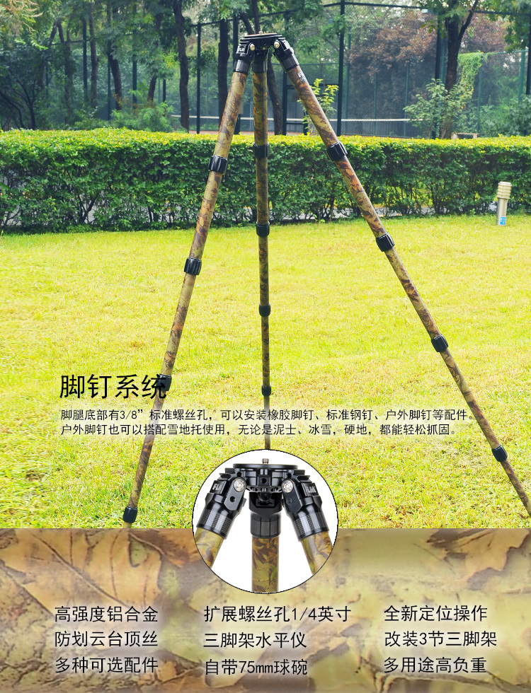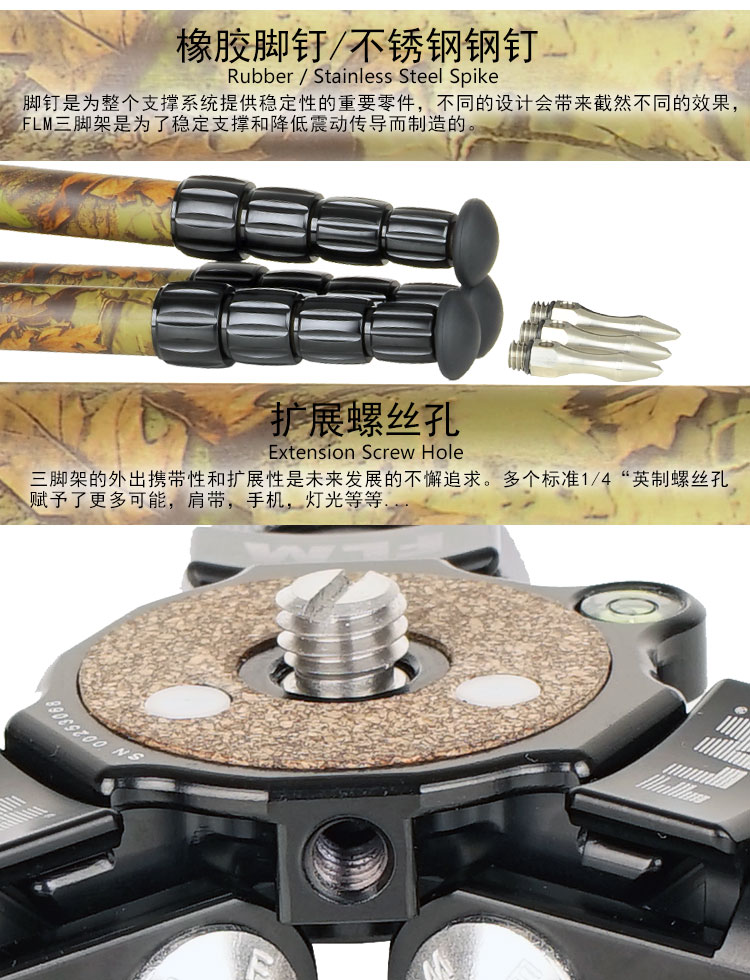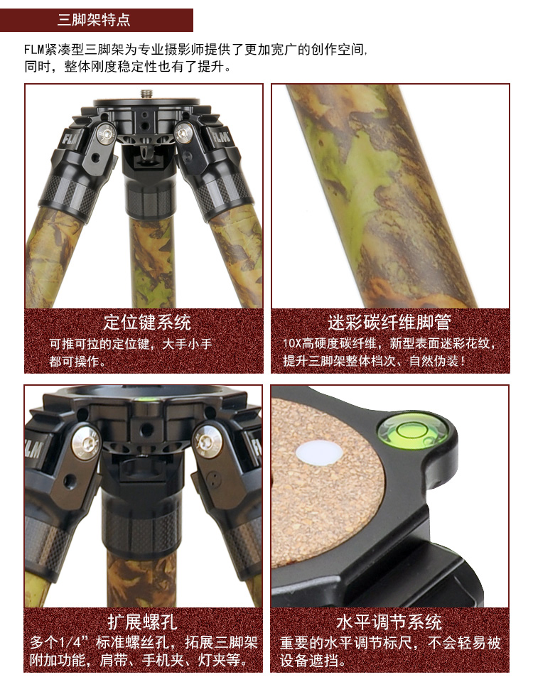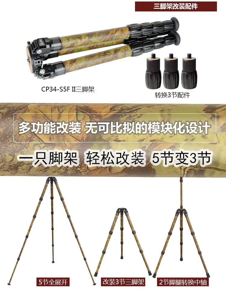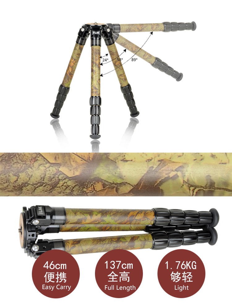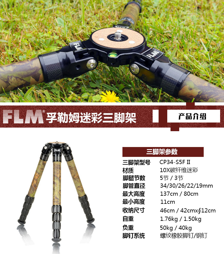 狼族优选丨FLM孚勒姆CP34-S5FII 隐蔽迷彩色新型碳纤维打鸟拍鸟三脚架