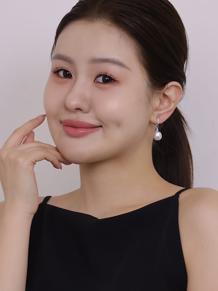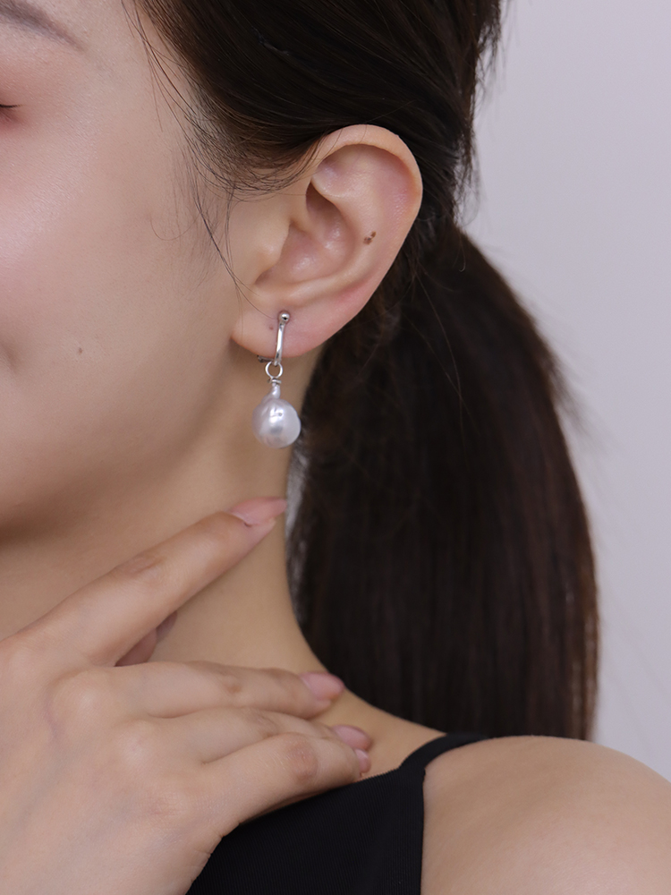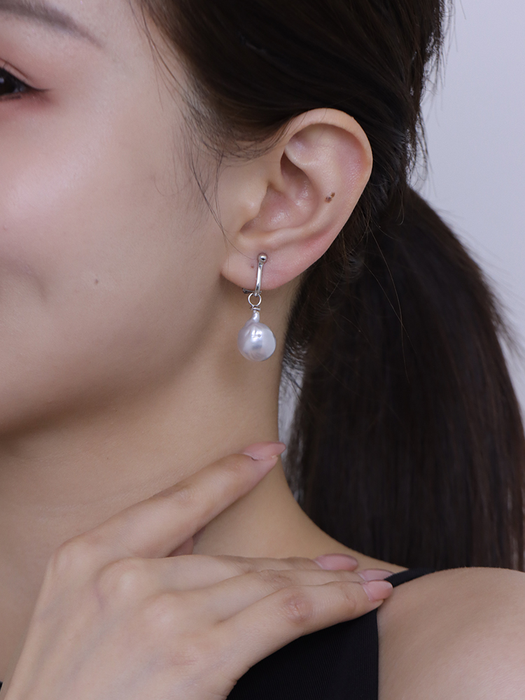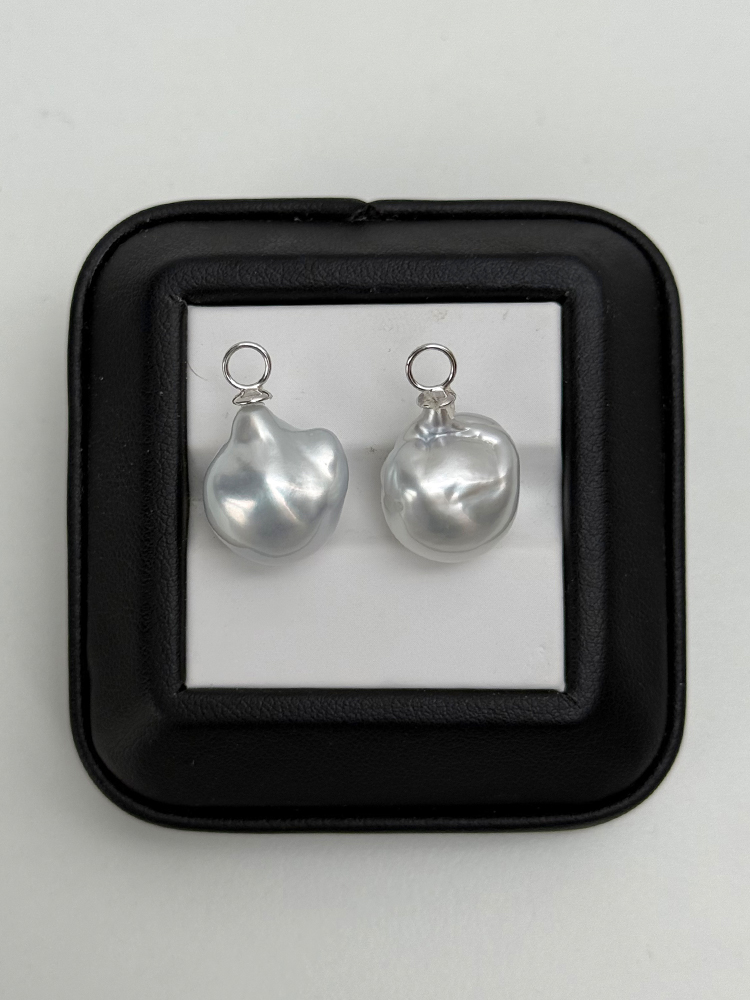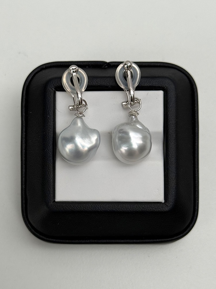 【挚友限定】(挂珠款)18K金可换珠耳夹 极光澳白珍珠 银蓝色巴洛克12-13mm