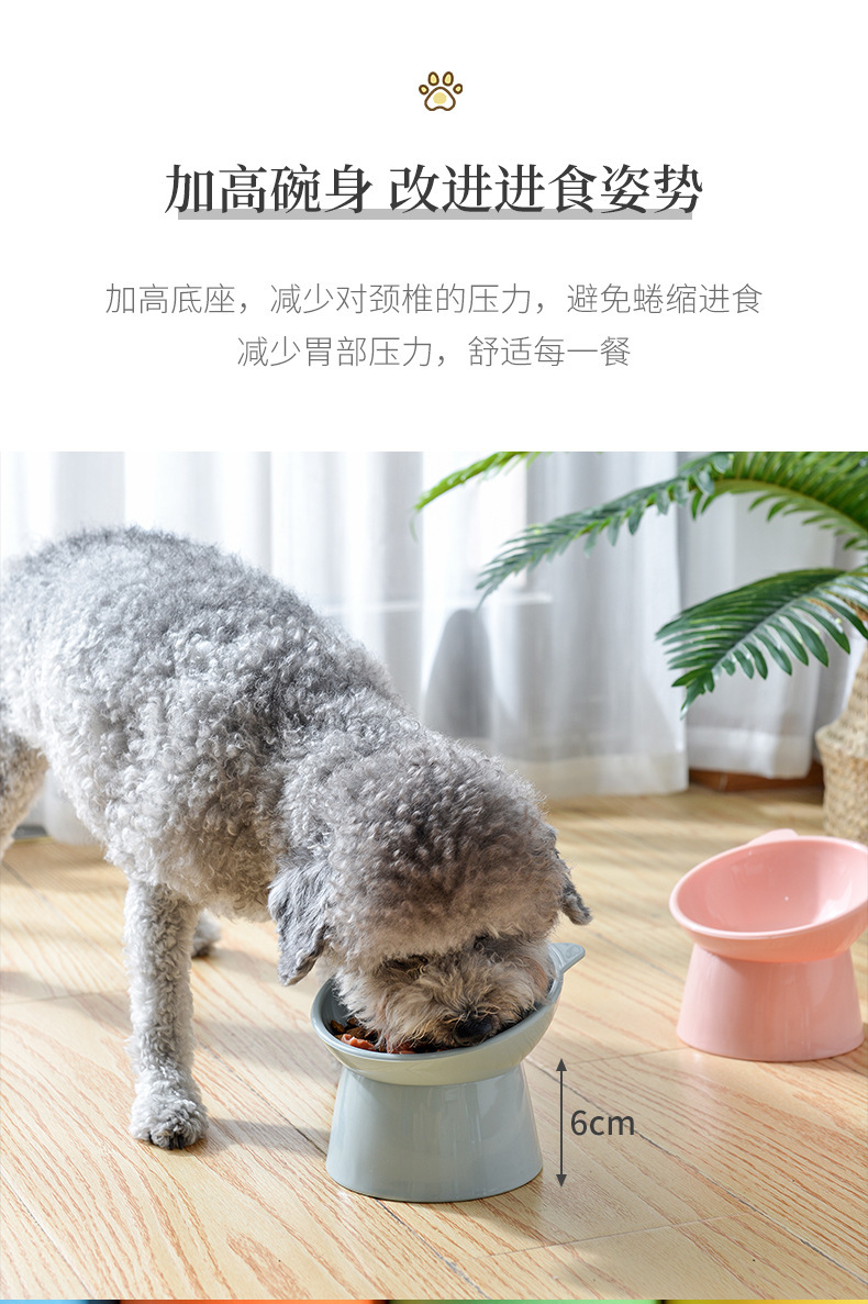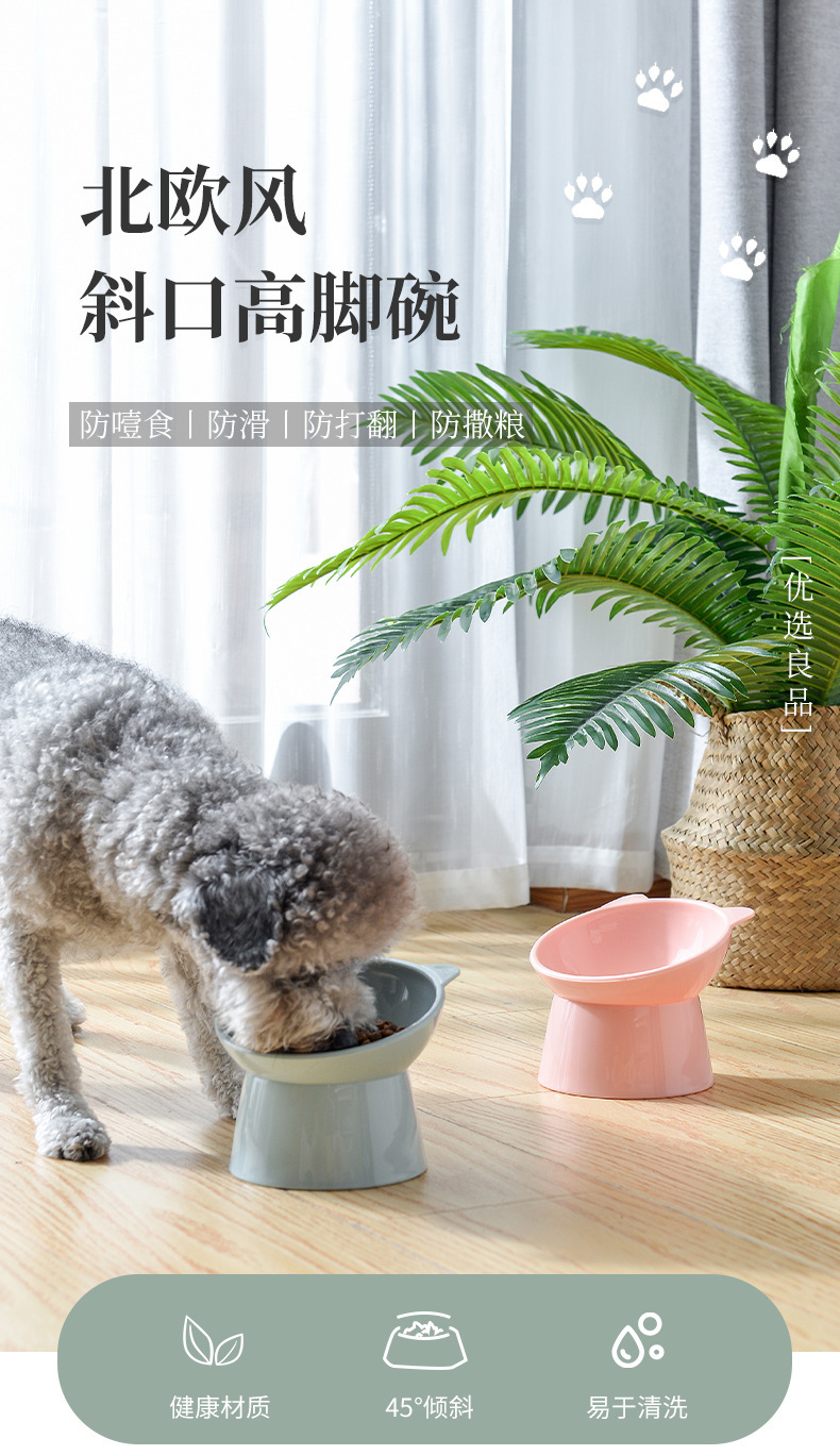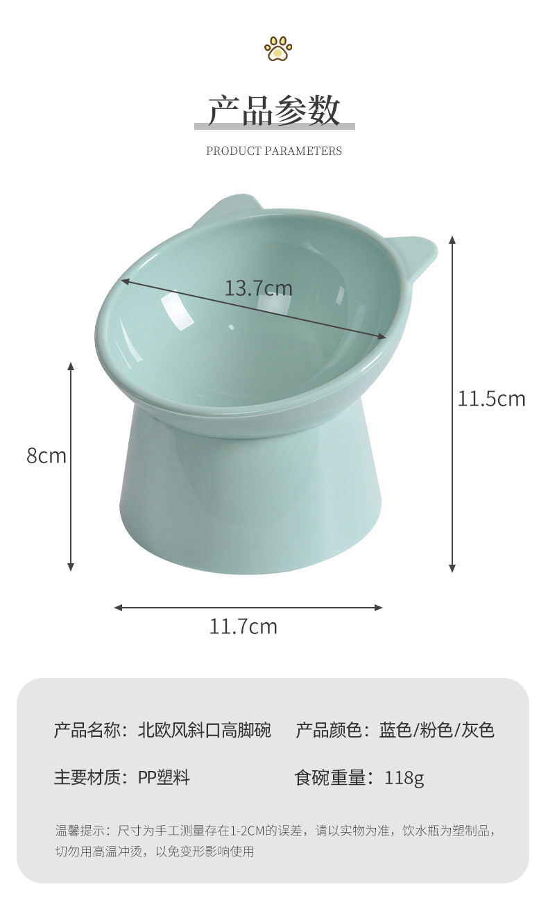 宠物纯色高脚碗 拯救黑下巴 优质PP材质 45°倾斜 护颈椎 防滑耐磨