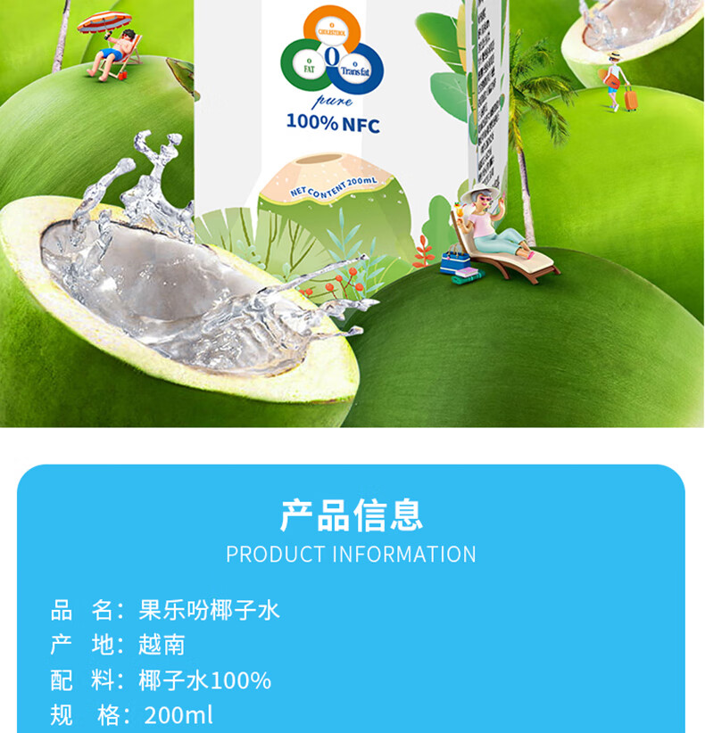 越南果乐吩椰子水200ml/350ml 每天一瓶畅享欢乐时光 021143/023609