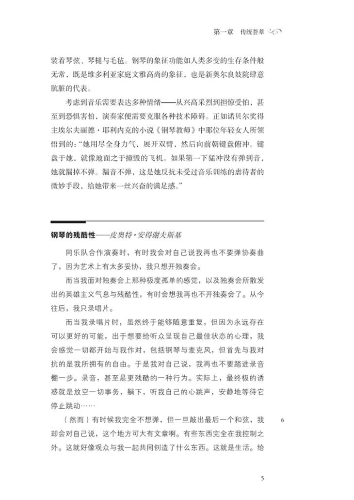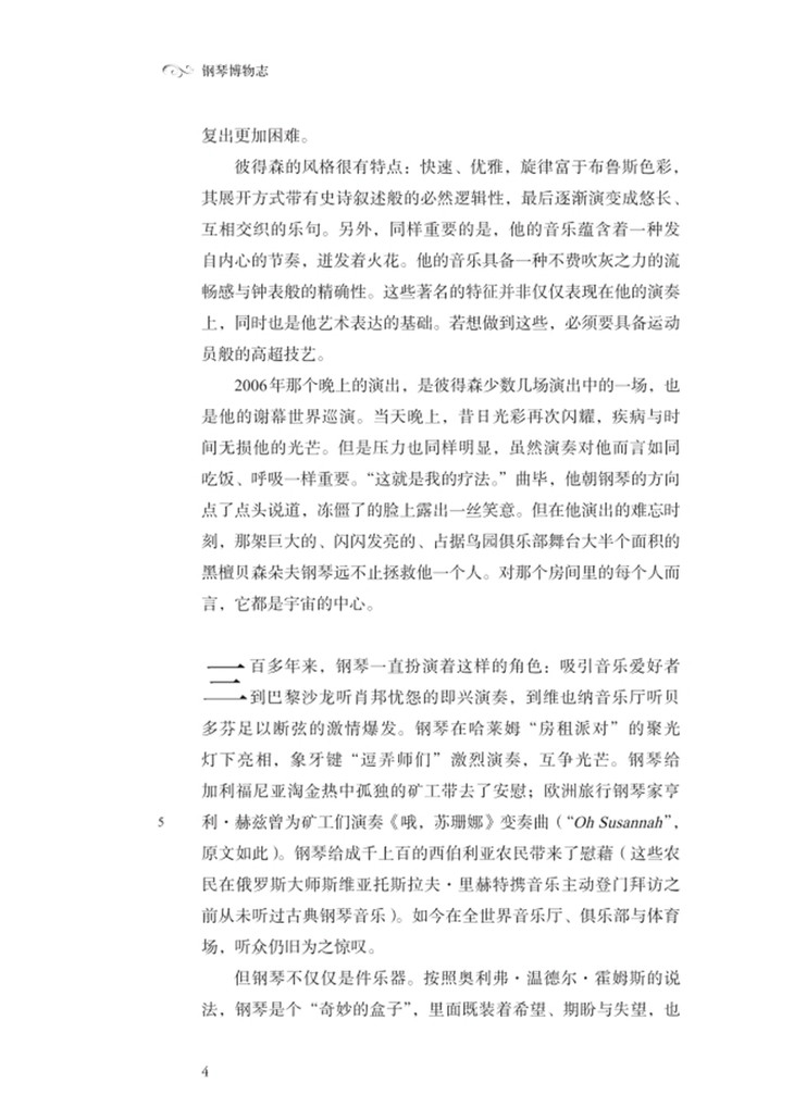 从莫扎特、李斯特、霍洛维茨到乔普林、塔特姆与杰瑞·李·刘易斯,这本书在结构上对这些名人进行了并列论述,非常精彩,充满激情与细腻的情感。钢琴爱好者们会享受到一顿大餐。