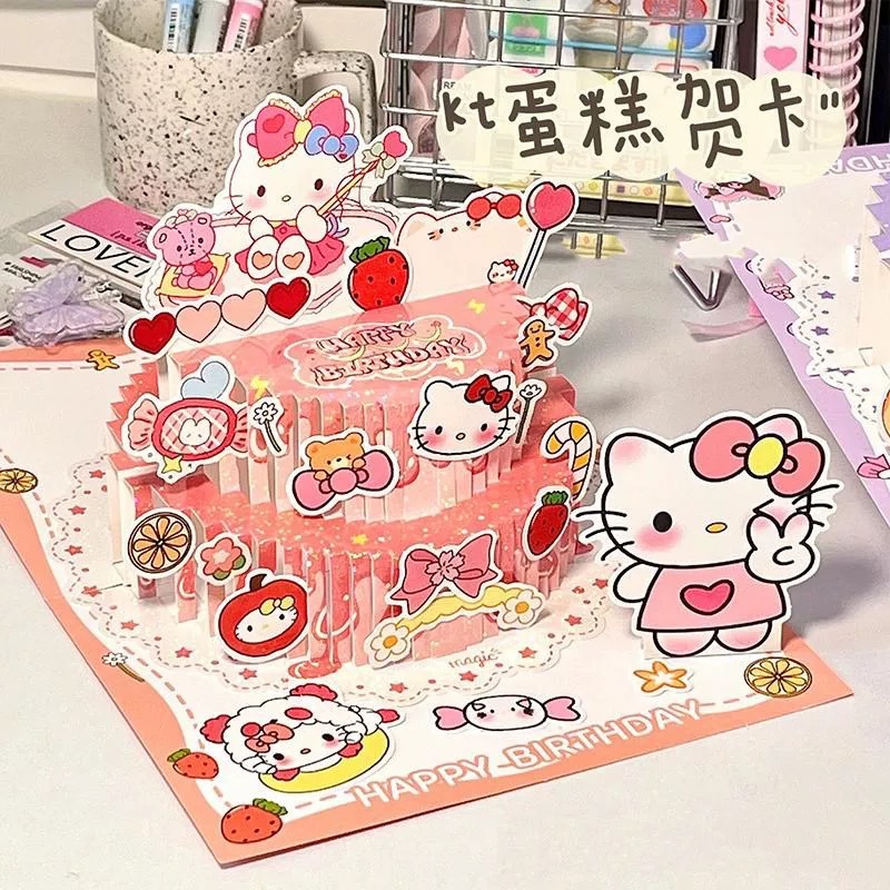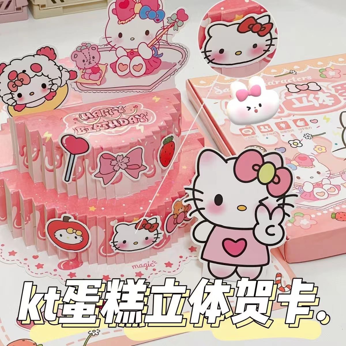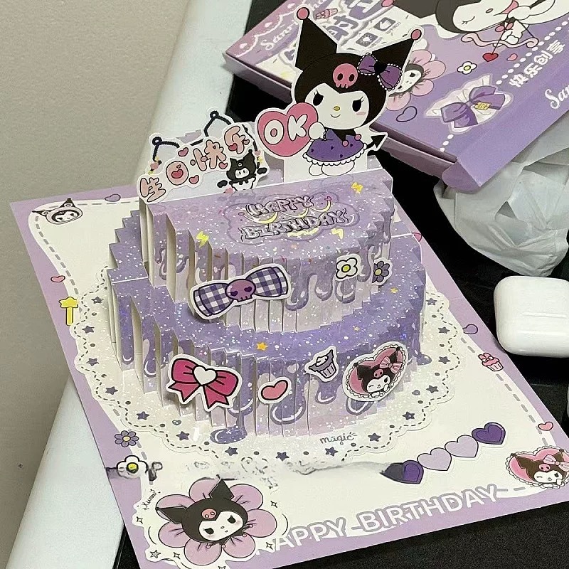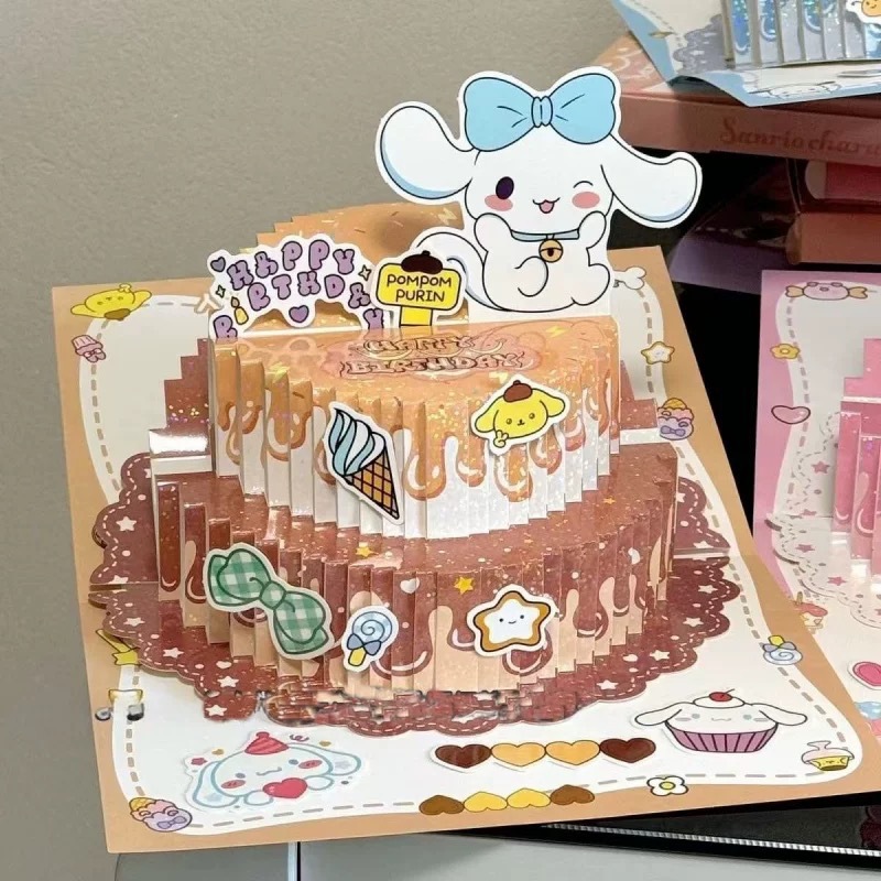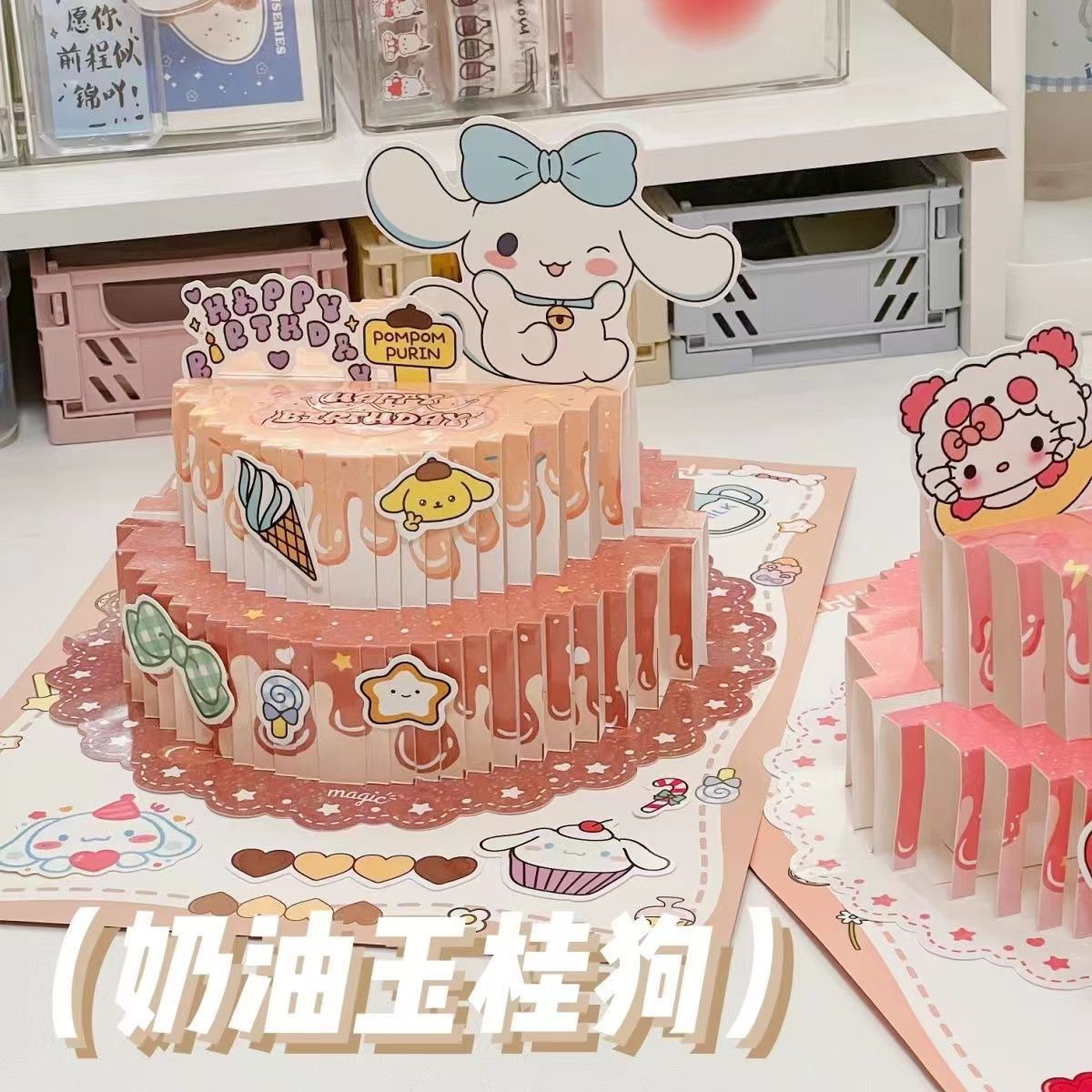 【氛围感十足!满满仪式感】新款三丽鸥生日蛋糕贺卡立体可折叠创意礼物高级感精致可爱萌小卡。xb