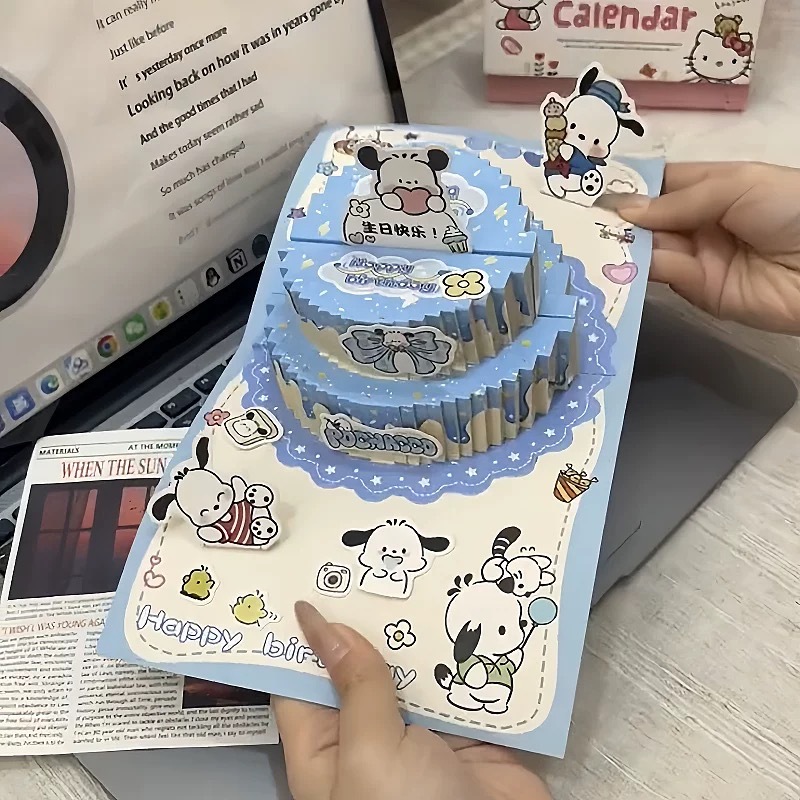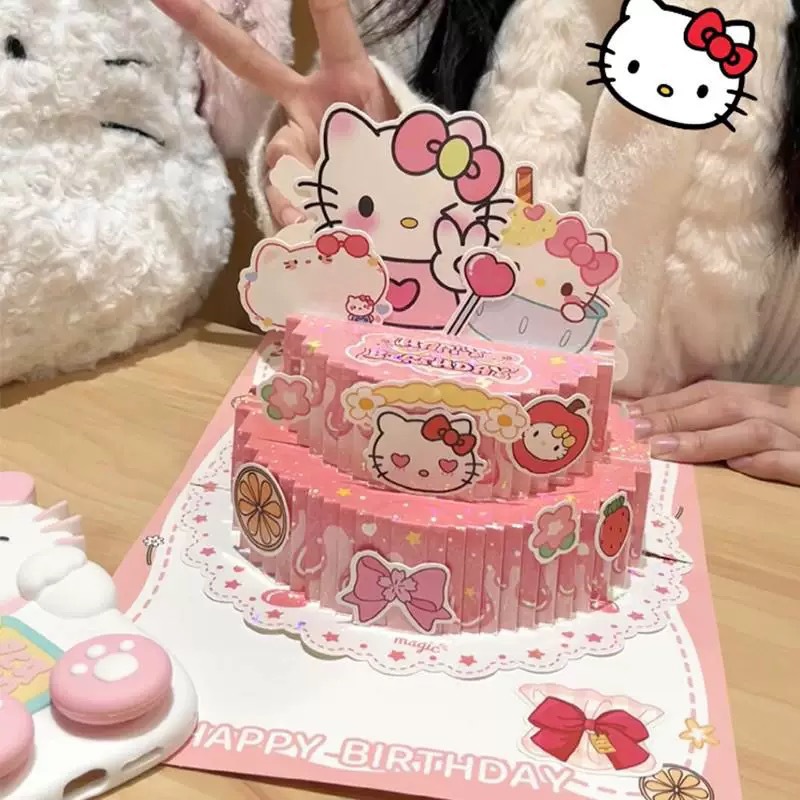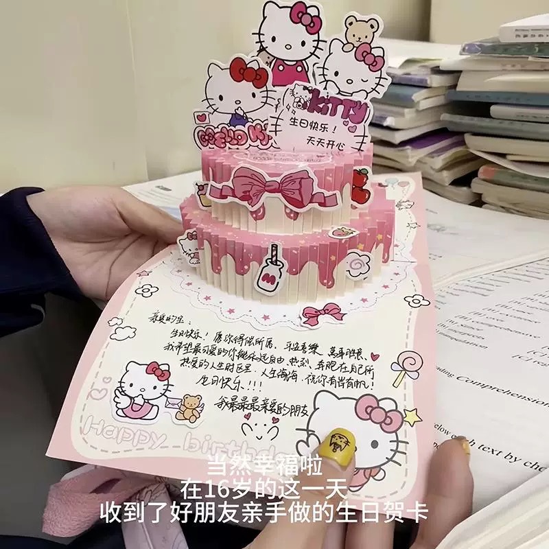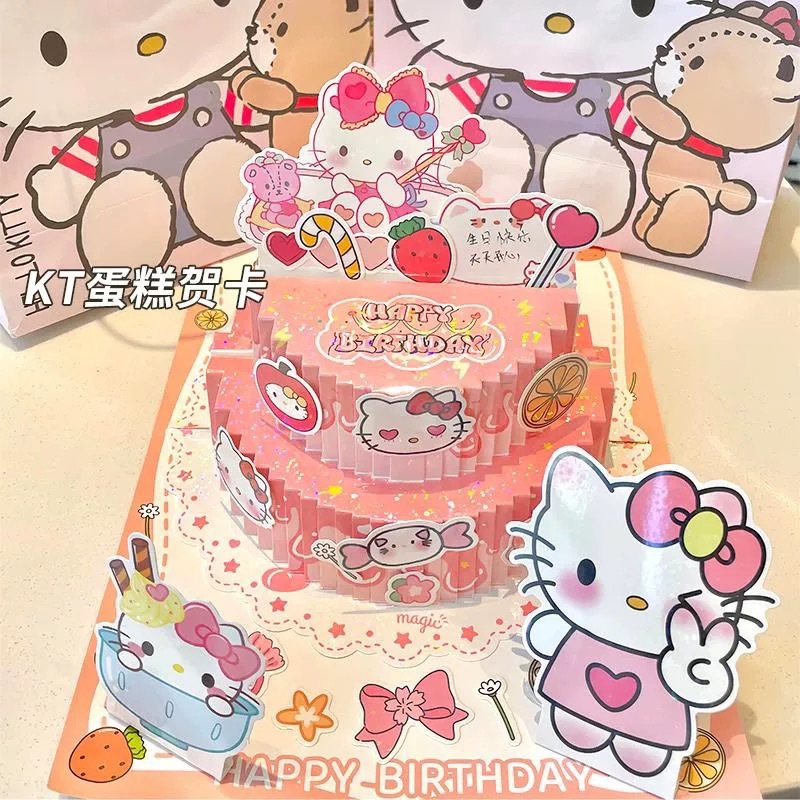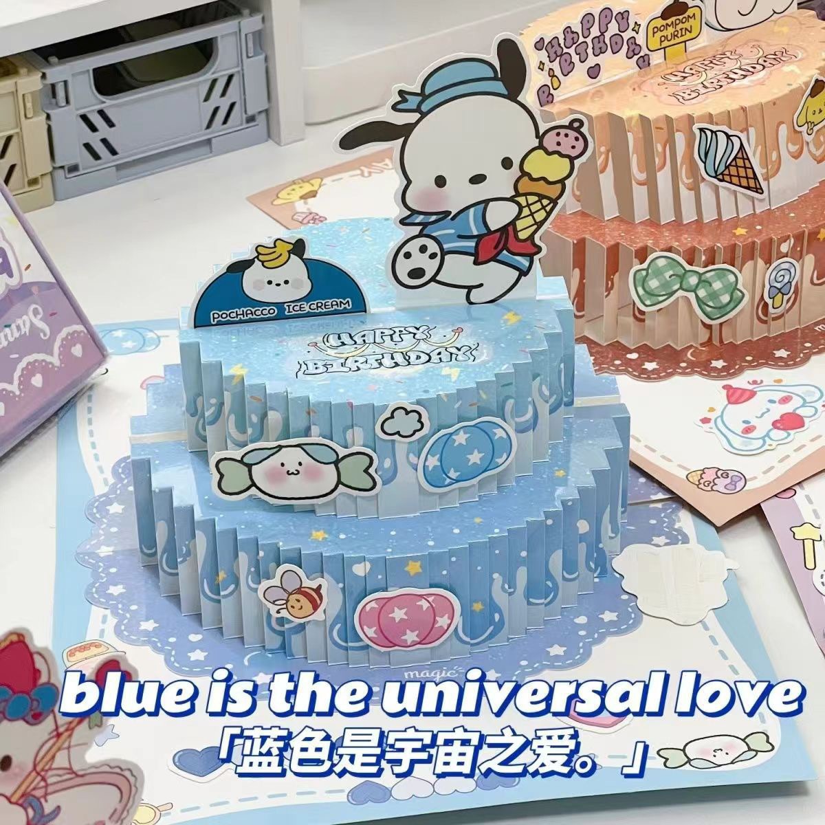 【氛围感十足!满满仪式感】新款三丽鸥生日蛋糕贺卡立体可折叠创意礼物高级感精致可爱萌小卡。xb