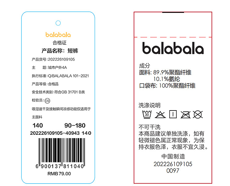 【商场同款】巴拉巴拉童装儿童短裤男女童2026新款夏装中裤子速干