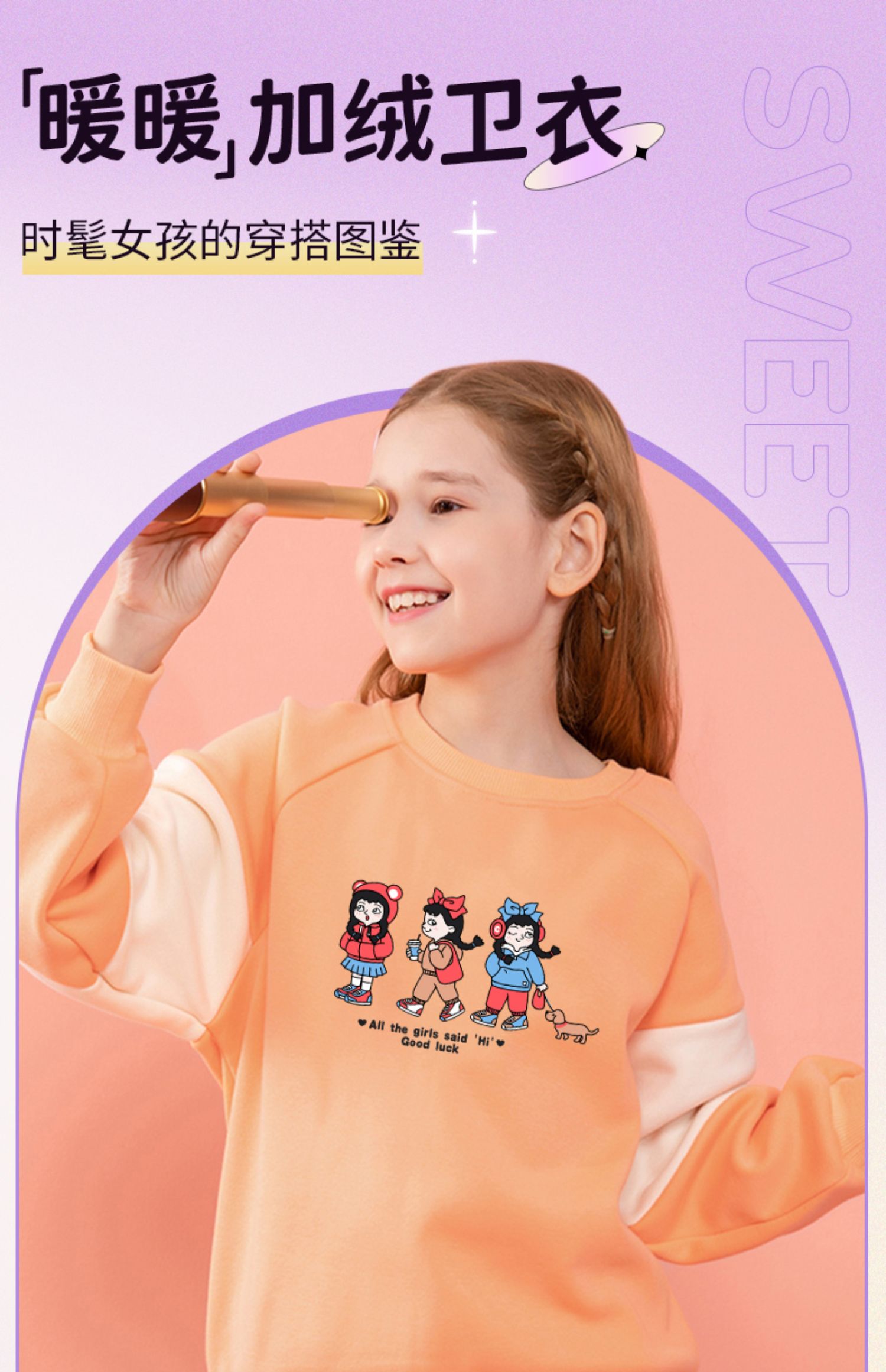 女童卫衣加绒加厚一体绒洋气中大童打底衫冬款儿童保暖上衣秋冬装