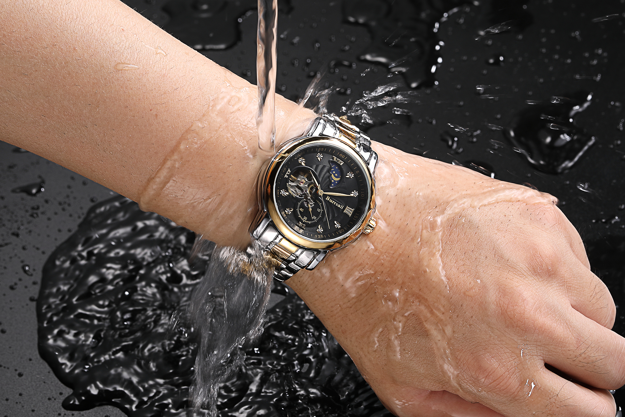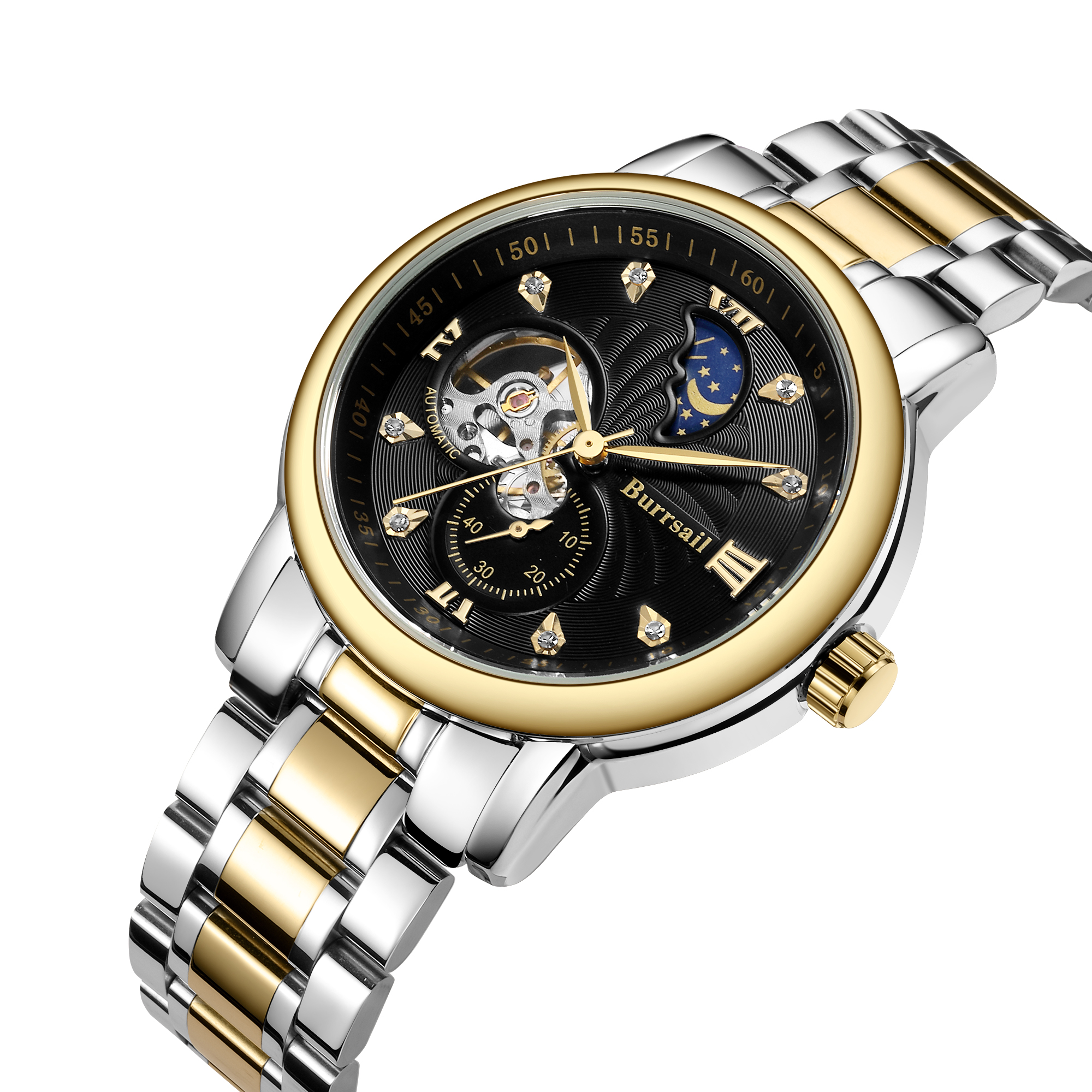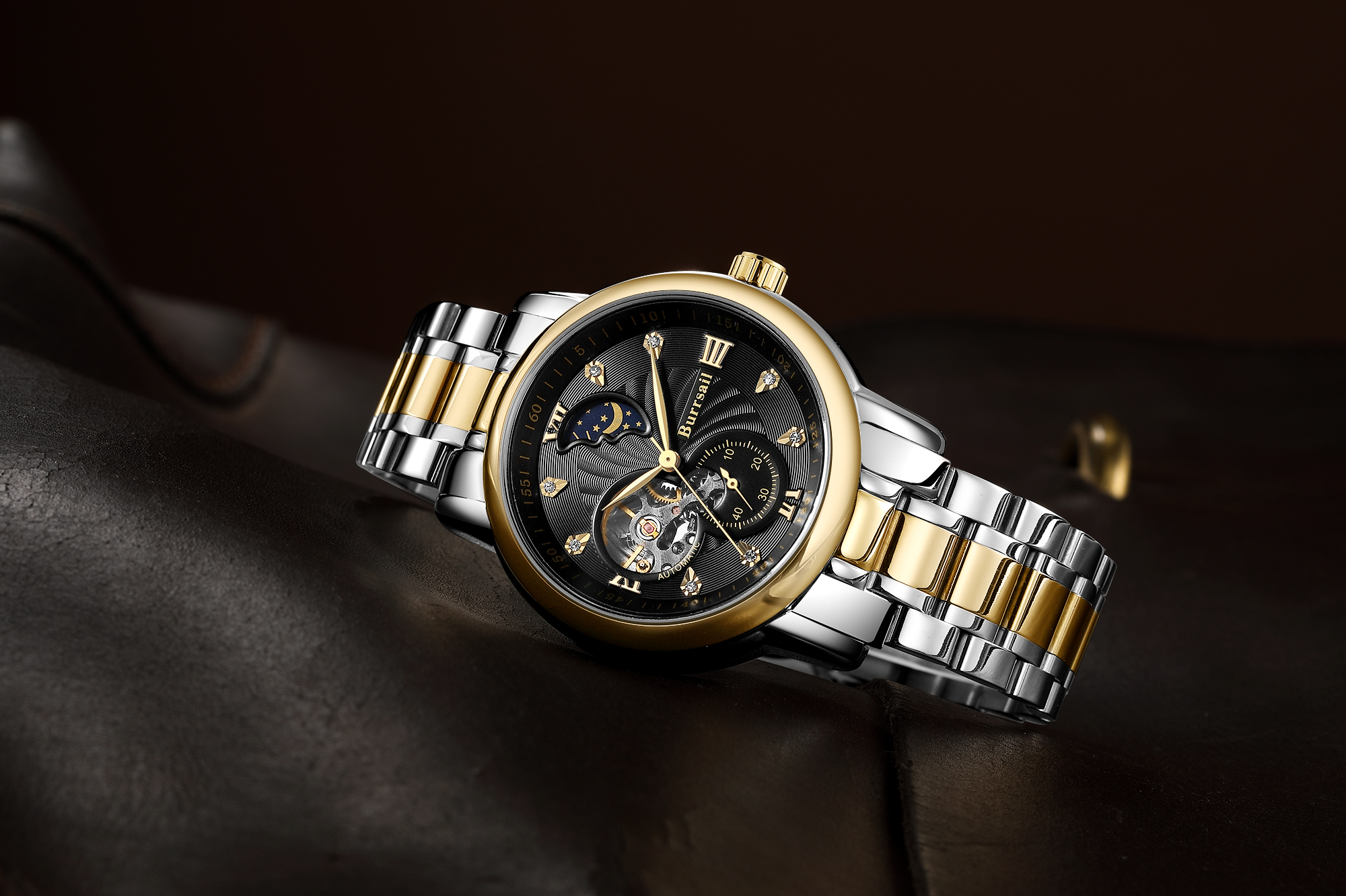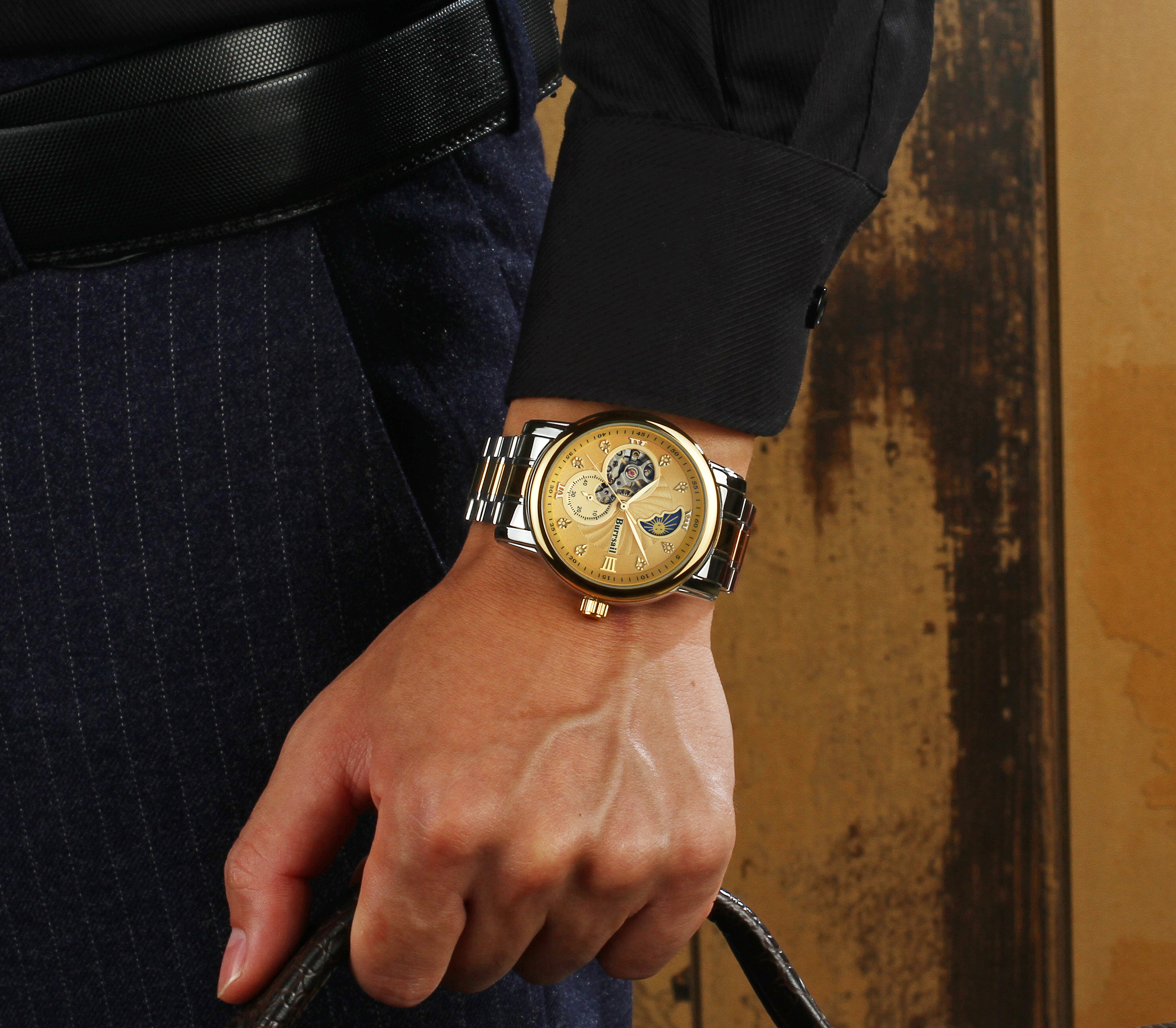 组件:机械男表,表盘黄色;机械男表,表盘黑色;女戒指,女吊坠,VIP卡,手表鉴定证书*2,托帕石鉴定证书,合格证*2,Burrsail说明书