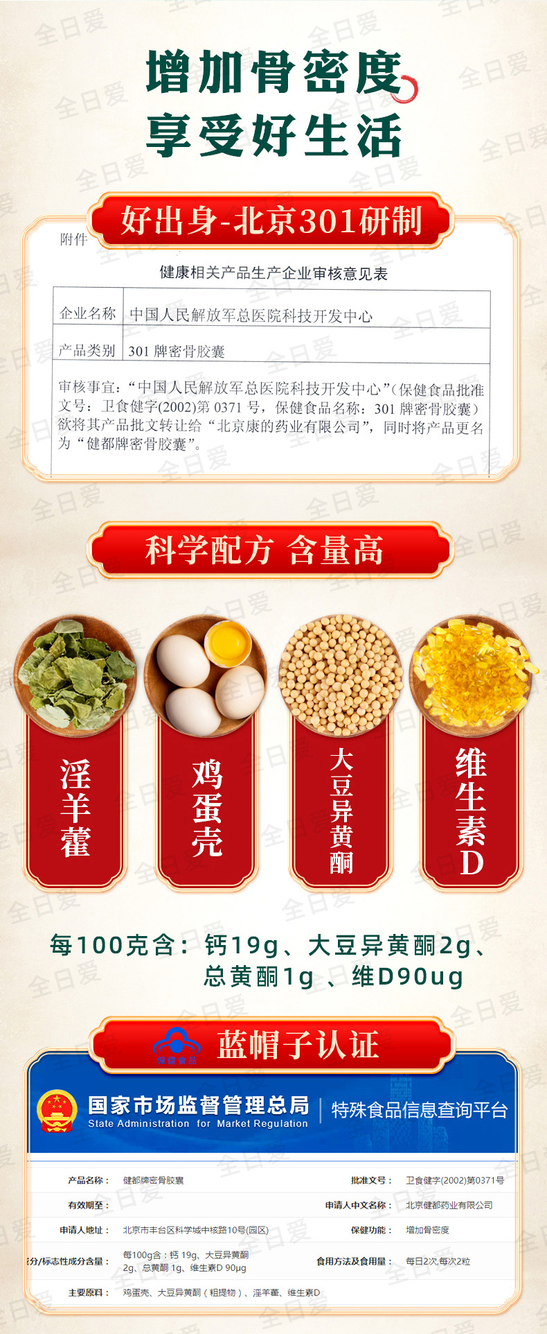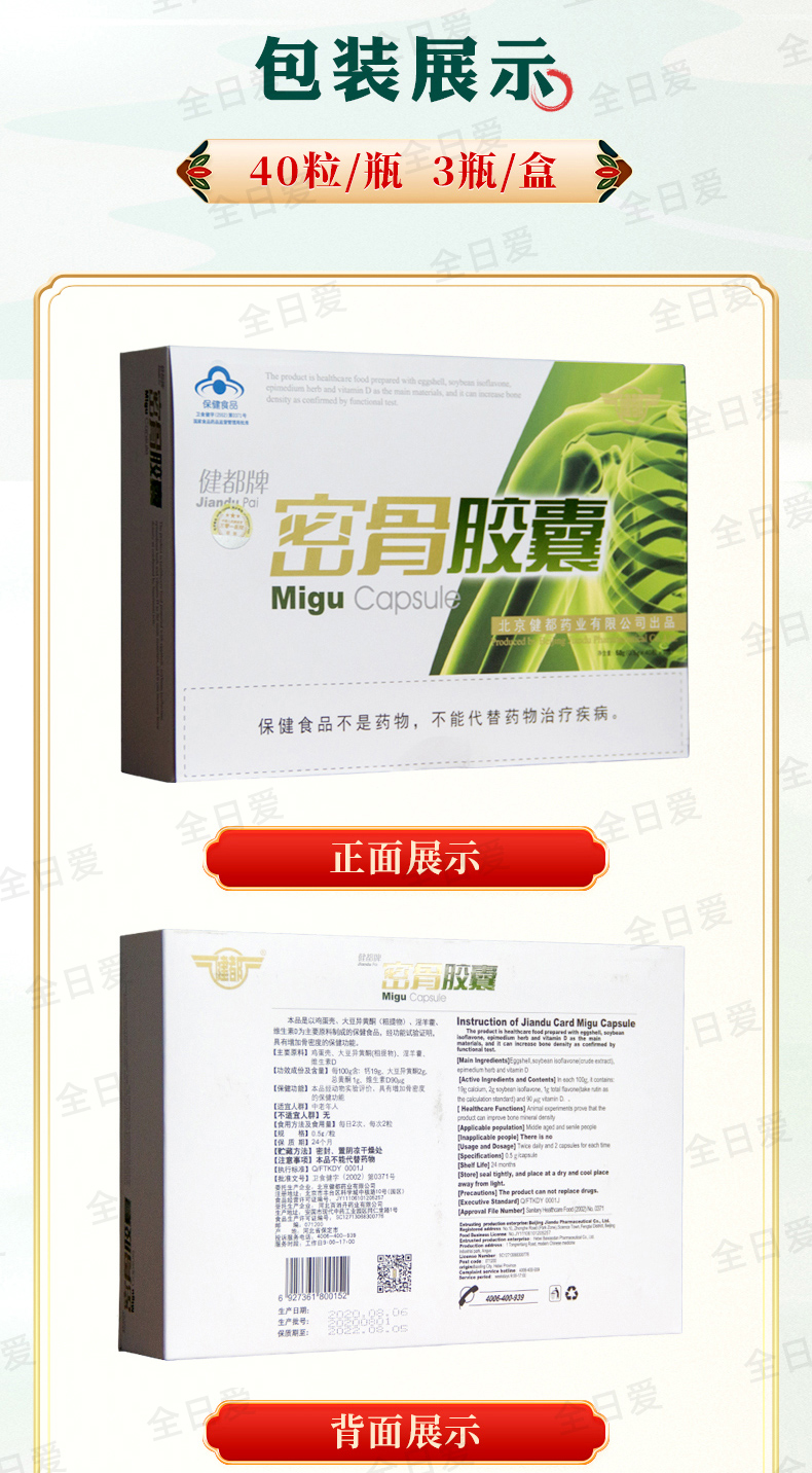 健都牌密骨胶囊 3瓶/盒 增加骨密度 301医院研发 养骨革命性产品
