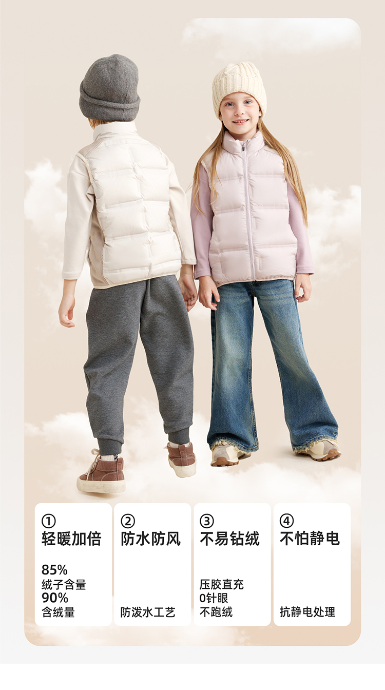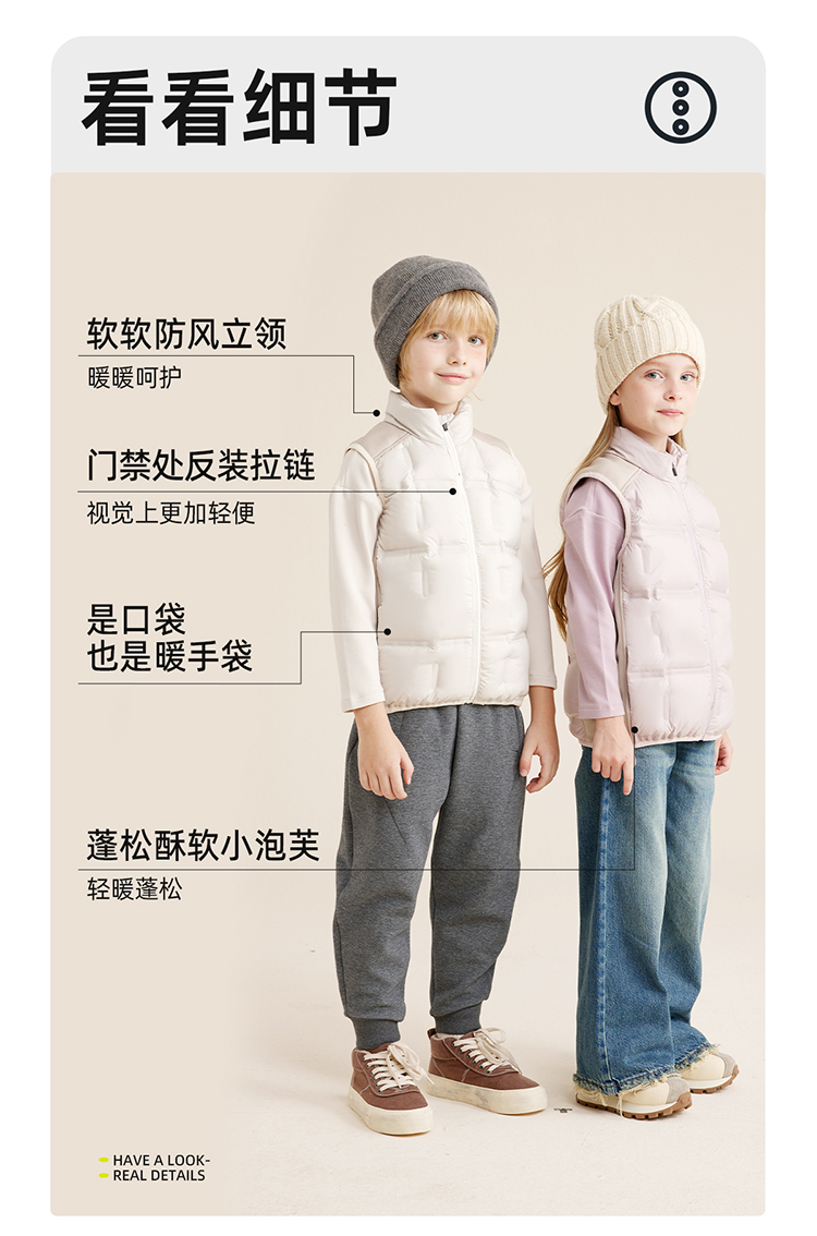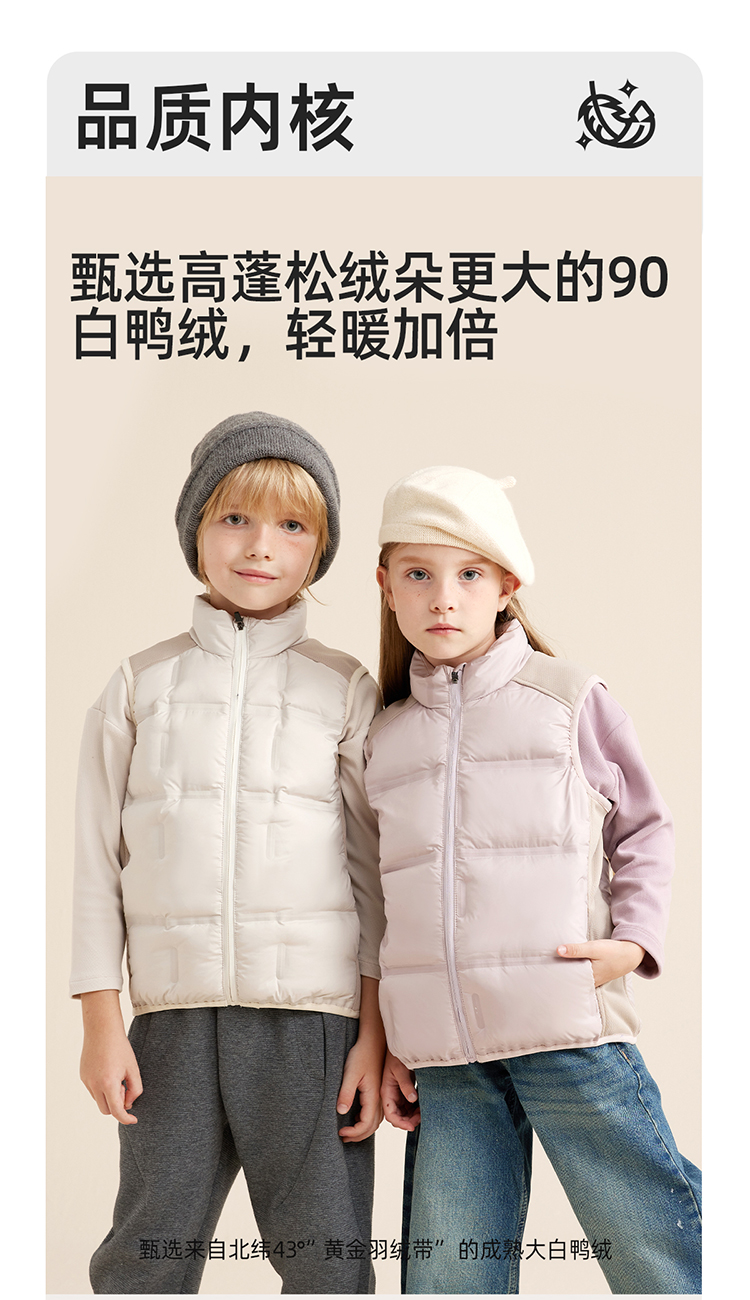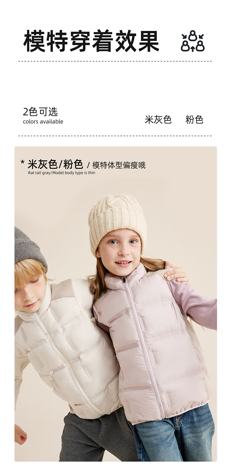 【换季护暖好拍档】儿童90白鸭绒压胶拼接羽绒马甲PDMJ2303