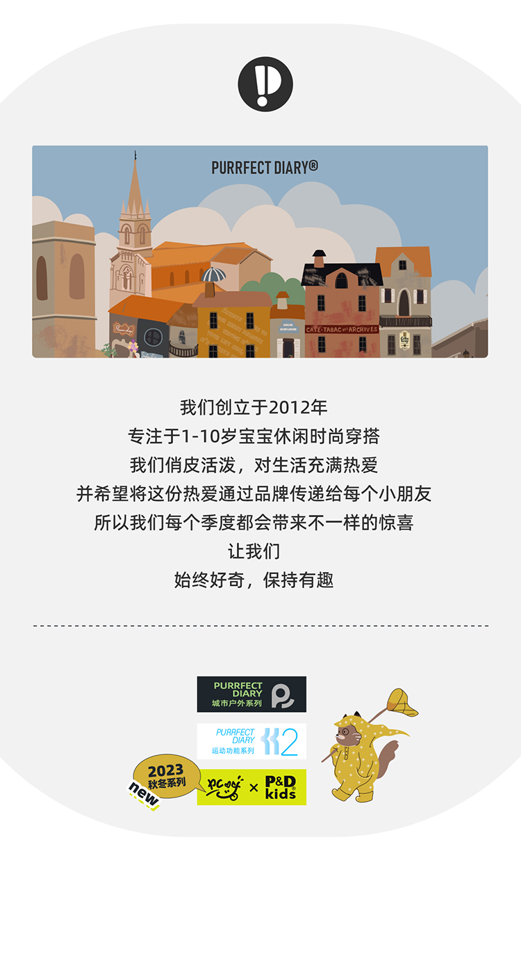 - Purrfect-Diary专注于贴近自然随性的穿着概念,轻奢平价的童装文化传播,在产品设计上更加注重婴童穿着的舒适性、安全性、更出众的国际化品牌,将欧美的育婴文化在中国进行深入的传播与推广。