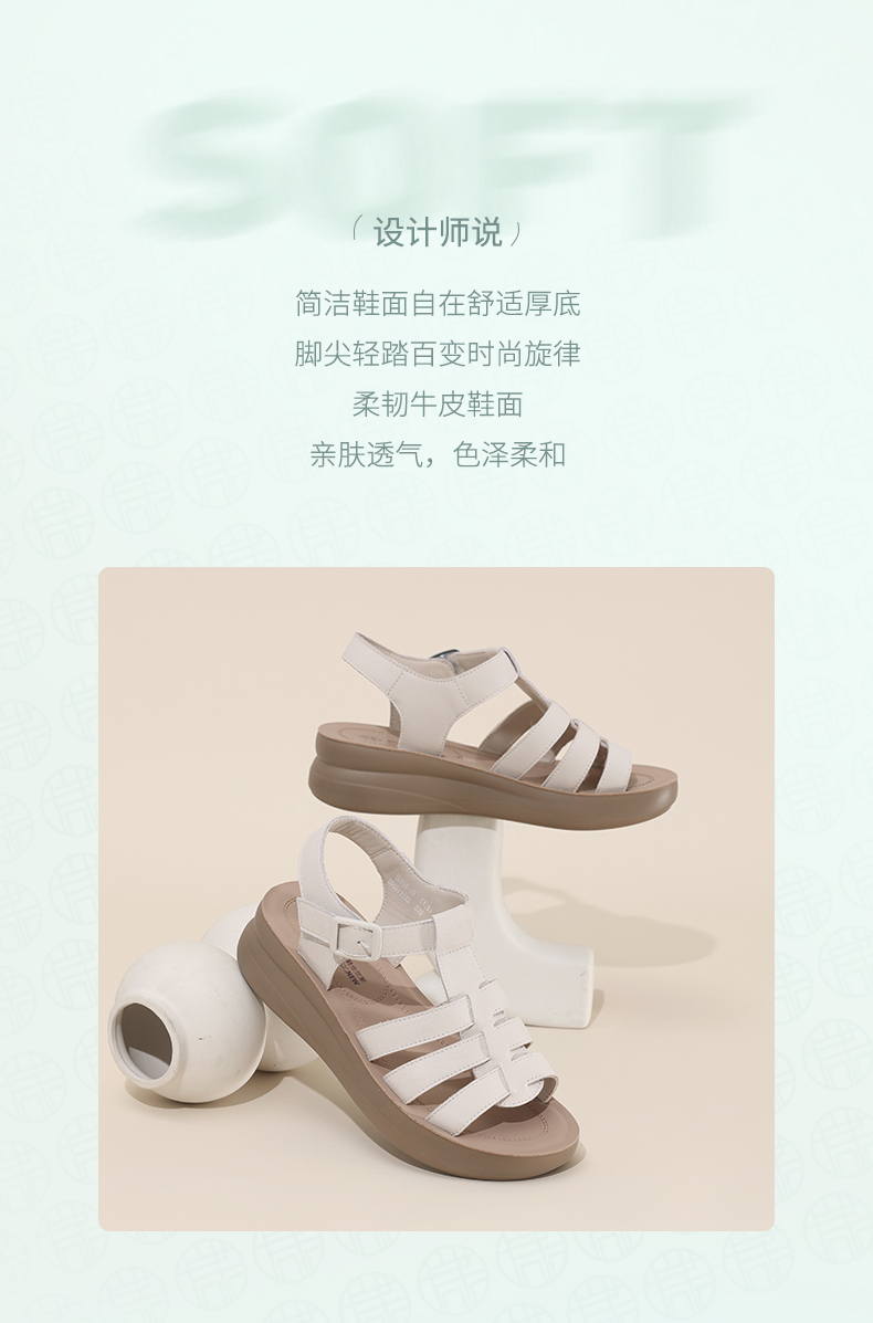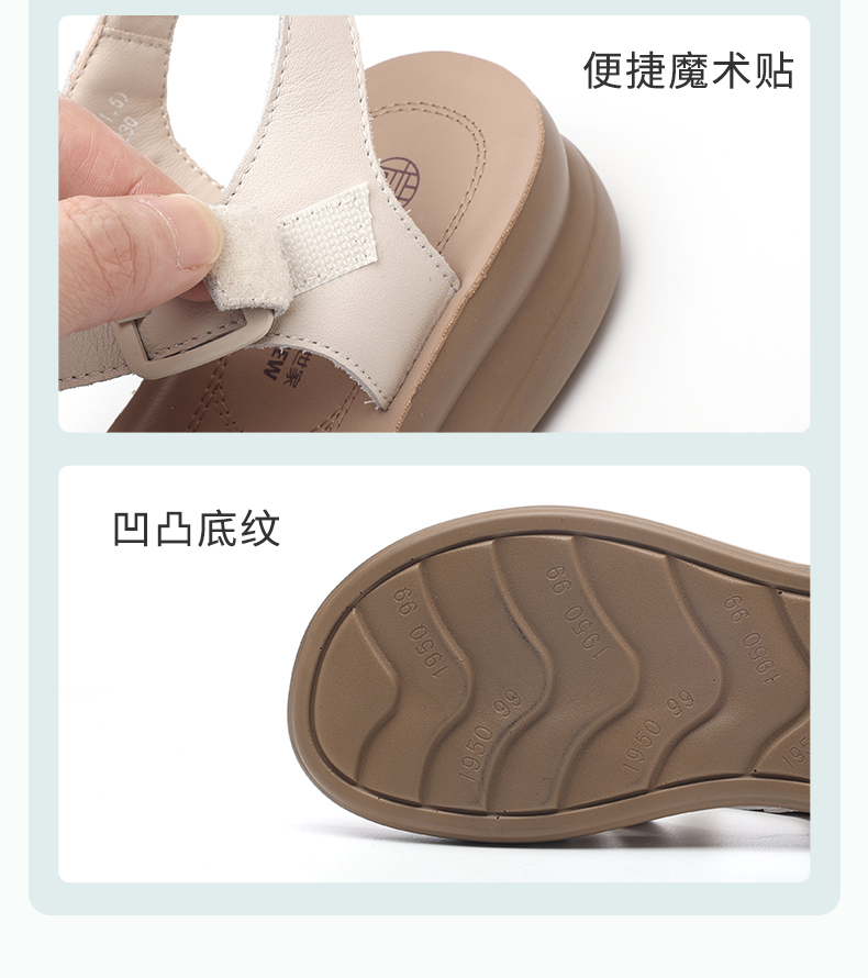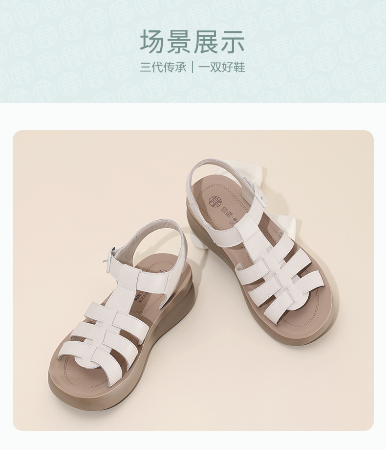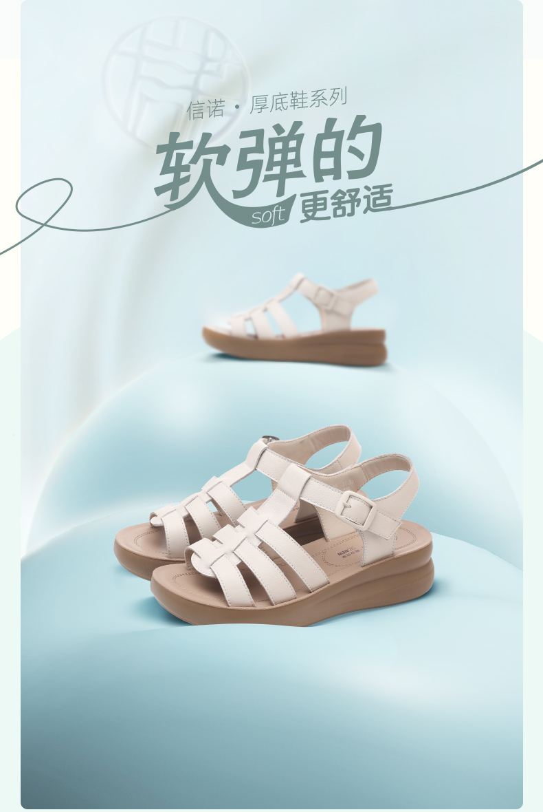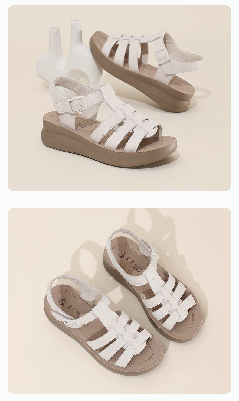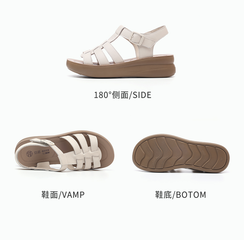 信诺平底软底厚底夏天女士罗马鞋凉鞋女款新款夏季真皮外穿妈妈鞋5L950-35