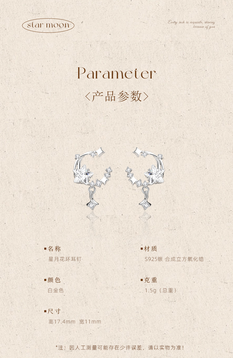 卡蒂罗KADER 星月花环耳钉 在逃公主925银梦幻流苏小众轻奢设计星星闪耀不易撞款耳饰 甜美浪漫配饰