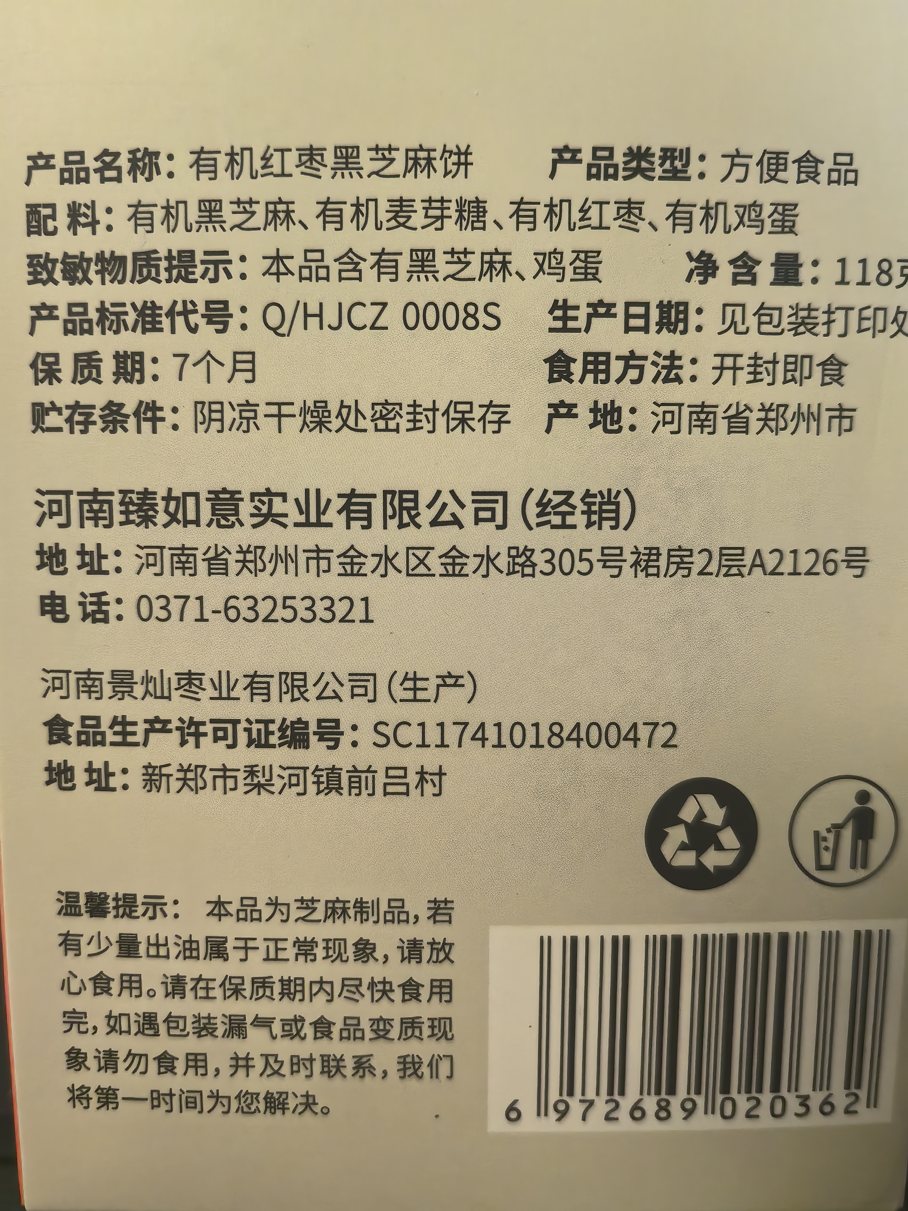 有机红枣黑芝麻饼(118g)