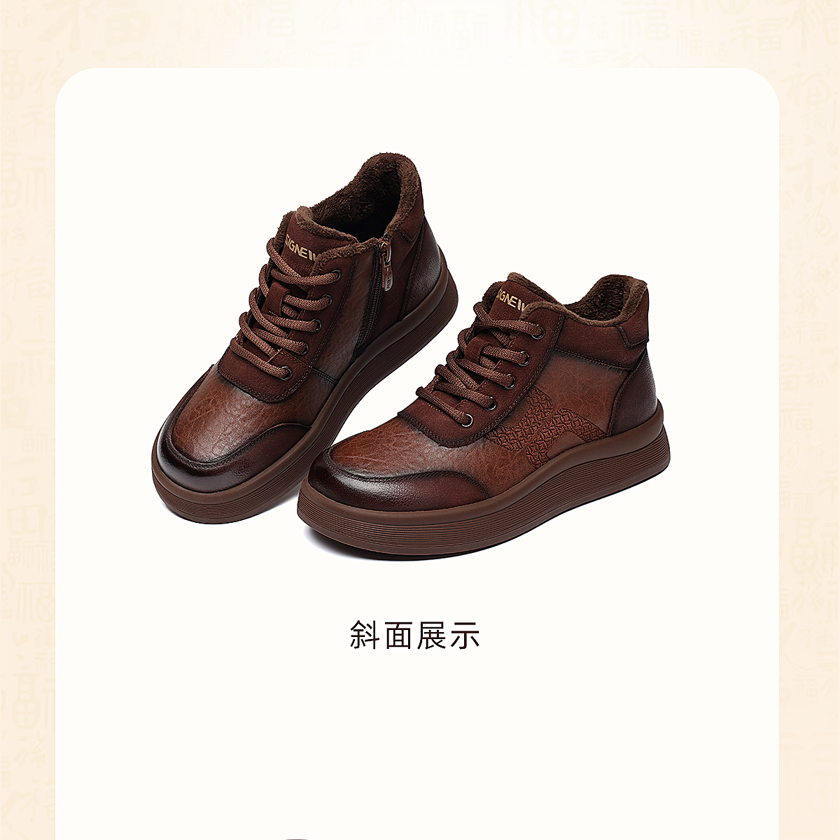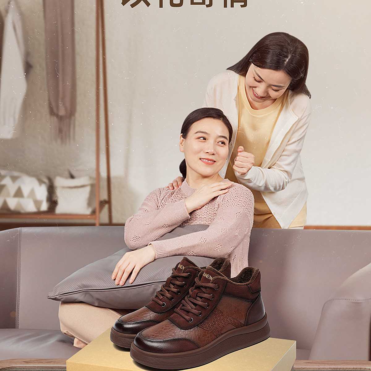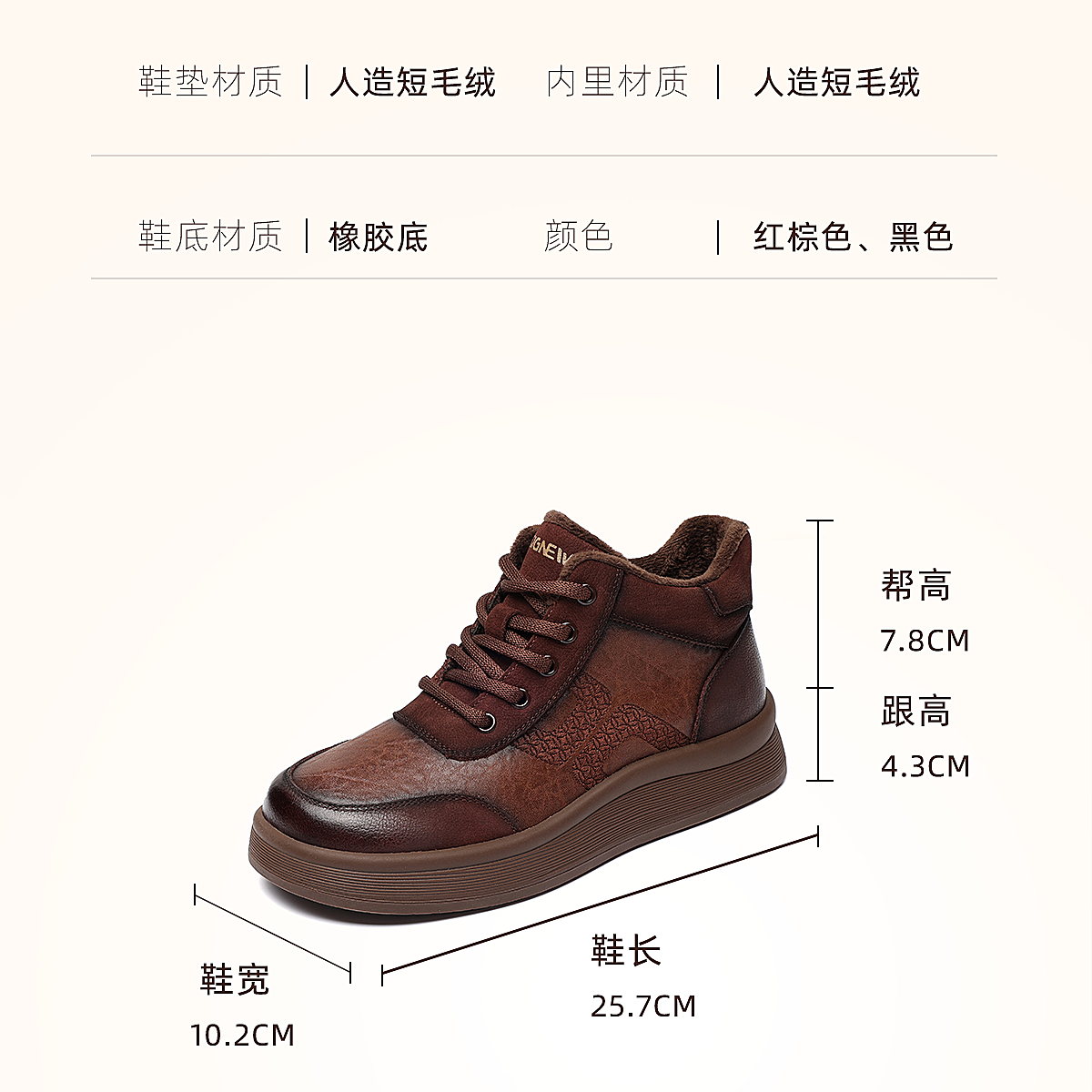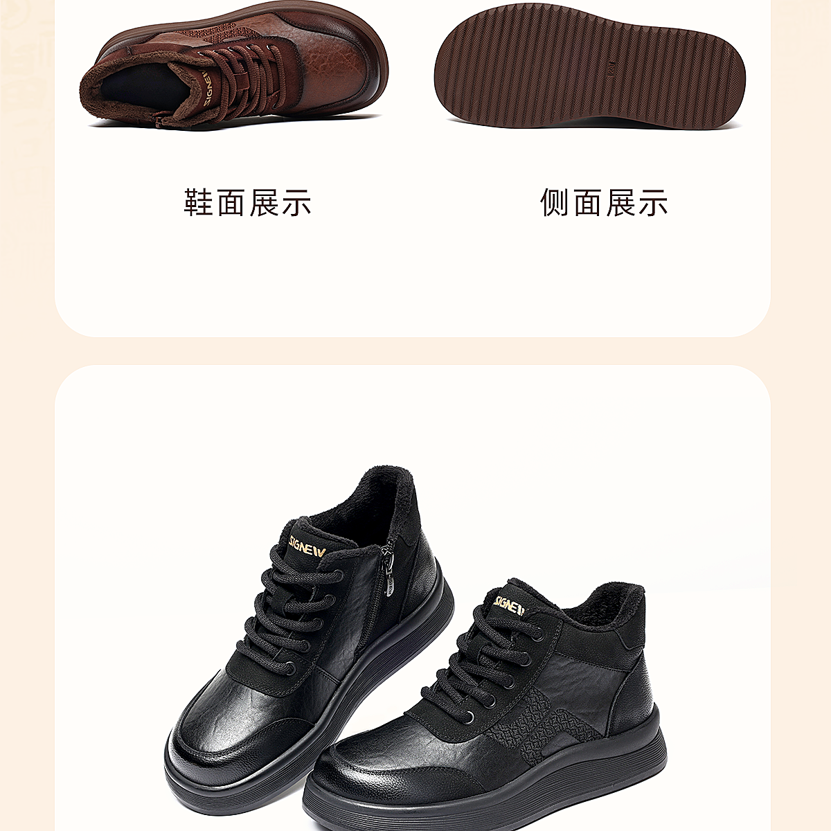 真皮妈妈鞋厚底高帮皮鞋女中老年加绒保暖棉鞋休闲鞋2025冬季新款5M312-2D