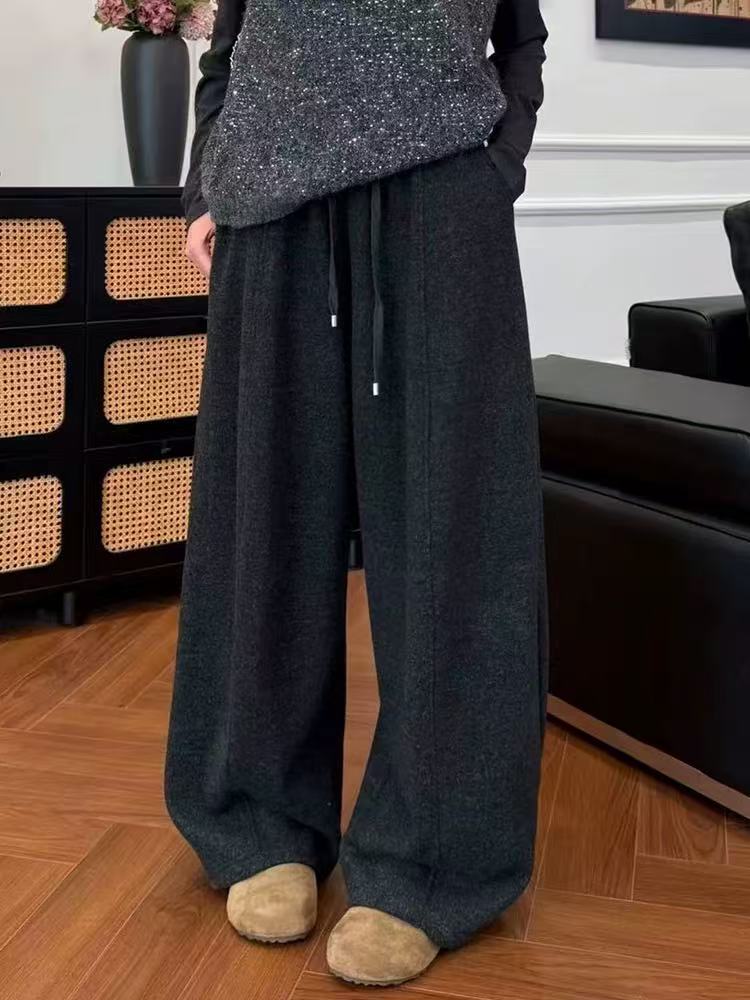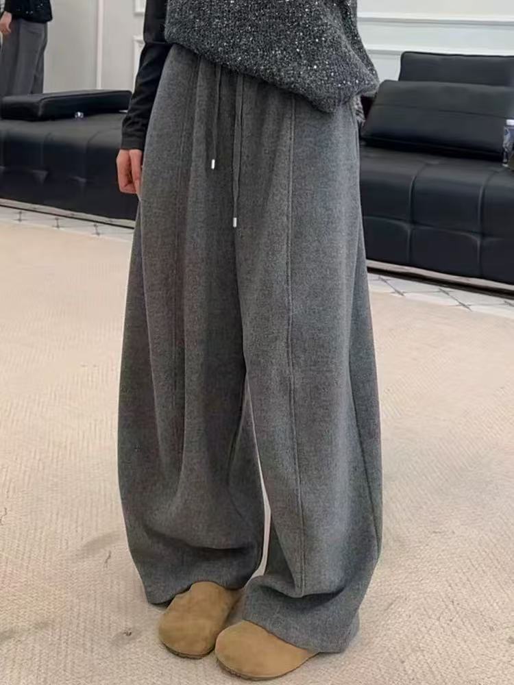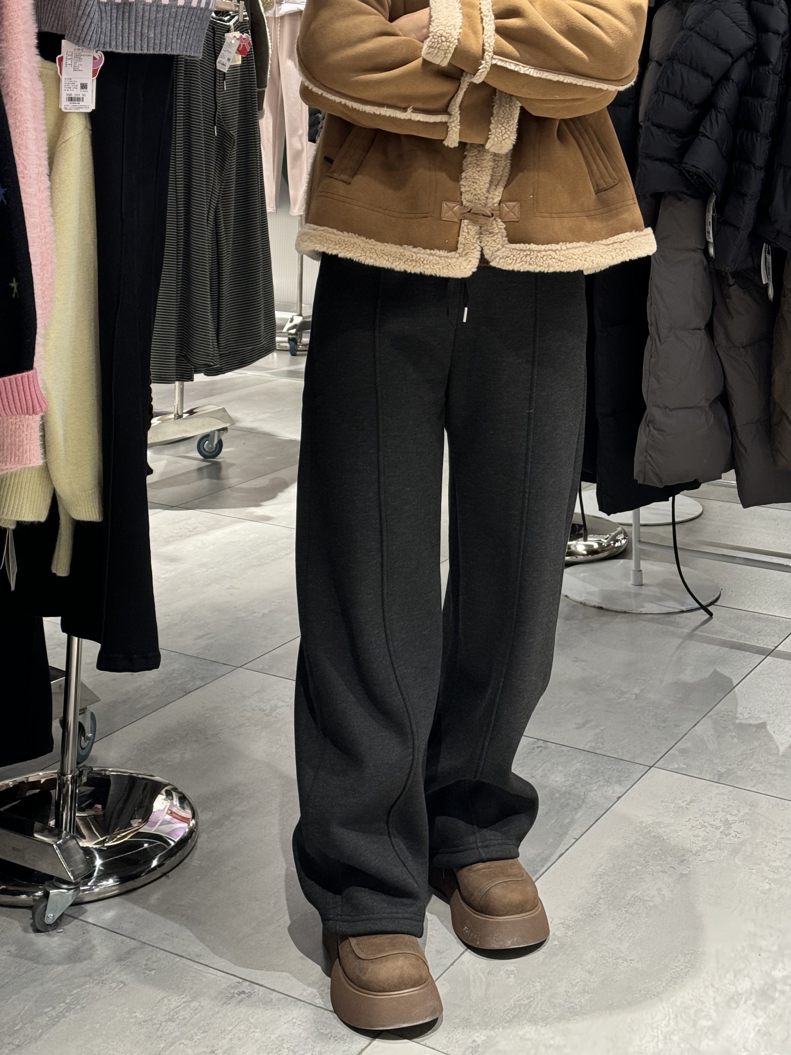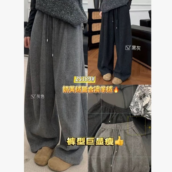 【YW】无忧购慵懒风奶芙绒复合澳羊绒抽绳垂感云朵弯刀裤 25389#(截单后3-5天发货)