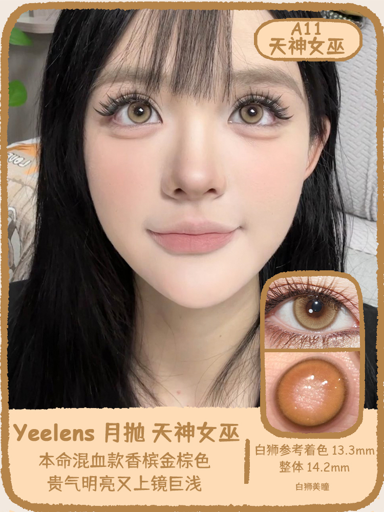 yeelens旗下 A11天神女巫&A12魔镜银冰蓝 14.2mm白狮参考着色中等直径 月抛2片