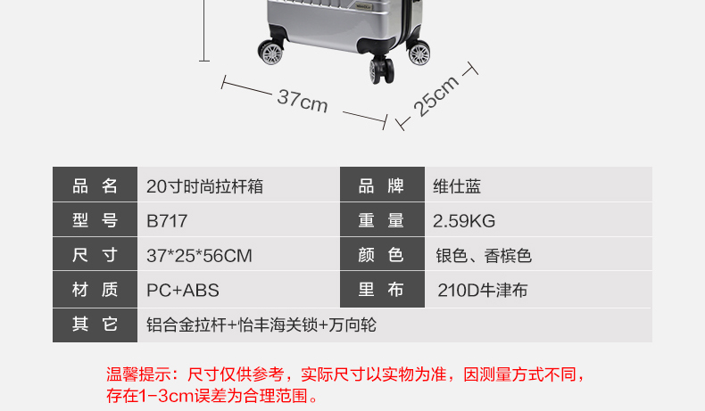 【下单前请备注颜色】维仕蓝时尚拉杆箱B717541B717536