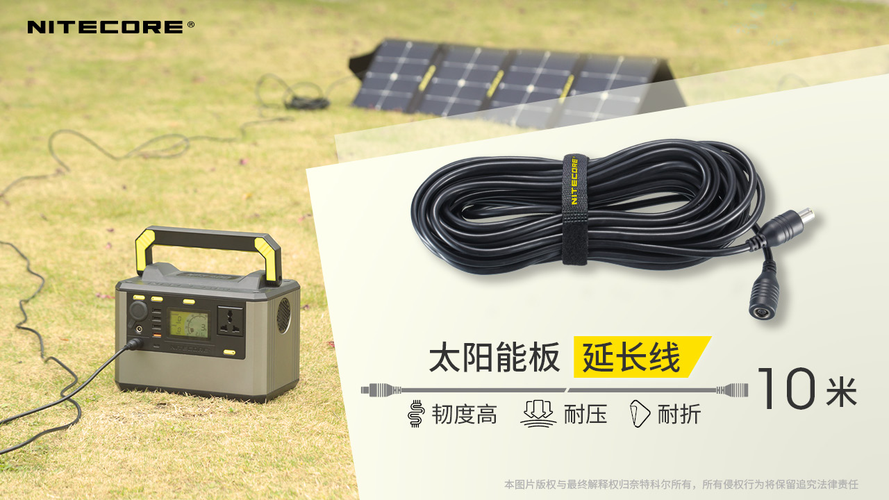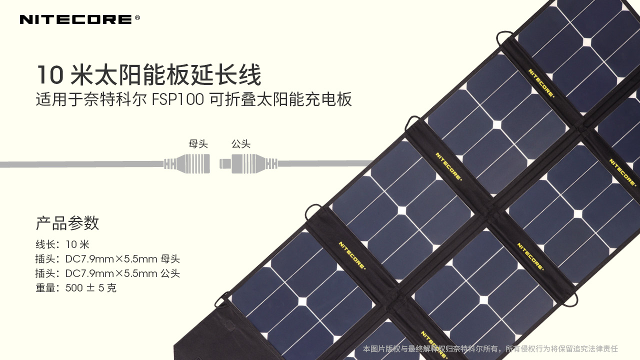 奈特科尔10米太阳能板延长线适用于FSP100可折叠太阳能充电板