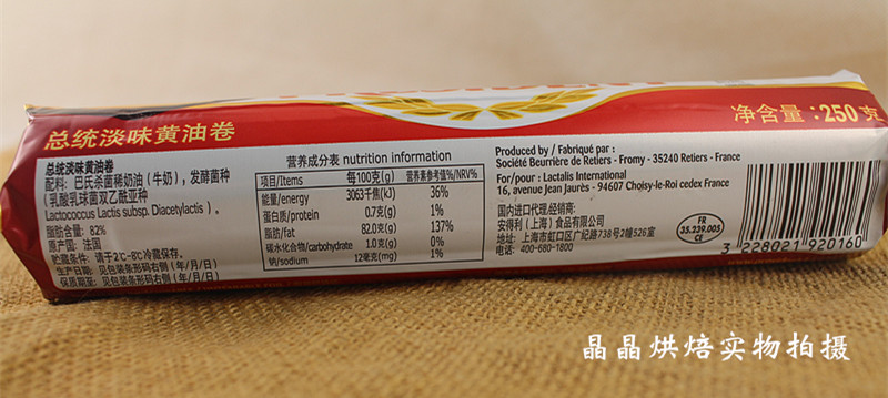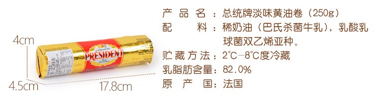 黄油卷 总统淡味黄油【卷】250g 动物性发酵黄油 法国进口 饼干面包蛋糕原料