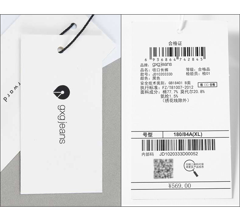 gxgjeans男装夏季休闲裤男潮流黑色束脚裤