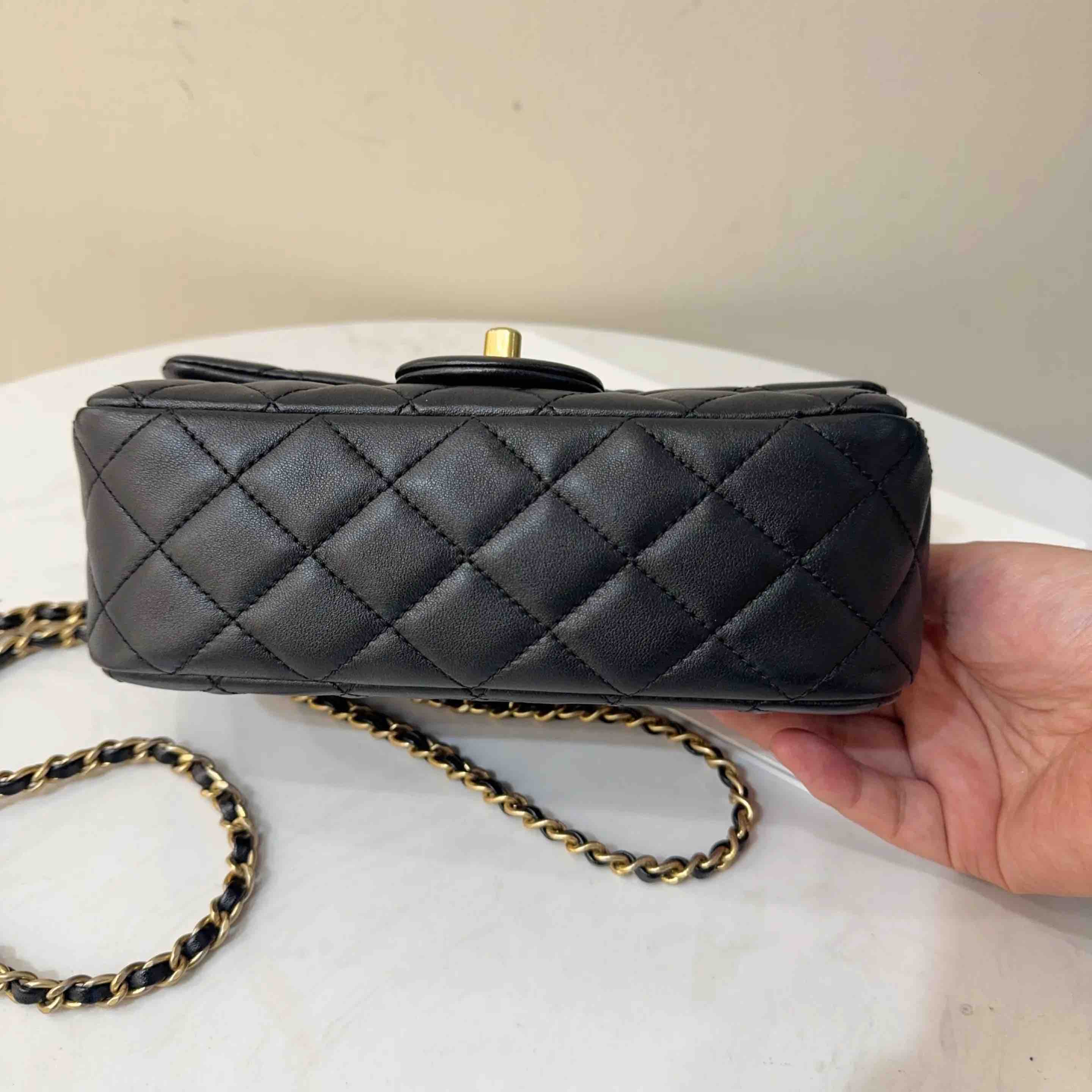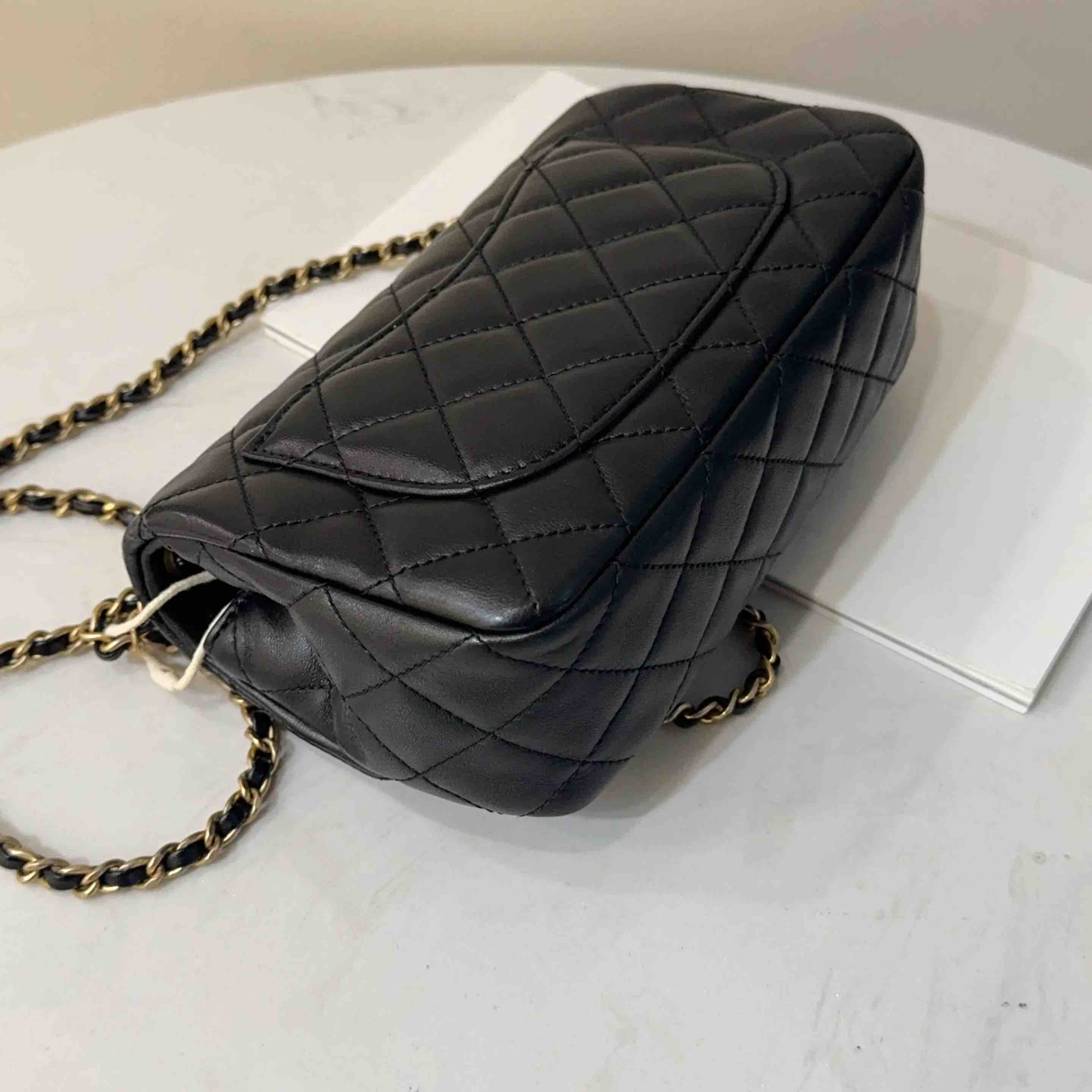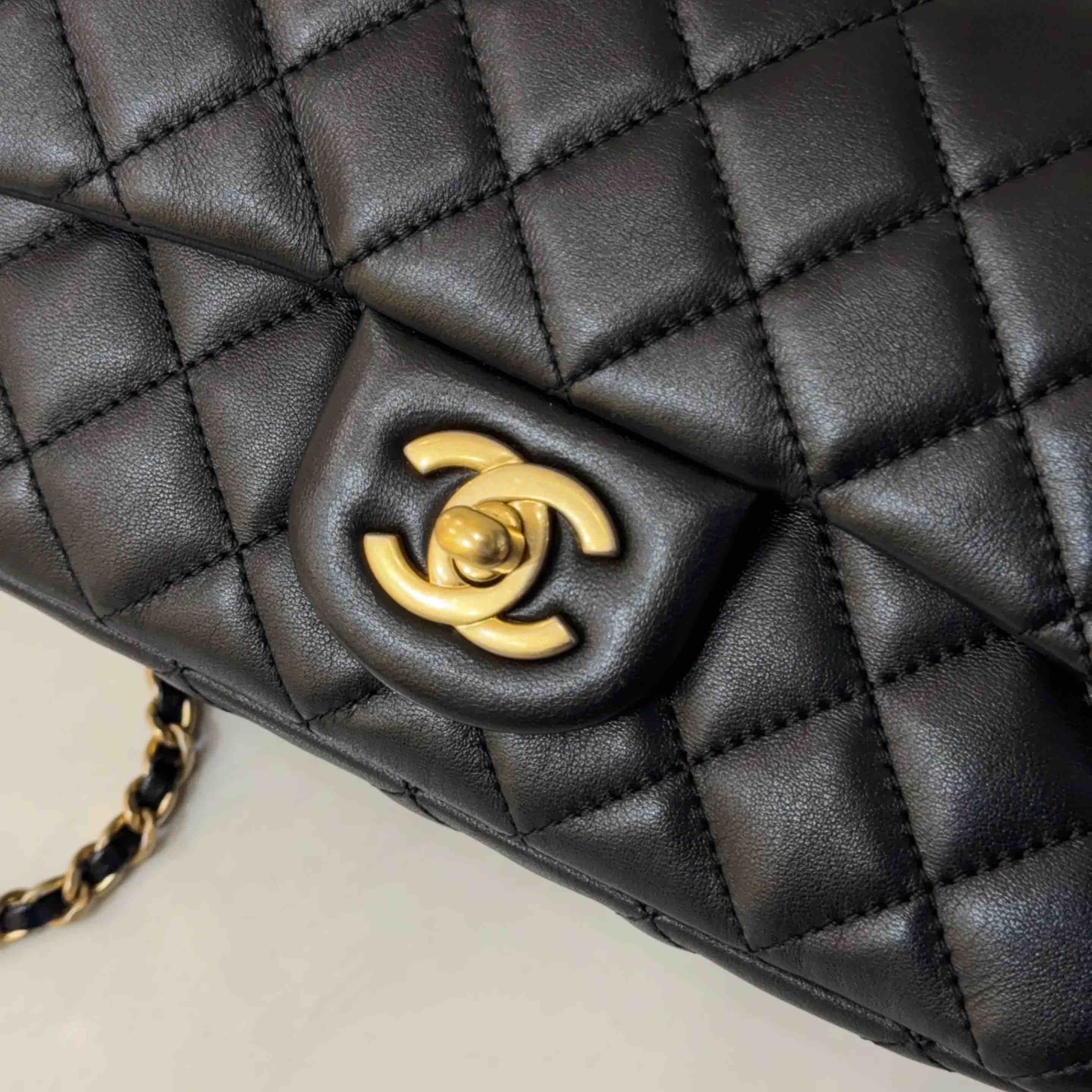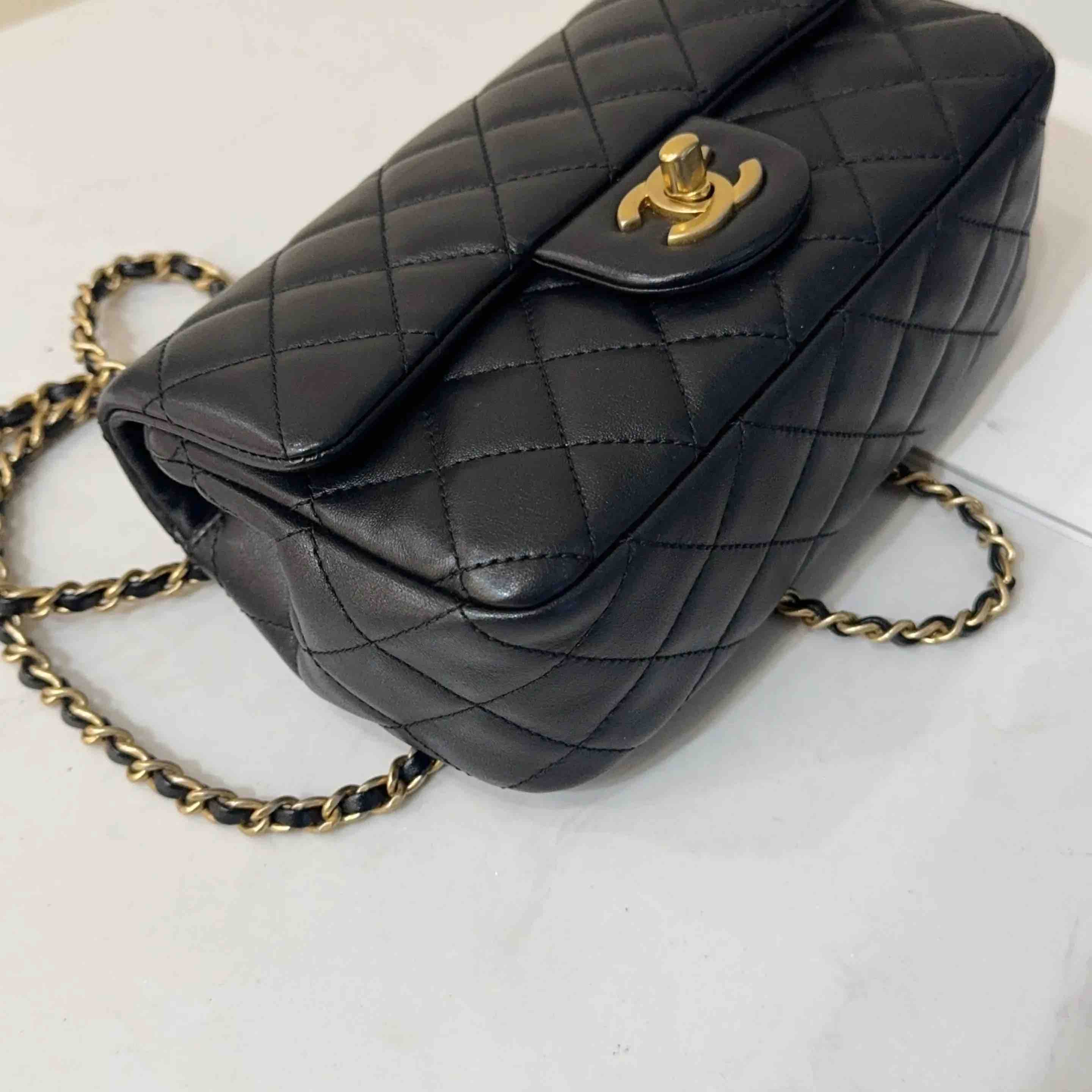 【商品详情】正品二手 CHANEL CF 大mini 黑金 羊皮 斜挎包💧97新 21x12 镭射30开 配件:防尘袋 盒子。黄金尺寸超实用款
