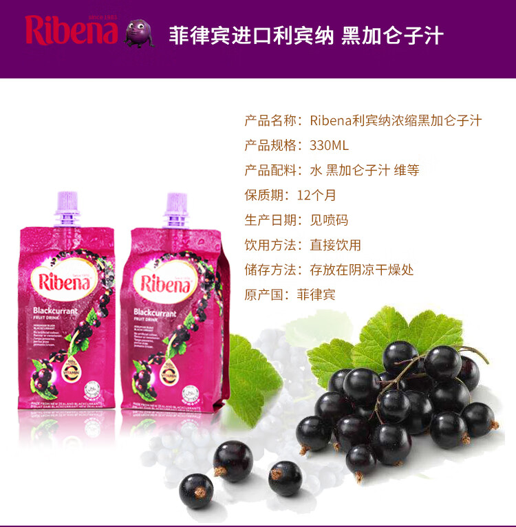 利宾纳维C果汁系列 口味黑加仑330ml 草莓黑加仑330ml