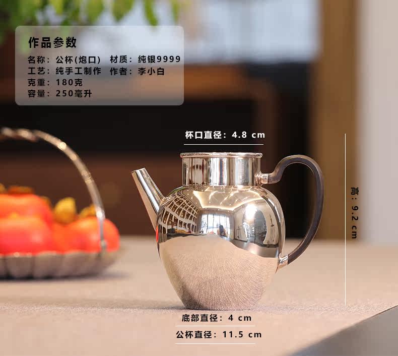 李小白纯银9999公道杯 纯手工制作 纯银公杯 炮口公道杯 分茶公道杯