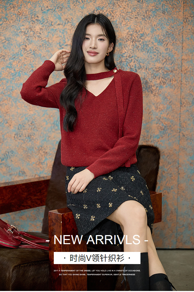 奢姿大码女装2025冬季贴颈式装饰V领针织衫胖妹妹时尚百搭上衣9854669941A