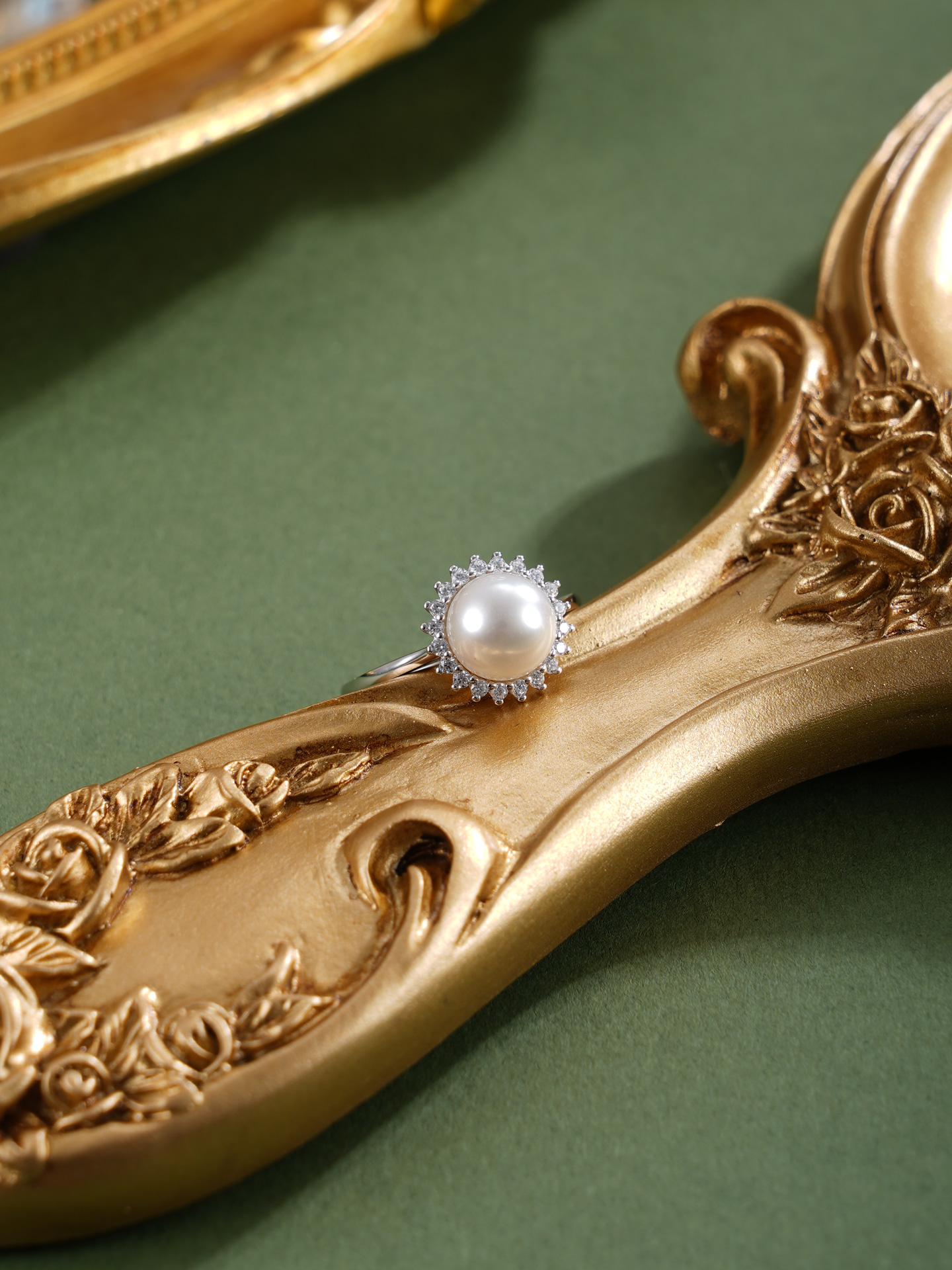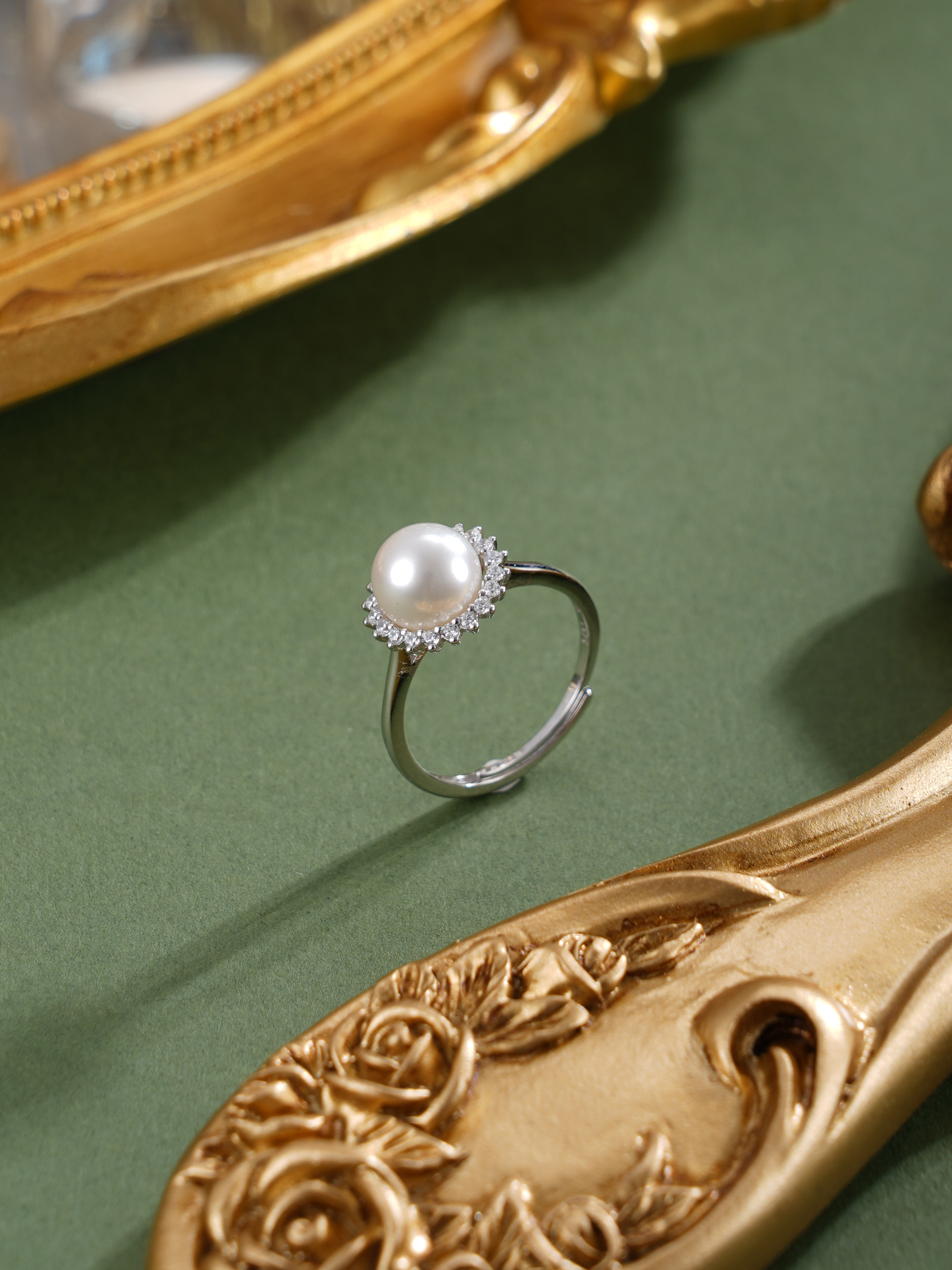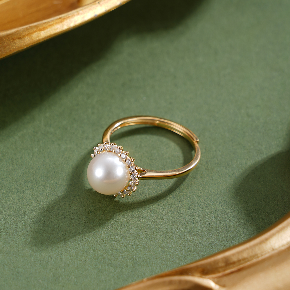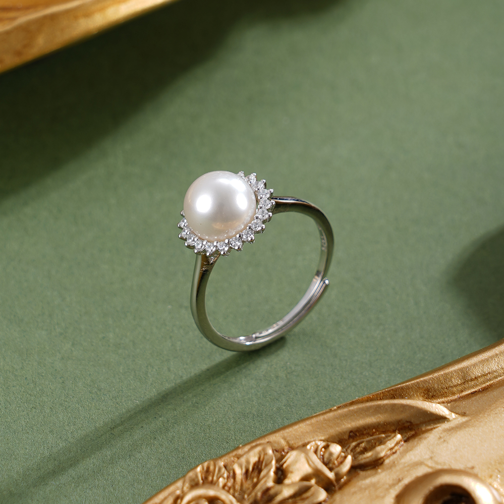 子佩集【晨曦微光】银S925珍珠惜王妃戒指【R2094】8mm珠双色太阳花2601