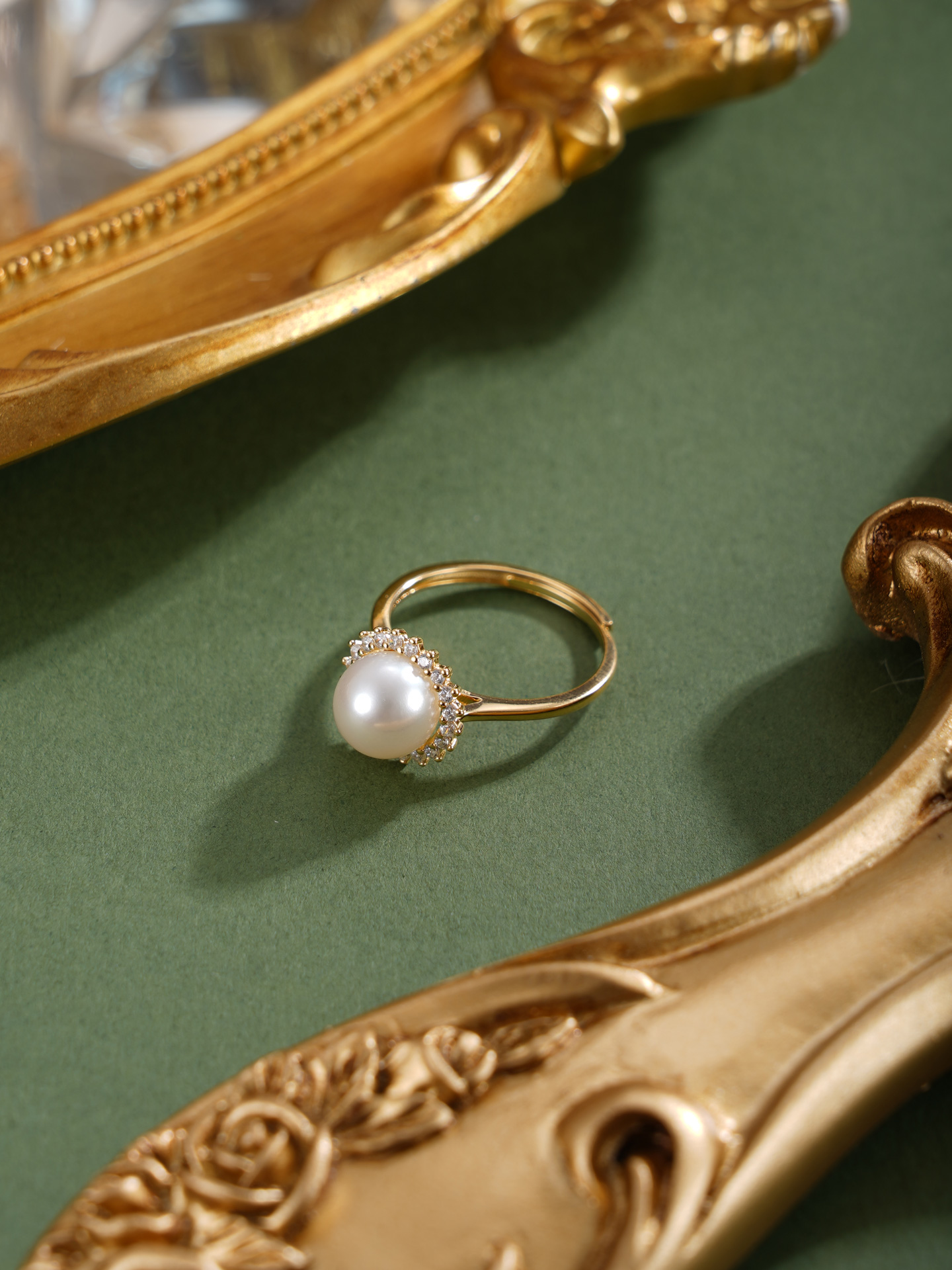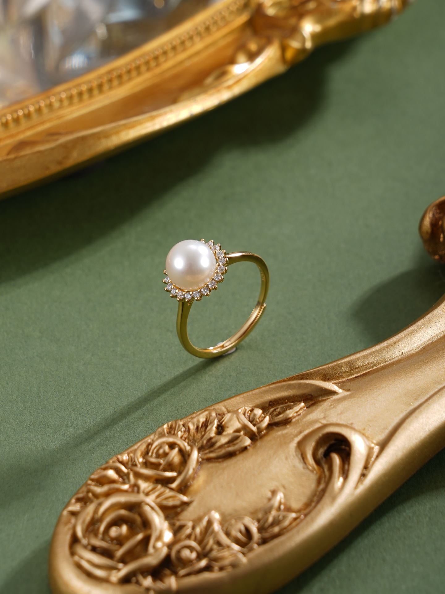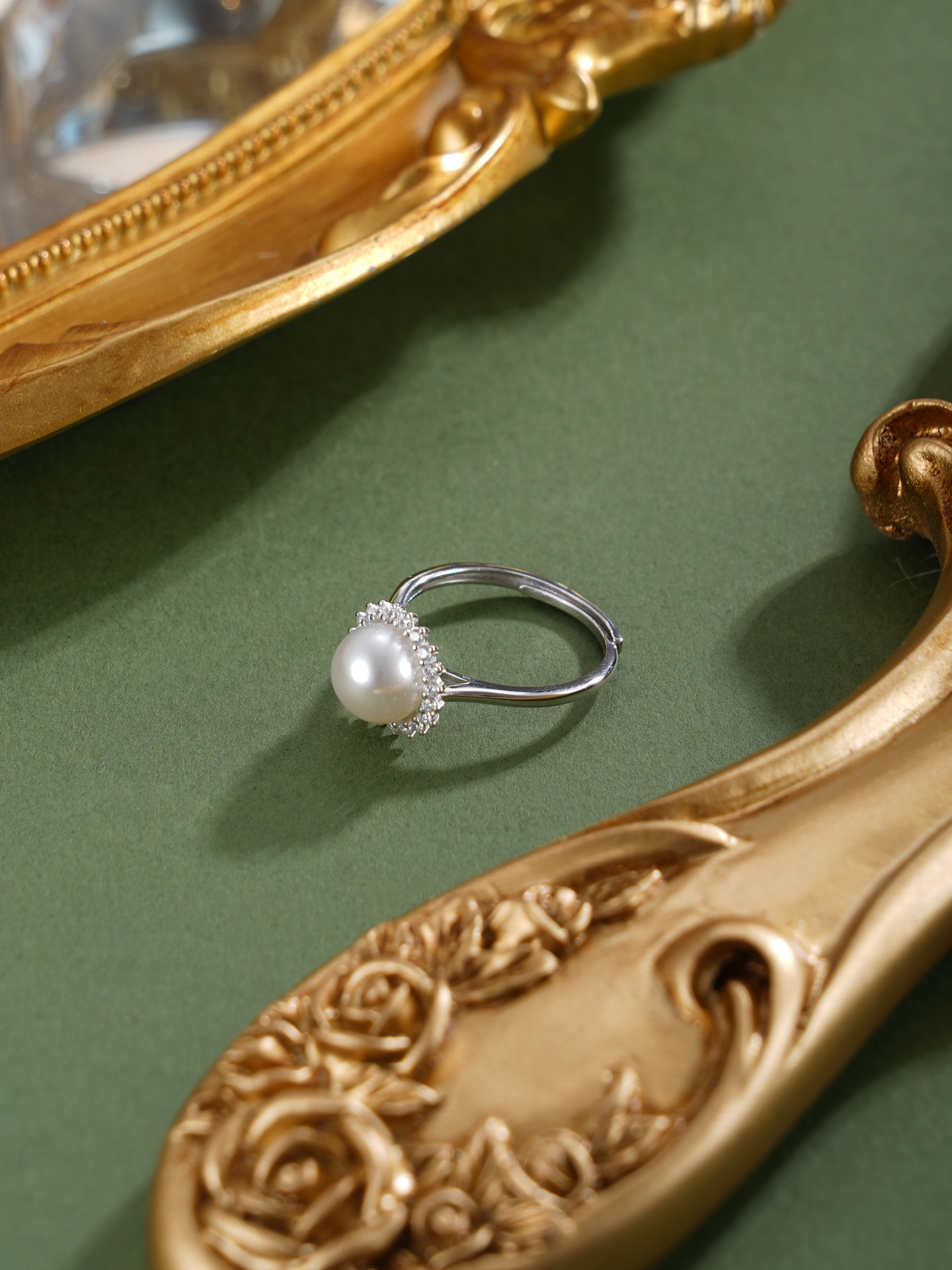 子佩集【晨曦微光】银S925珍珠惜王妃戒指【R2094】8mm珠双色太阳花2601