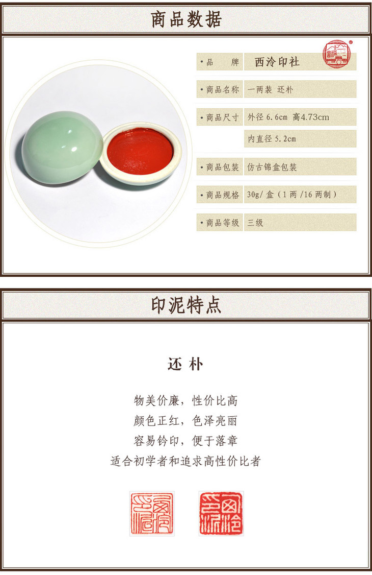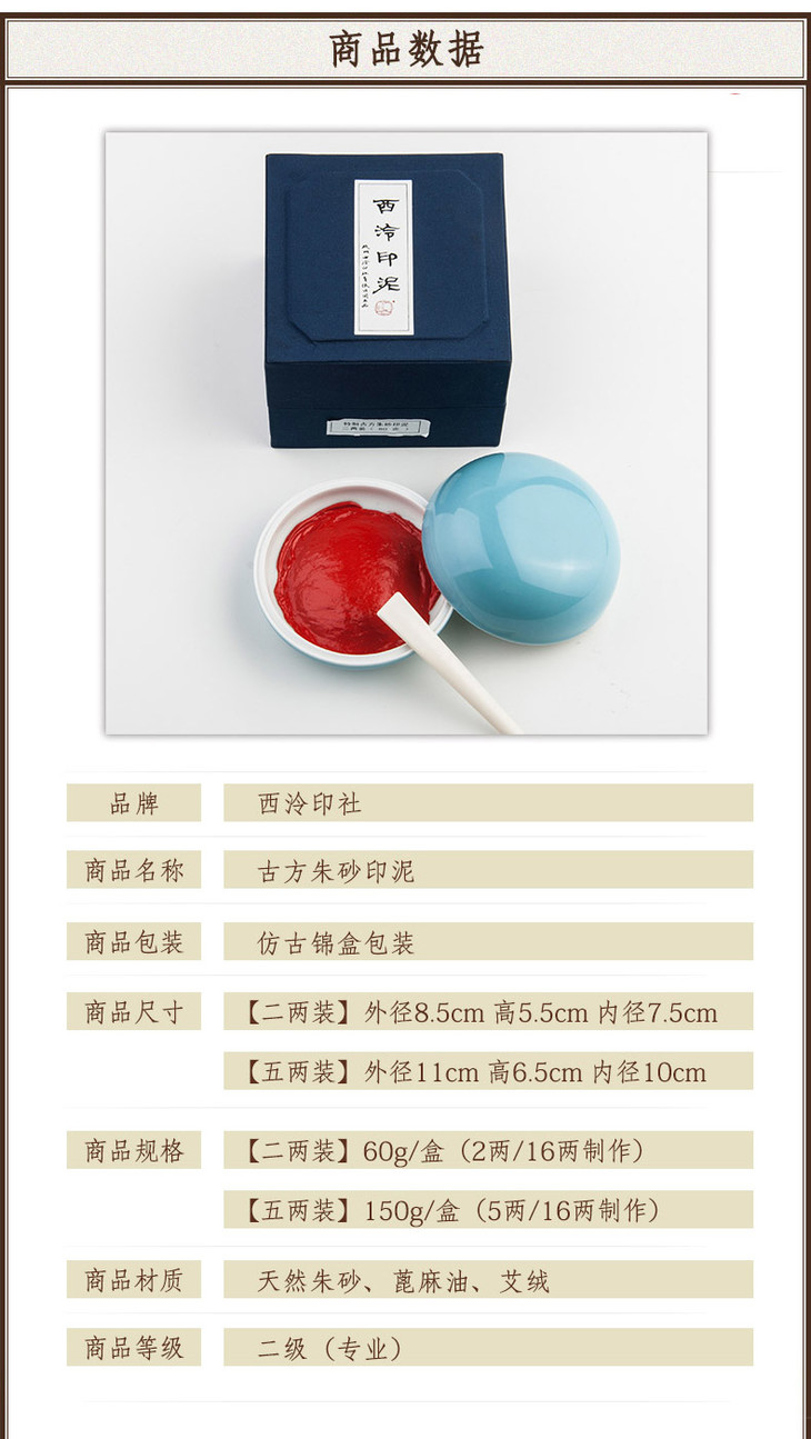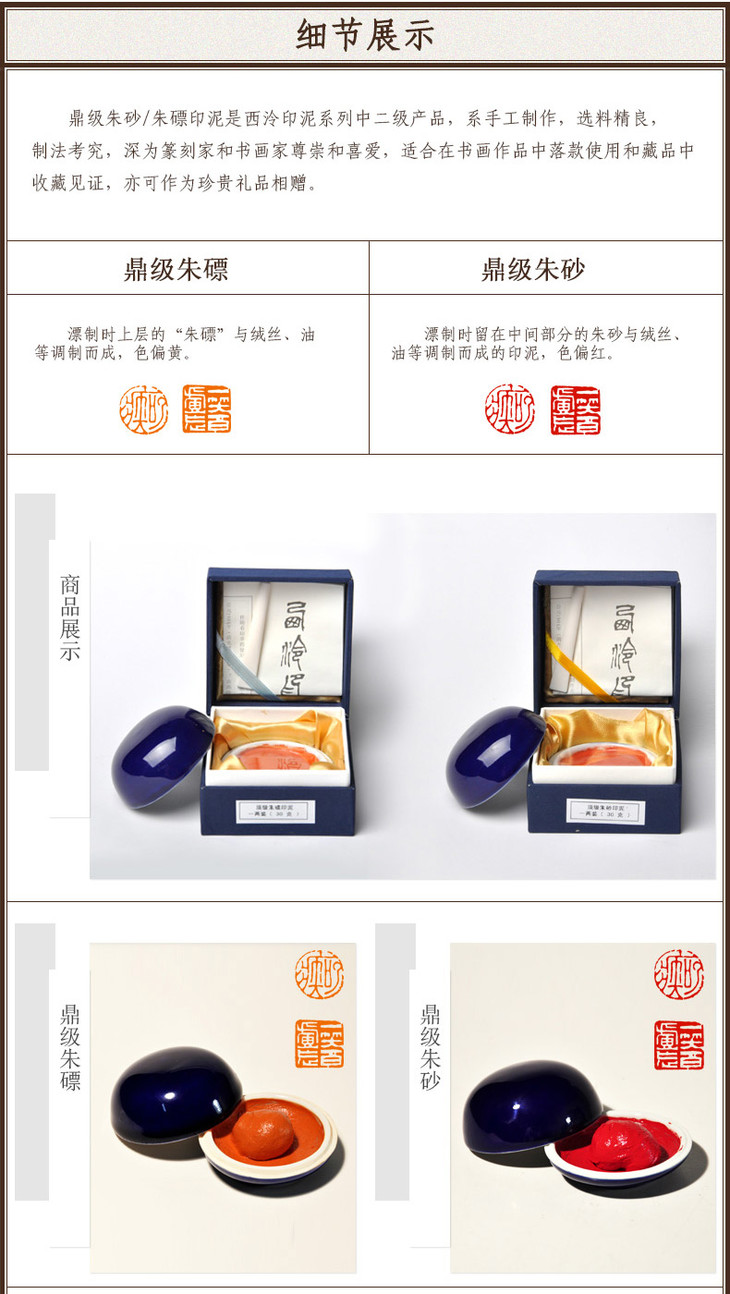 西泠印社 | 朱砂朱磦彩色印泥 书法绘画专用 印面均匀