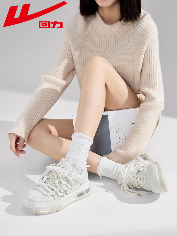 回力女鞋小白鞋2024春夏加绒运动休闲板鞋潮流时尚百搭厚底面包鞋