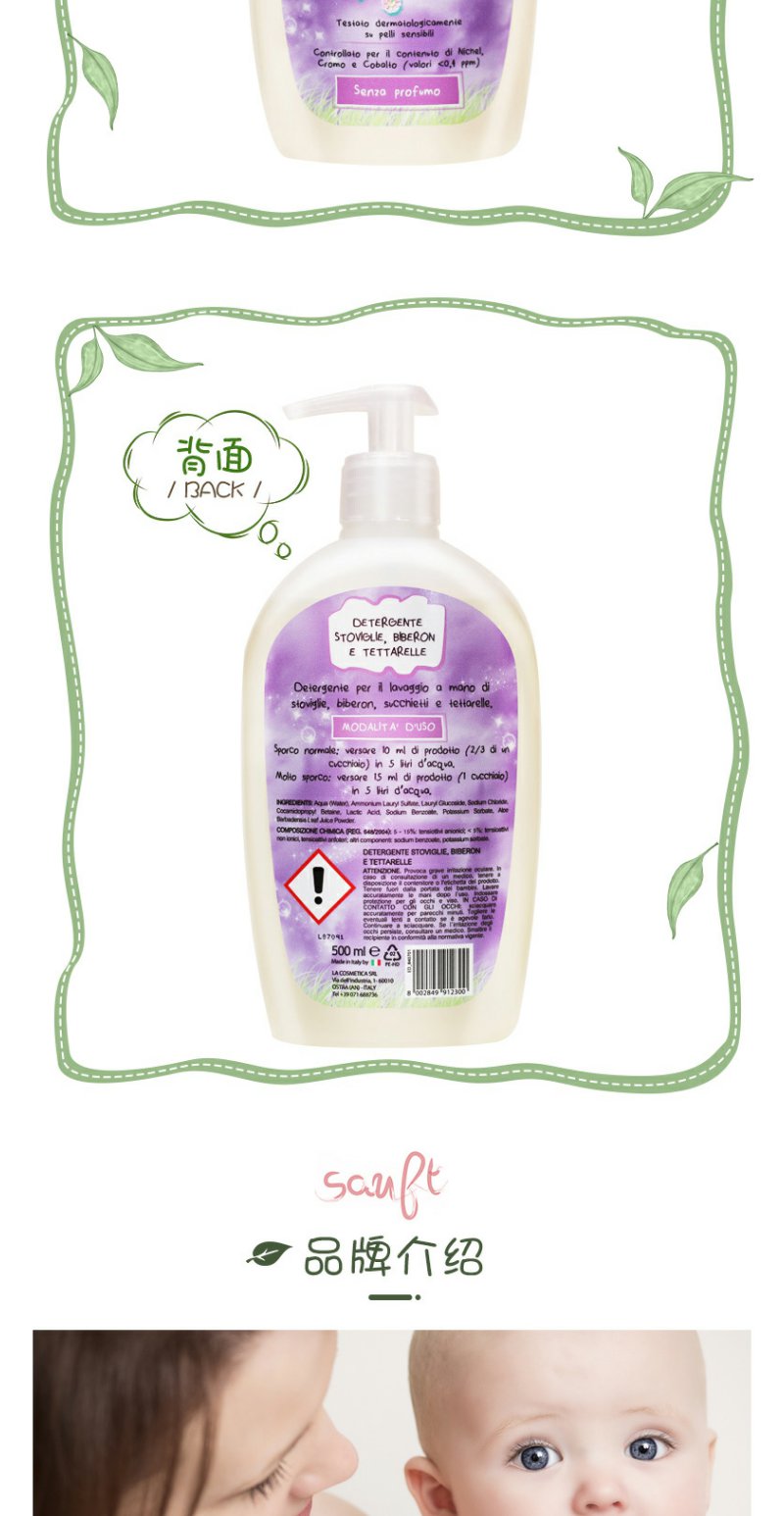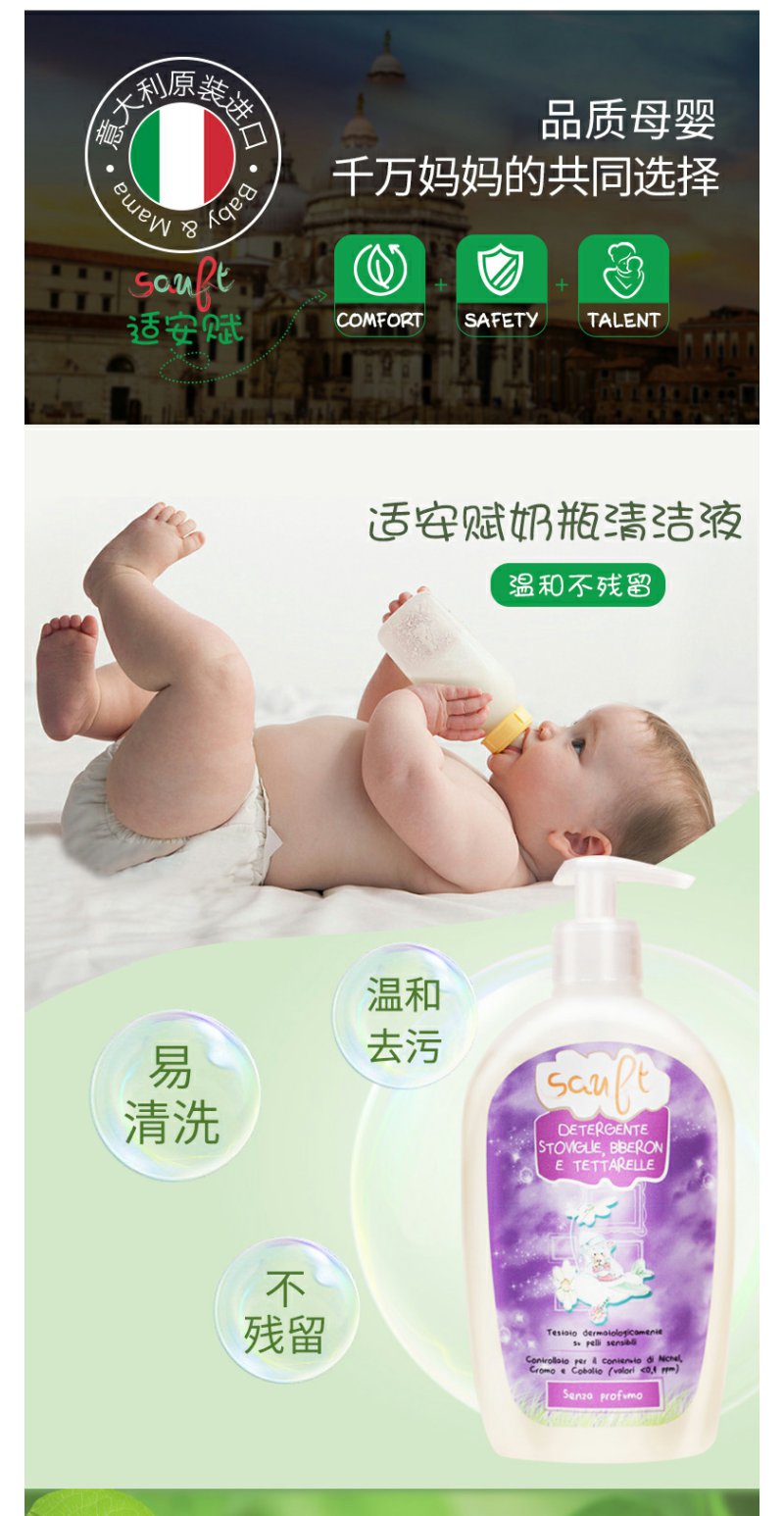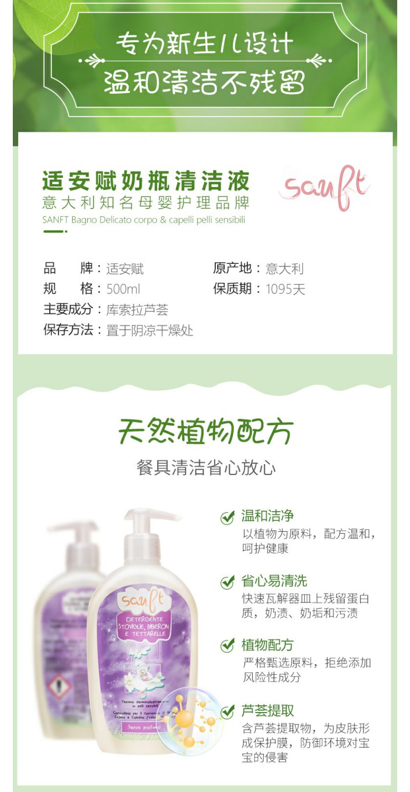 适安赋进口婴儿奶瓶宝宝餐具清洗剂500ml玩具清洁剂植萃精华