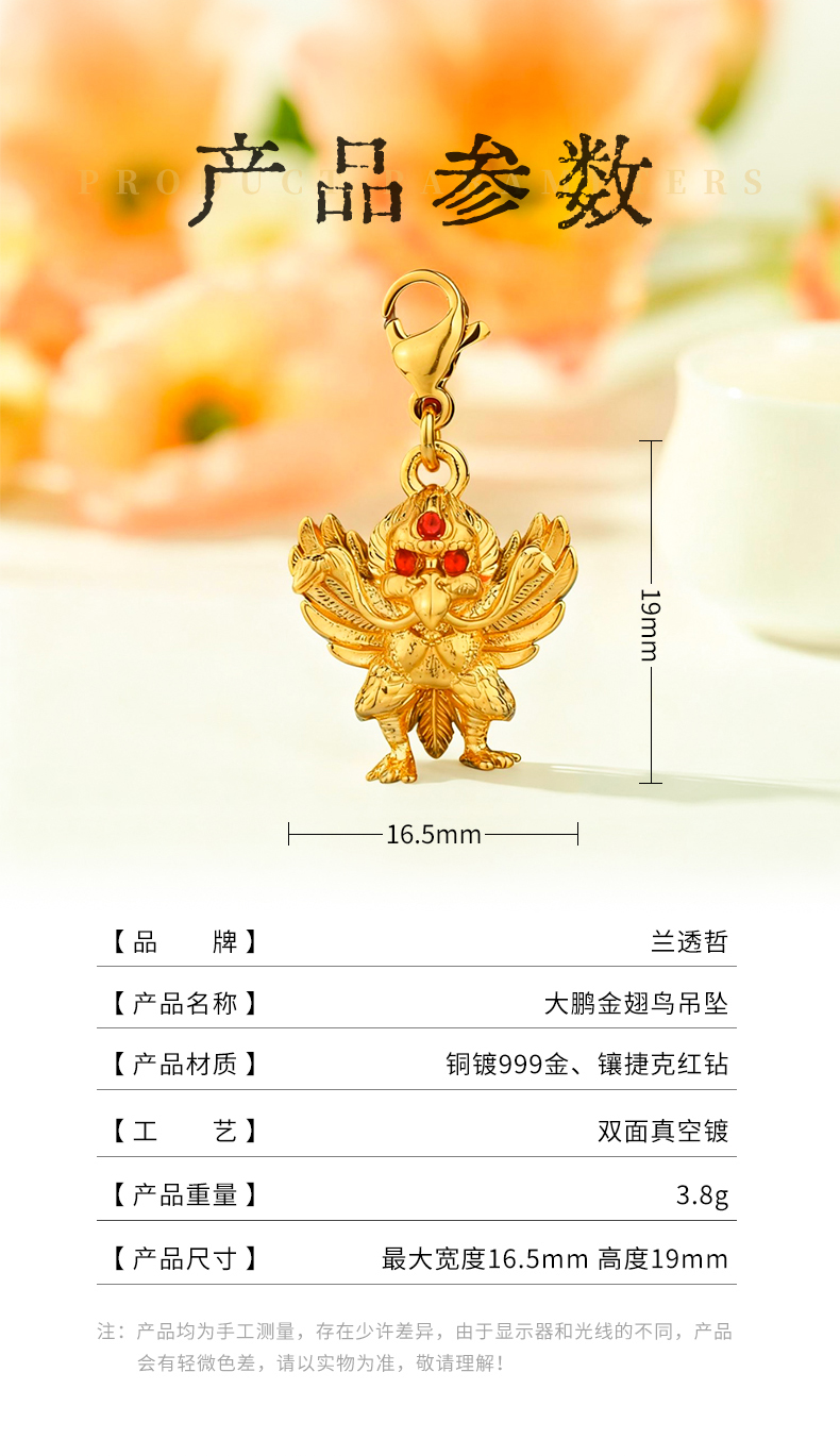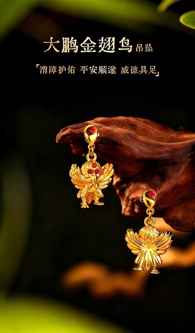 新品 兰透哲纯铜镀金大鹏金翅鸟挂件吊坠念珠吊坠卡子