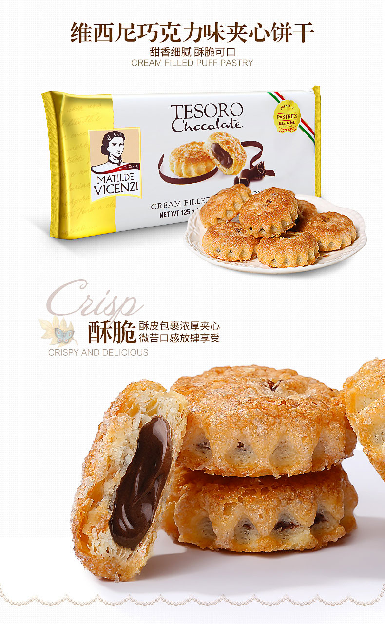 意大利维西尼夹心系列饼干125g 酥松饼干细腻夹心典雅大气包装 059011/059012/059013/055387/055388