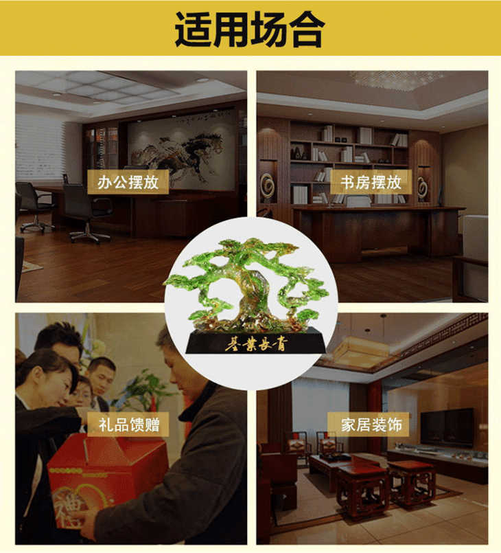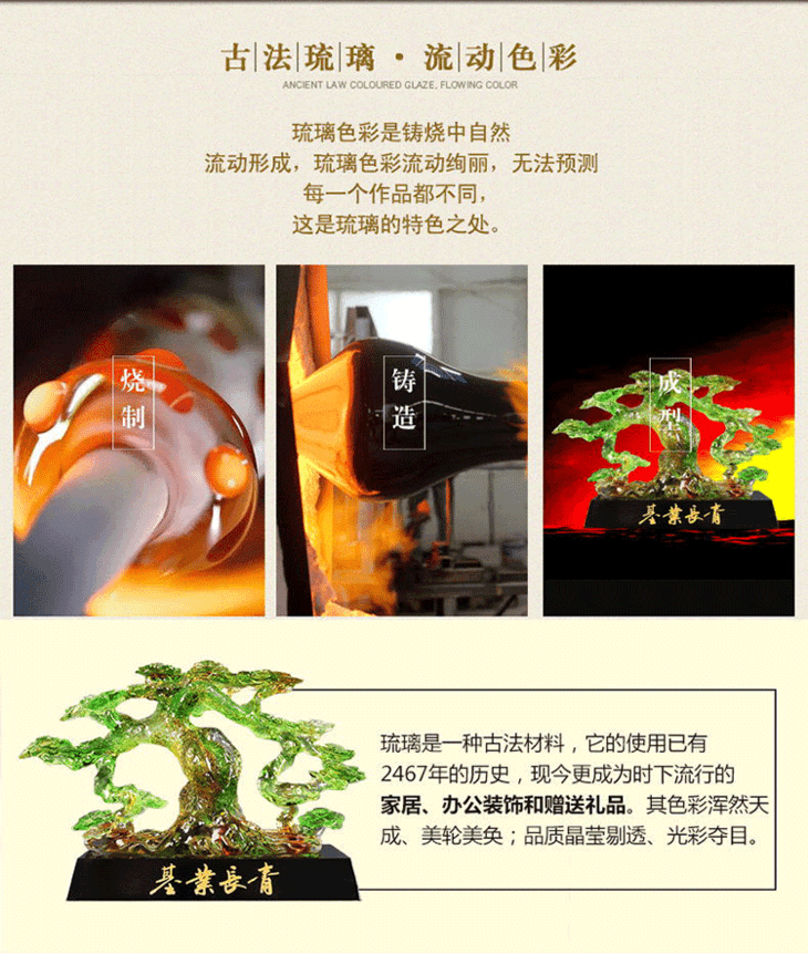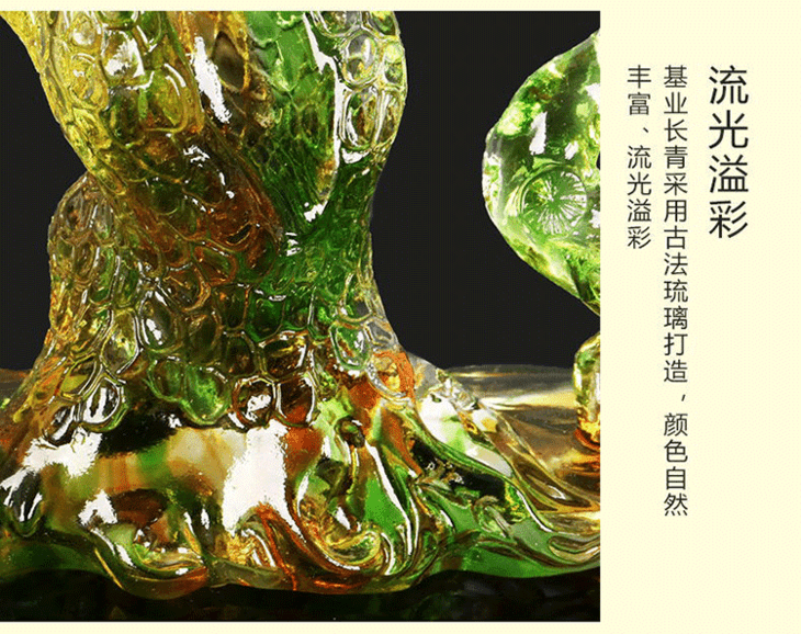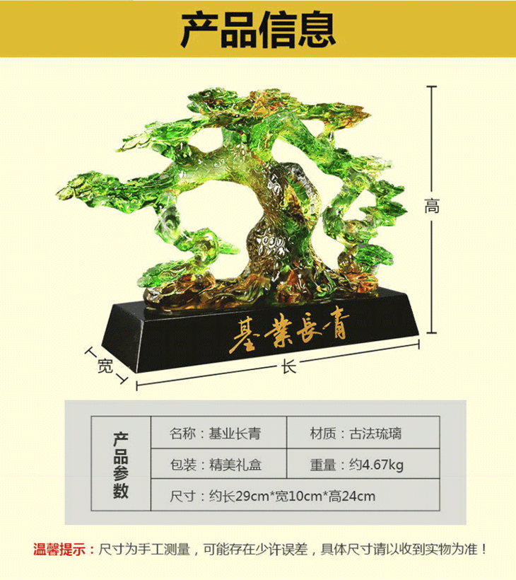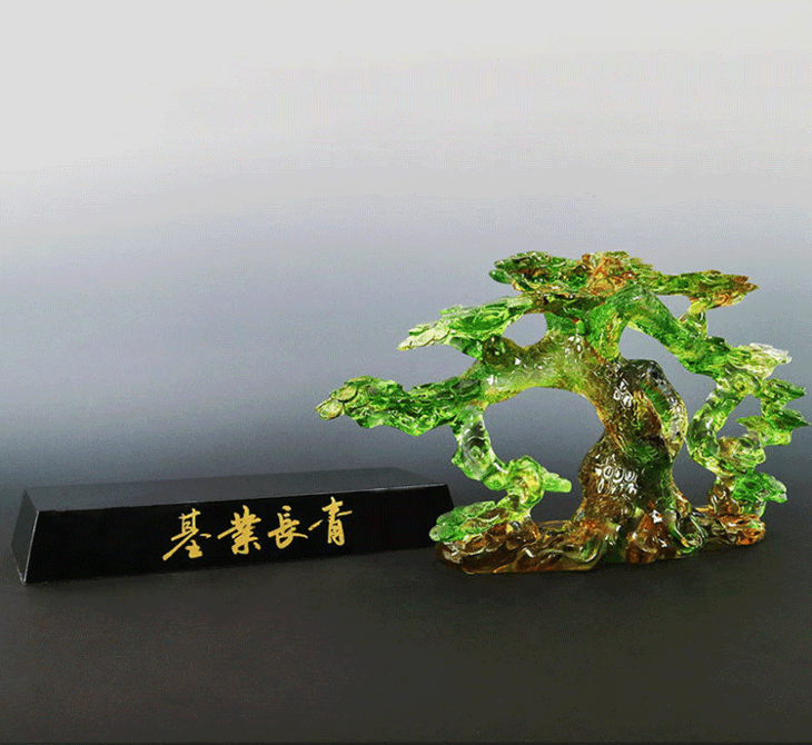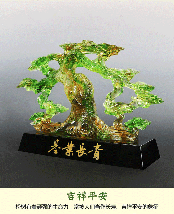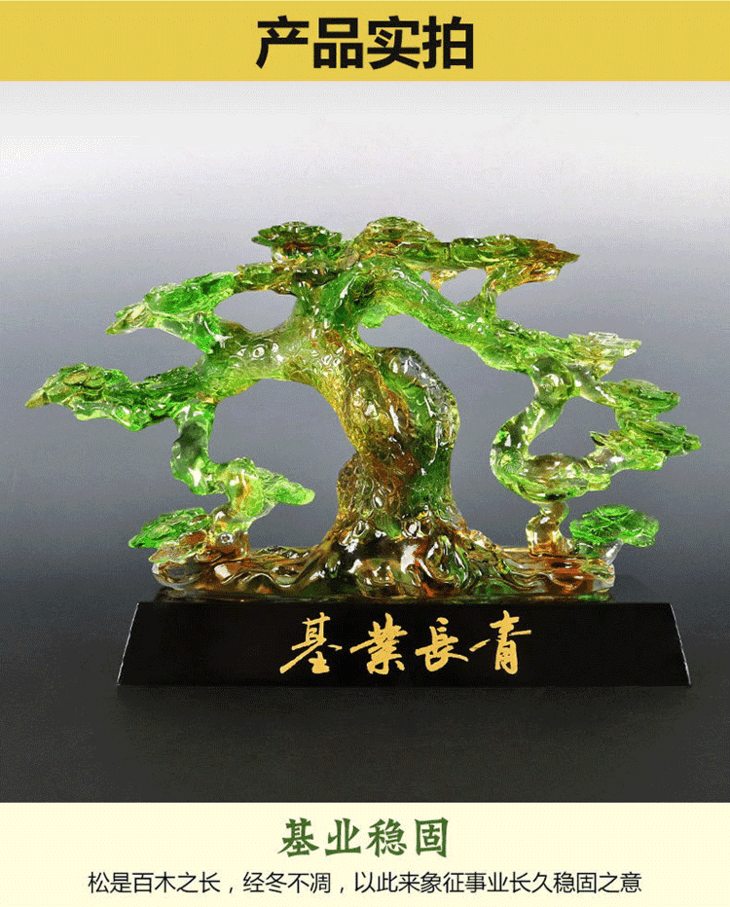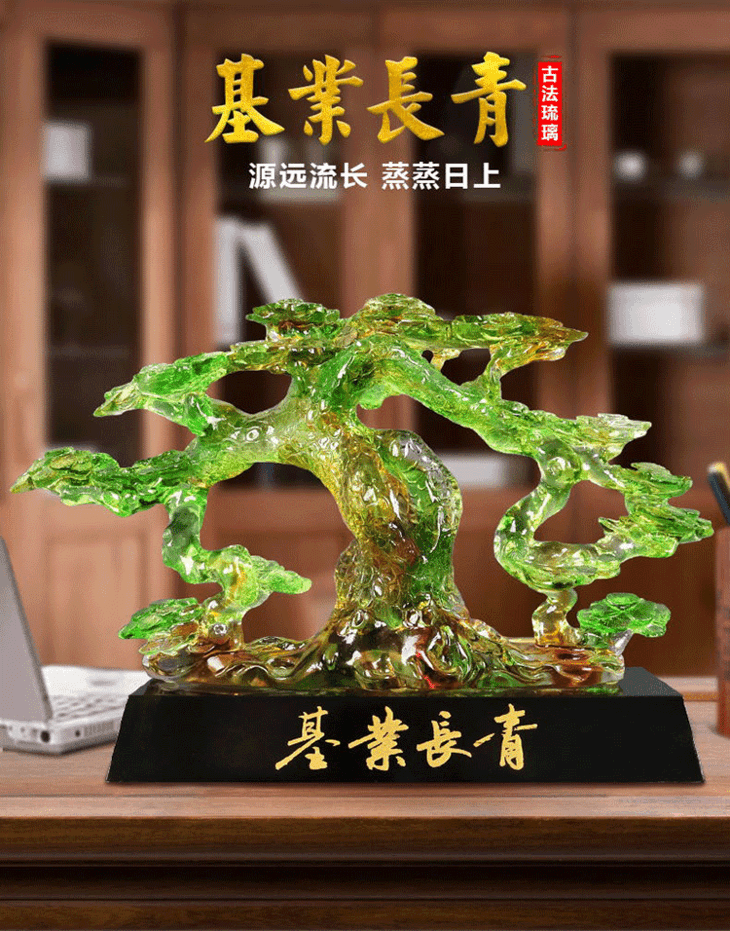基业长青琉璃摆件公司开业礼品办公室桌迎客松装饰摆设送领导礼物