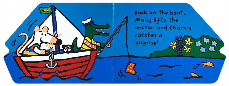 Today is the perfect day to go sailing in Maisy's boat! When Maisy and Charley stop at the blue lagoon for fishing and snorkeling, how many colorful fish will Maisy see under the water? What surprise will Charley catch on his fishing line? What an adventure out on the waves! Three cheers for Captain Maisy!