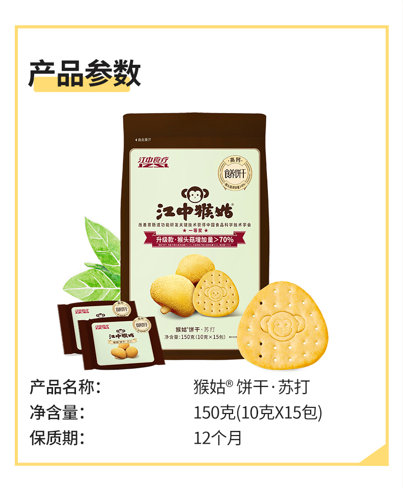 江中猴姑原味苏打饼干150g/袋 10*15包/袋 保质期至2026年9月【新人专享,限购2件】