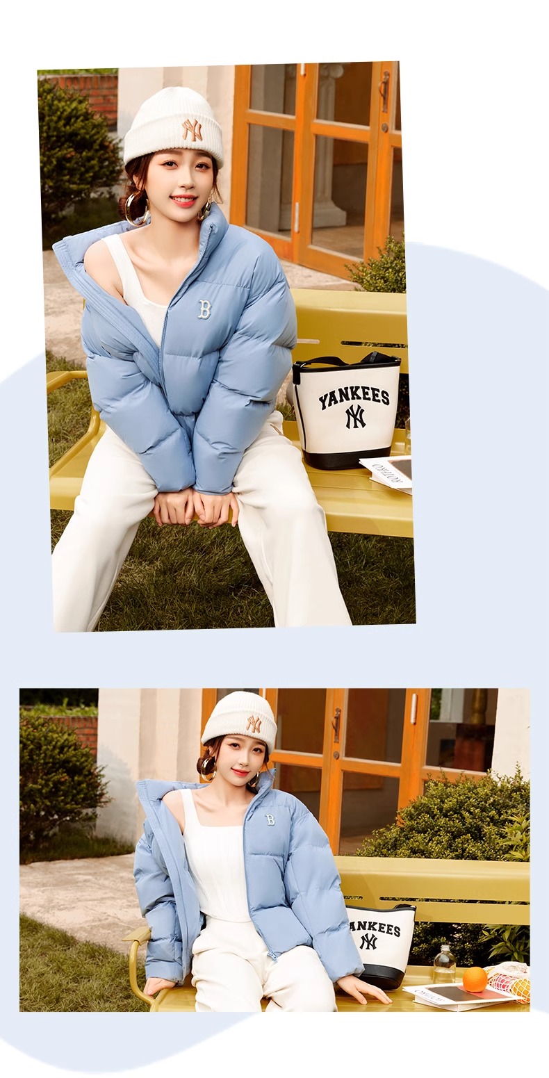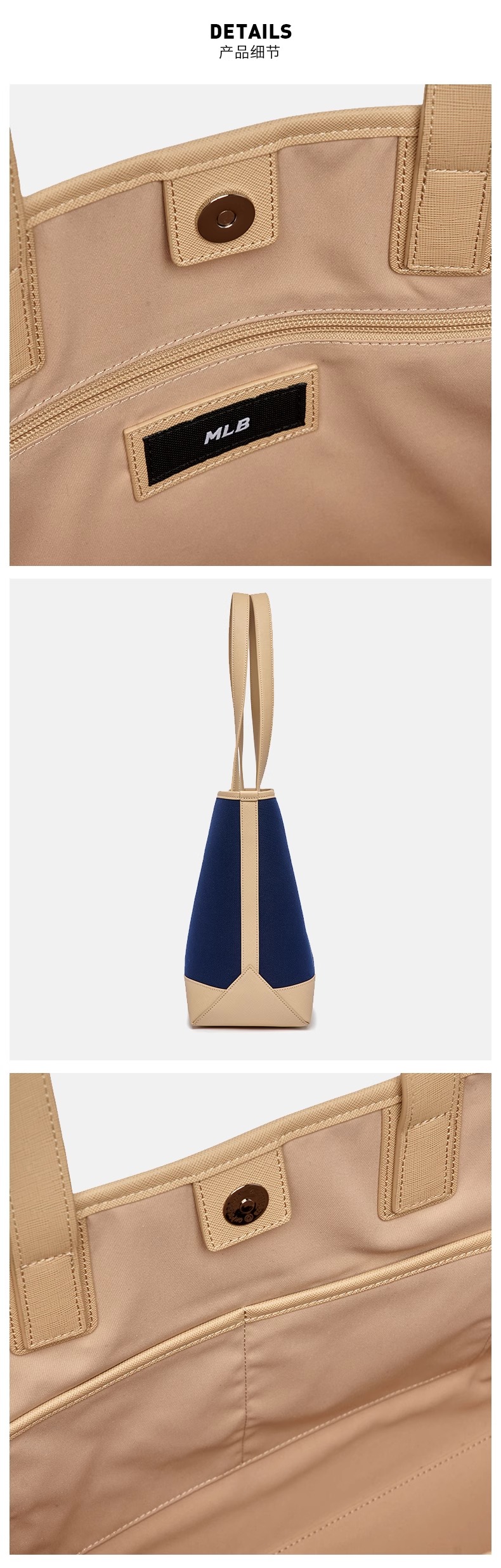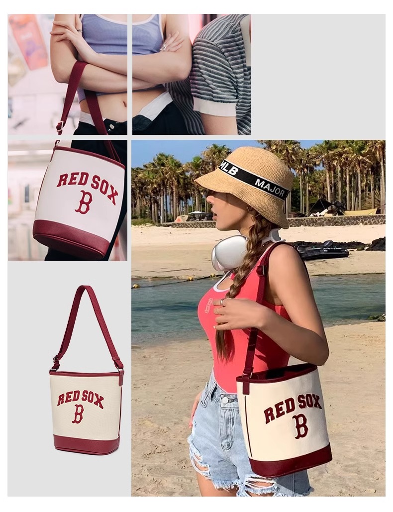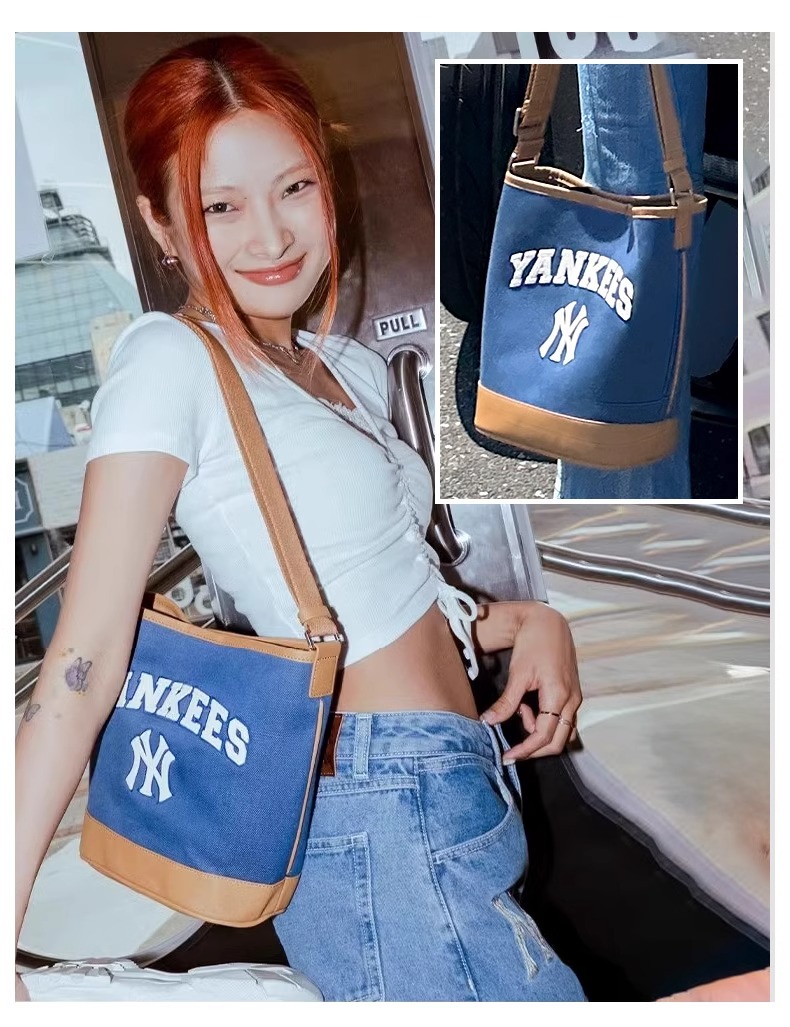 【品牌授权】扫码验证 韩国MLB 帆布拼棉字母水桶包-酒红色B 靛蓝色NY 深奶油色NY 女新款老花满印休闲时尚运动背包 3ABMS093N