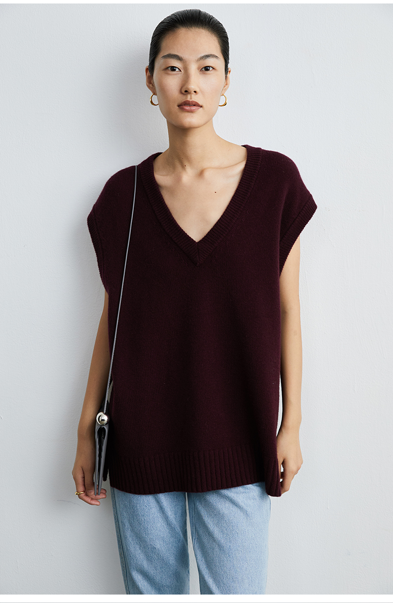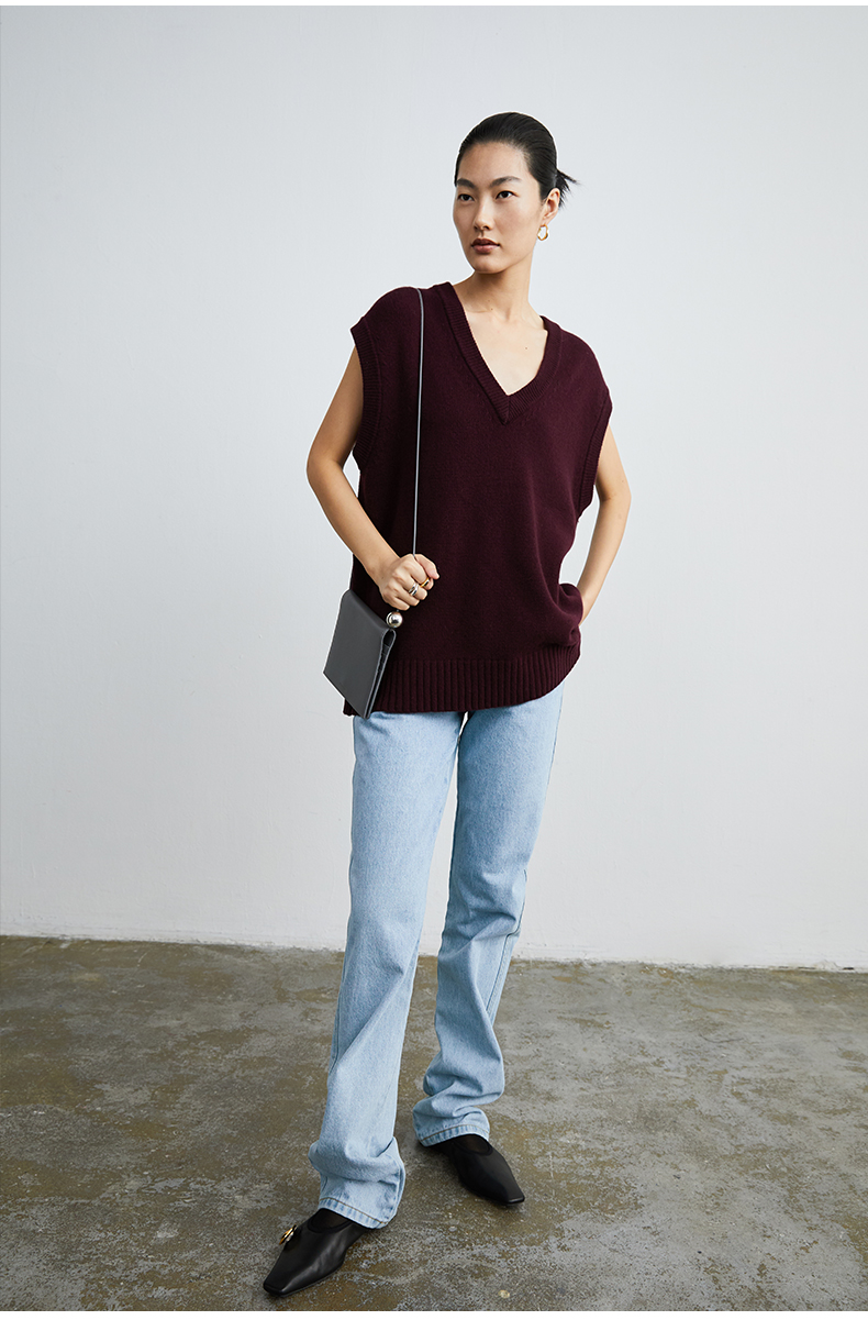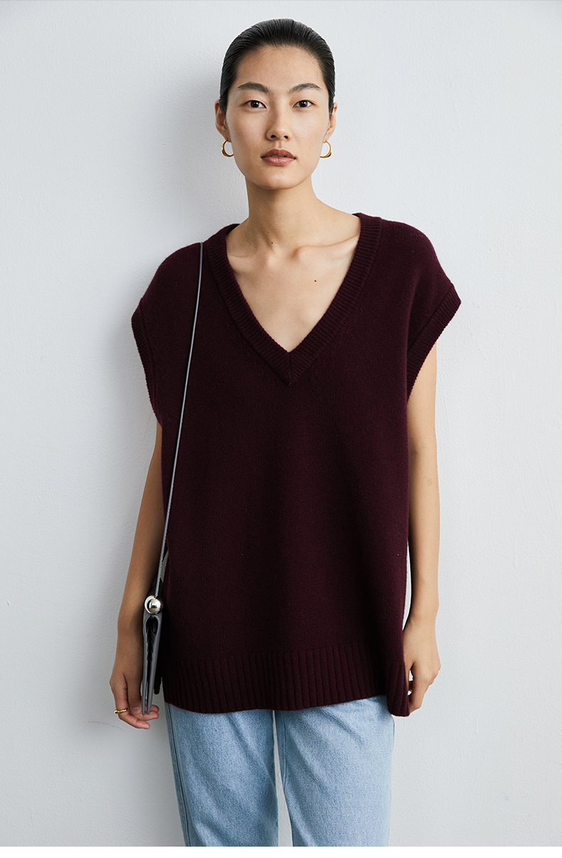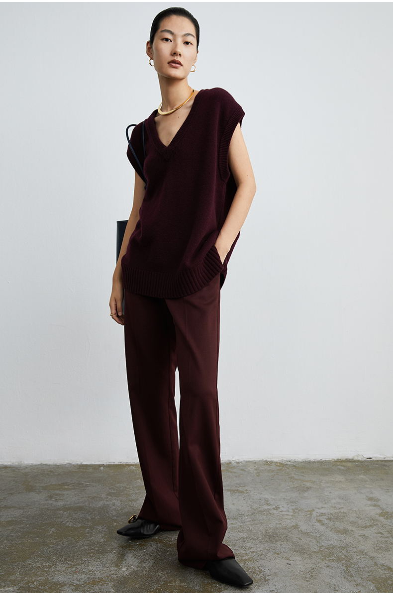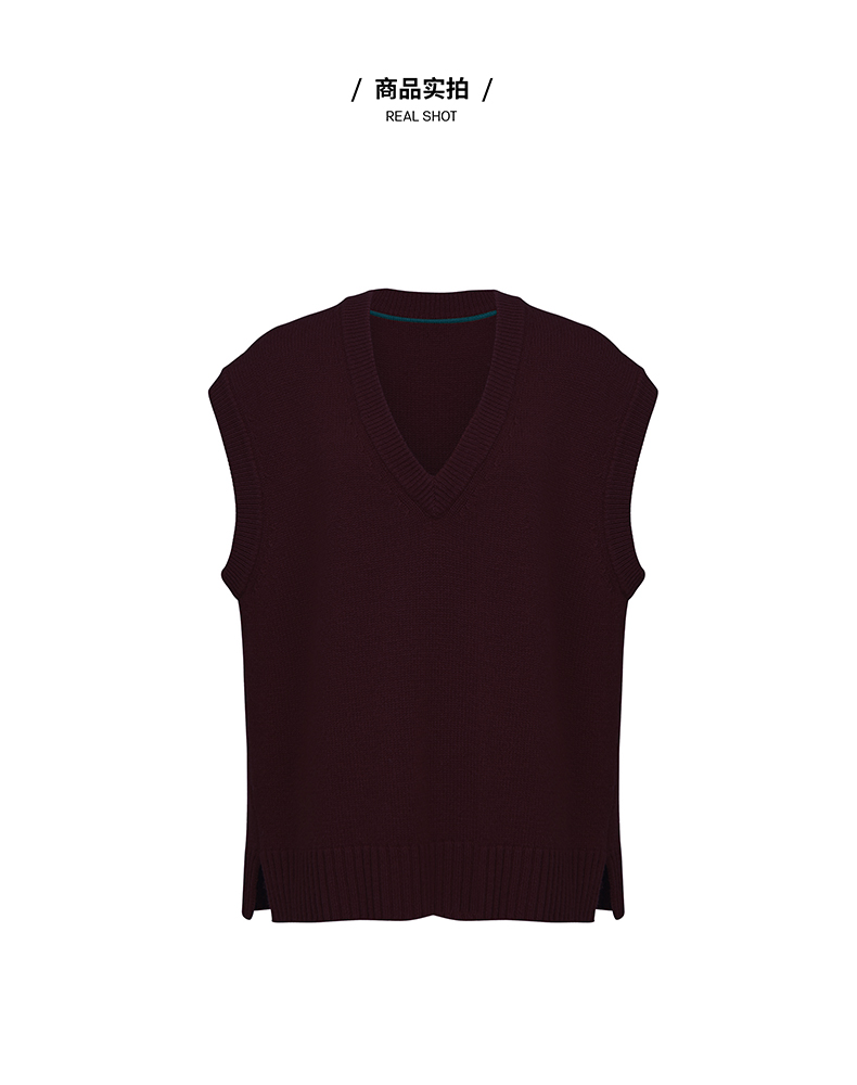 HIDEMI 美利奴羊毛酒红色v领马夹