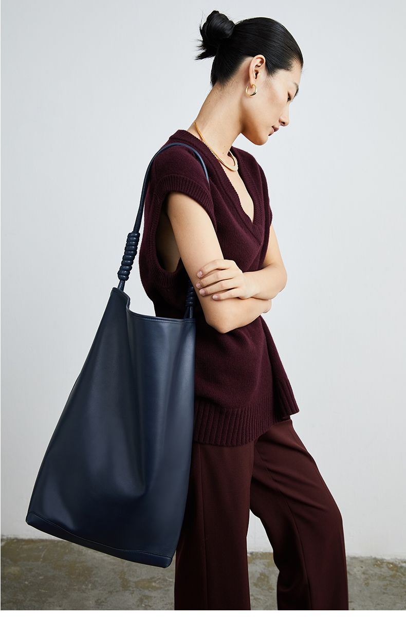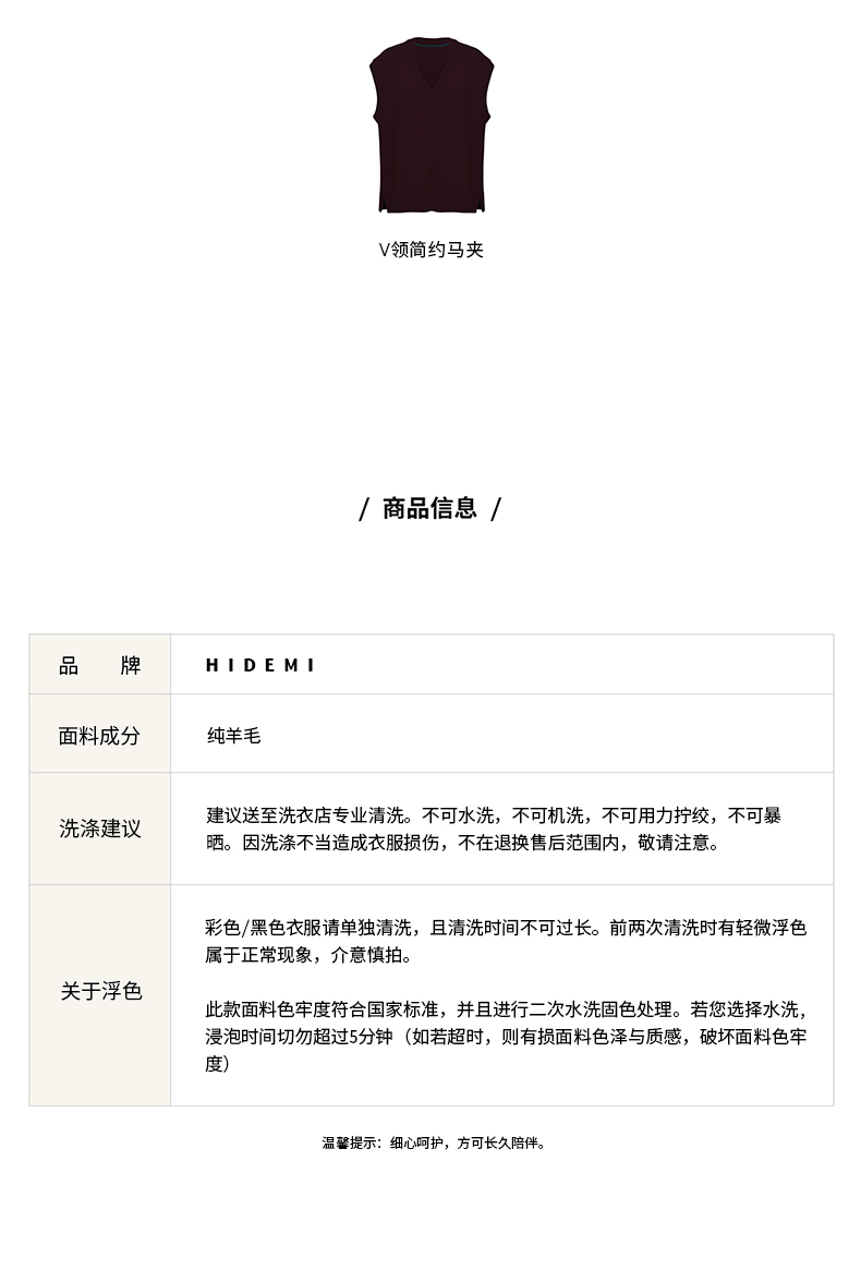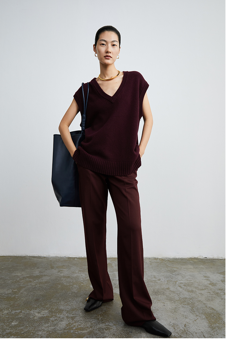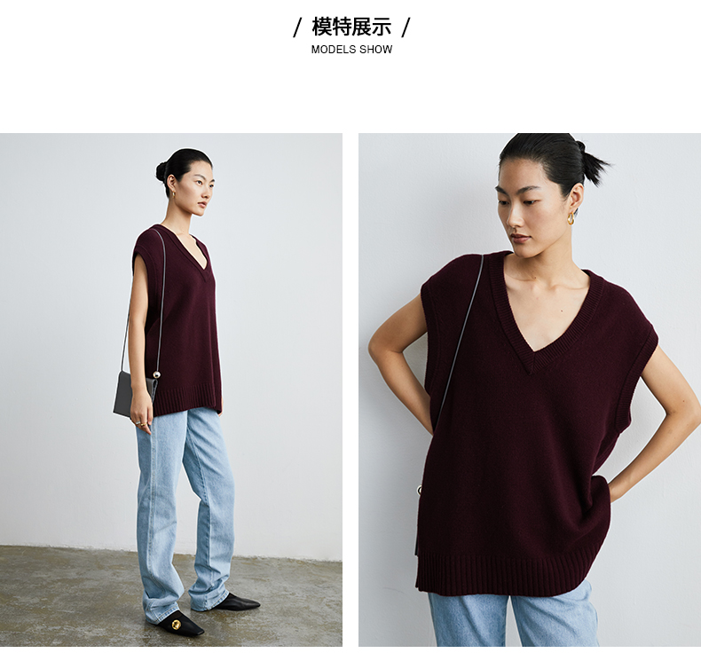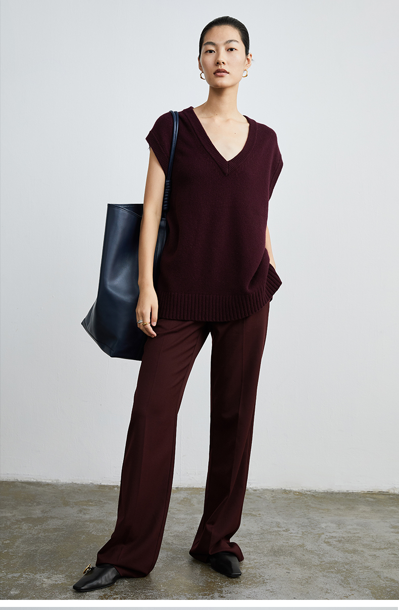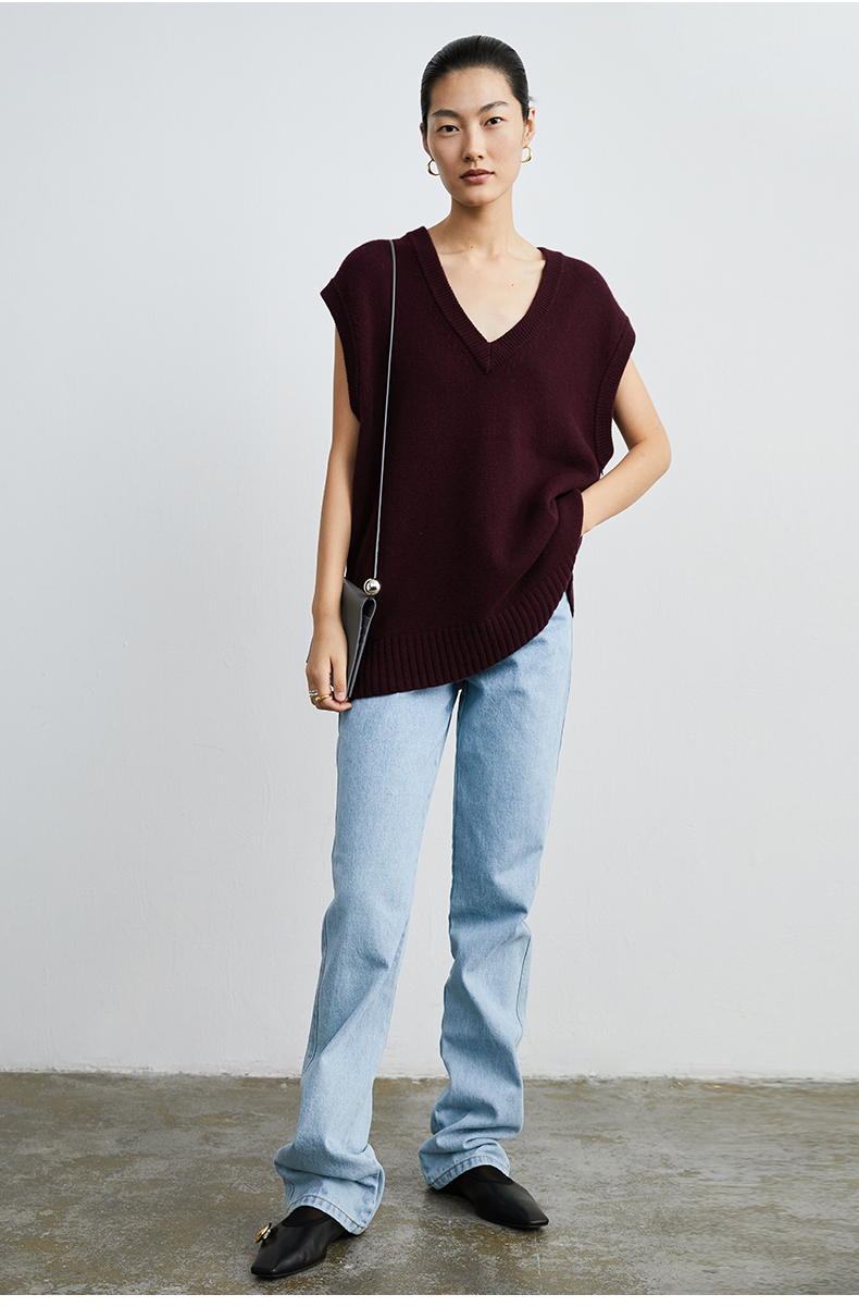 HIDEMI 美利奴羊毛酒红色v领马夹