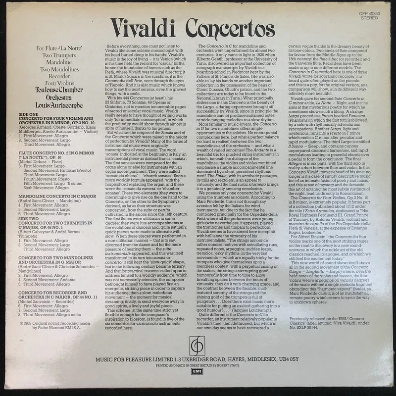 LP黑胶唱片 维瓦尔第《协奏曲》 图卢兹室内乐团 路易·奥里亚孔布指挥