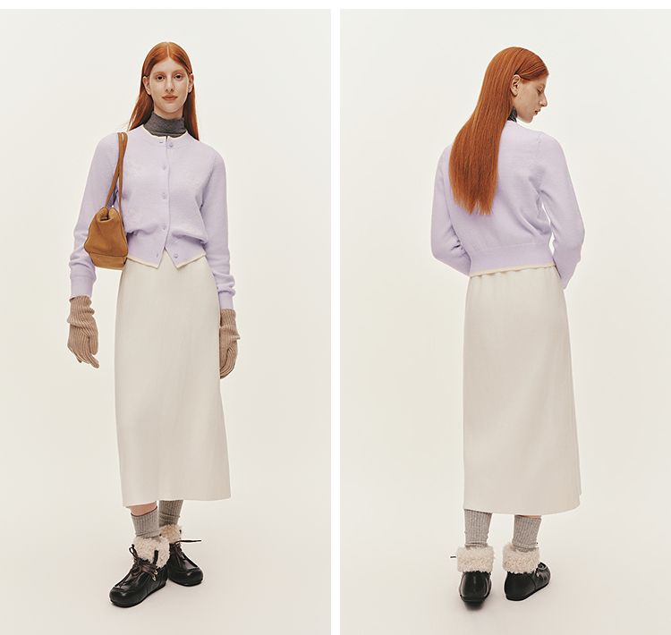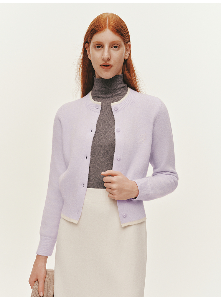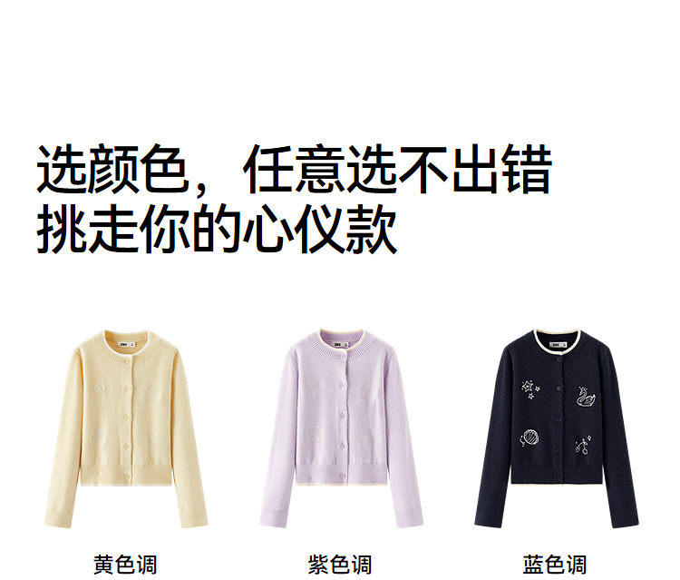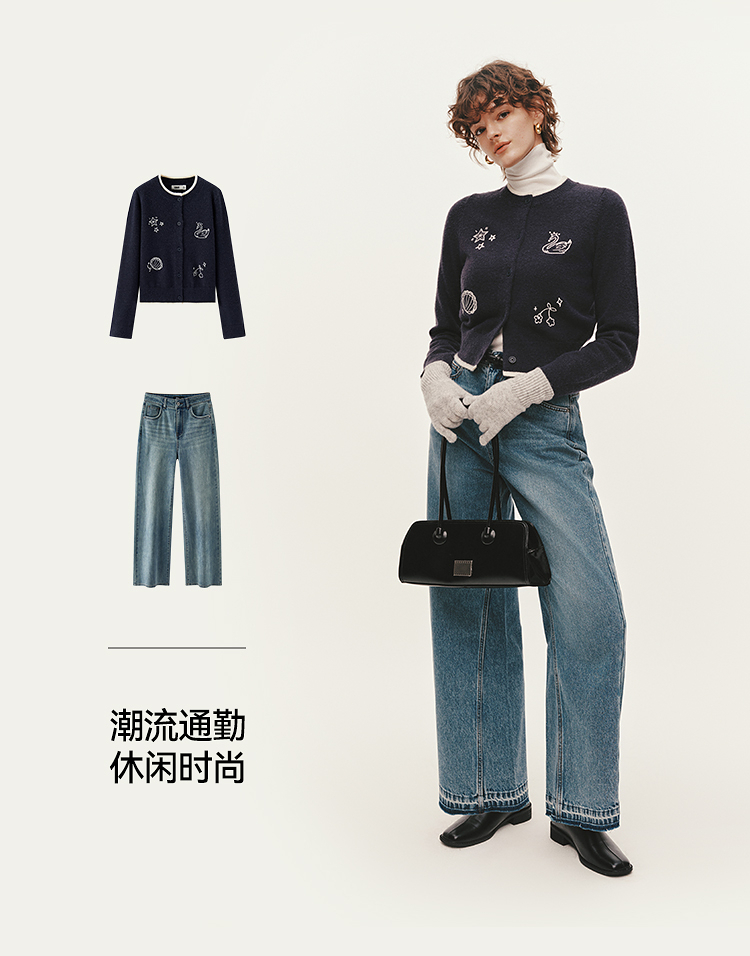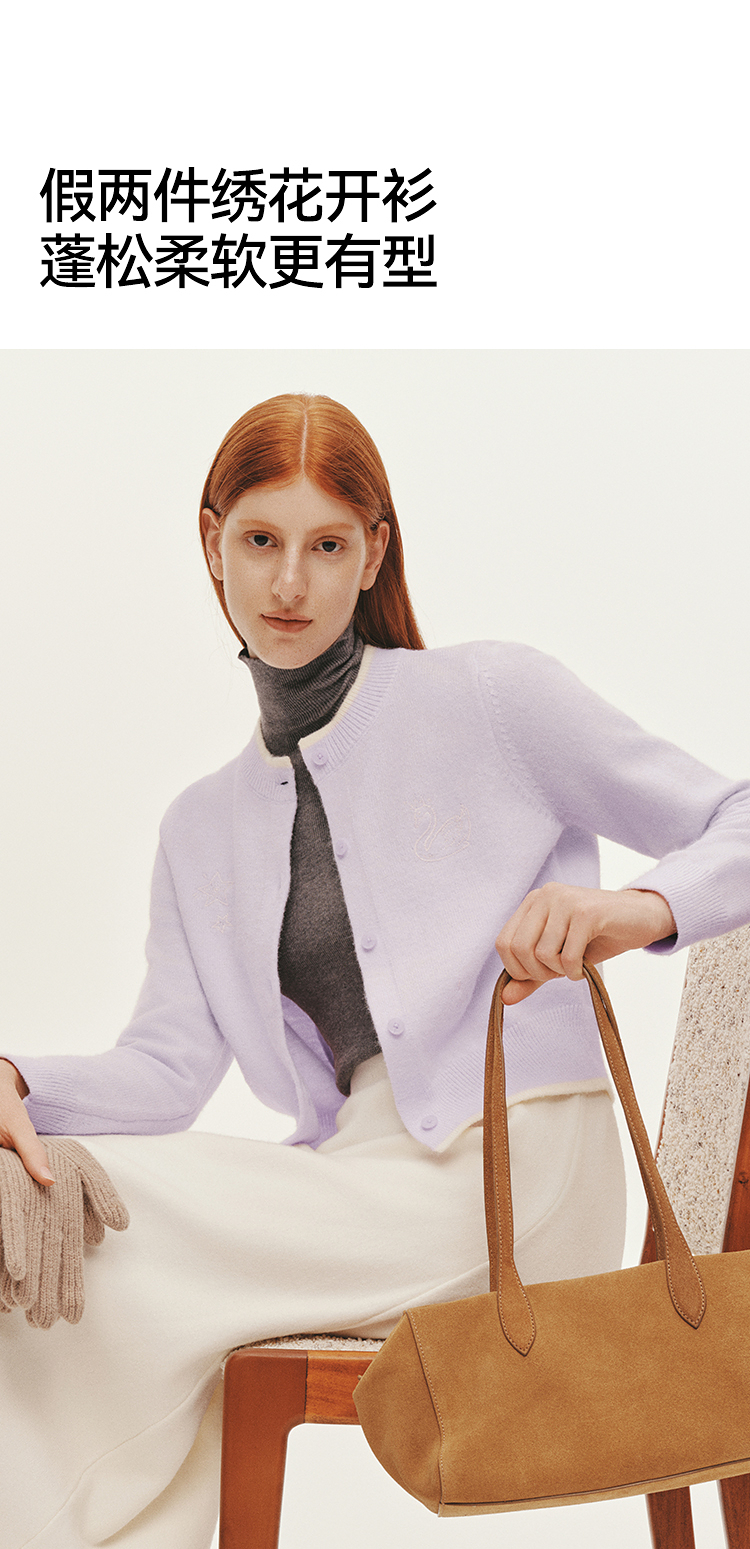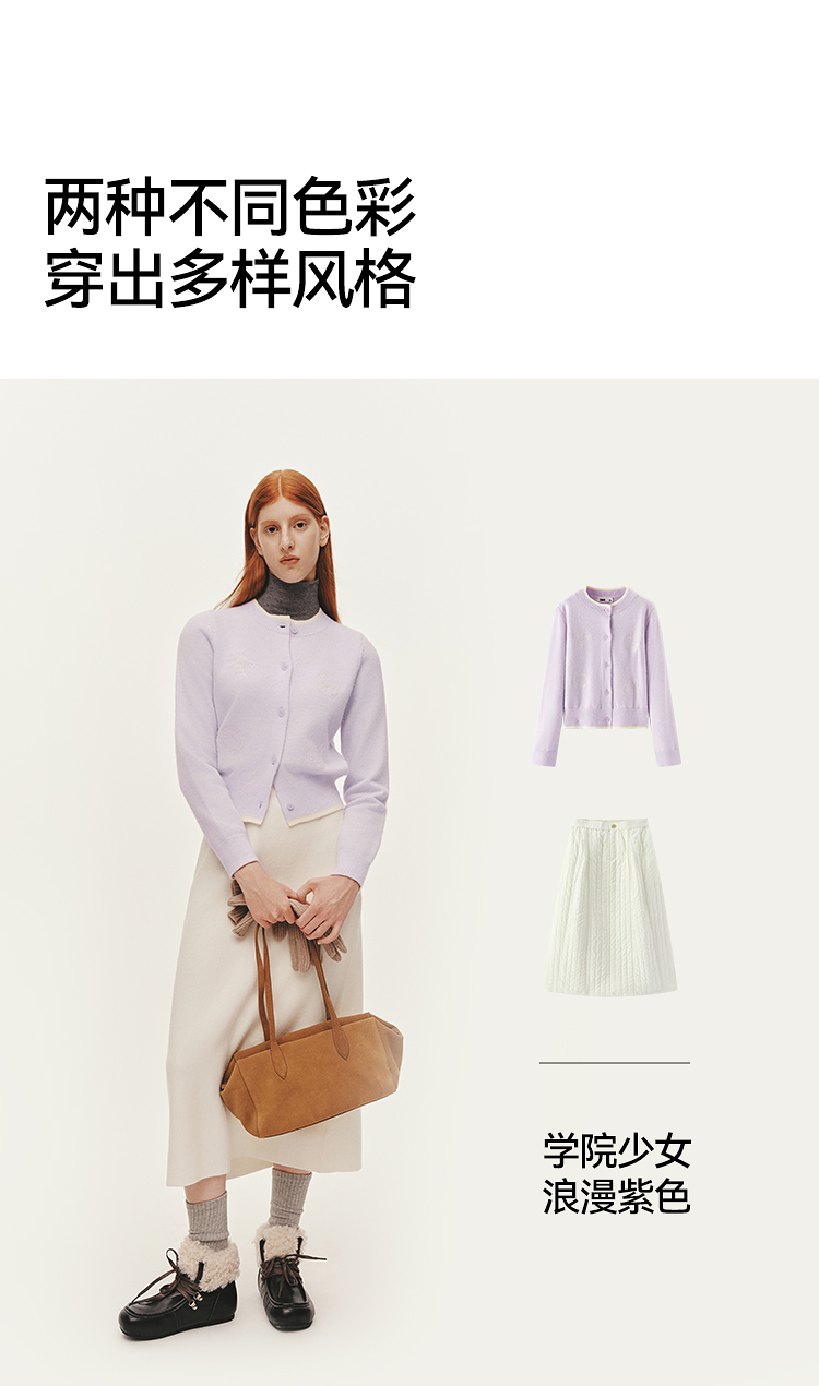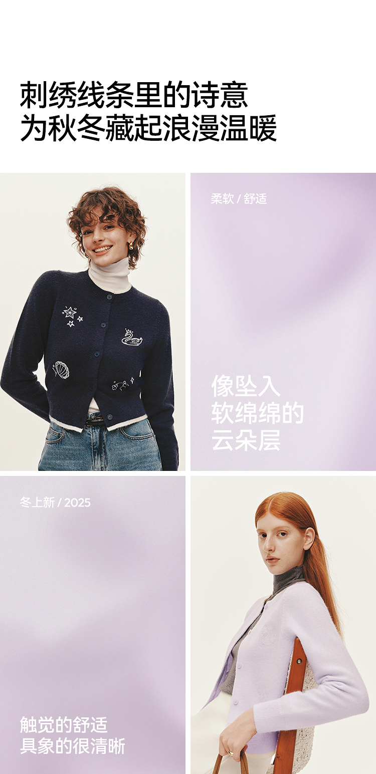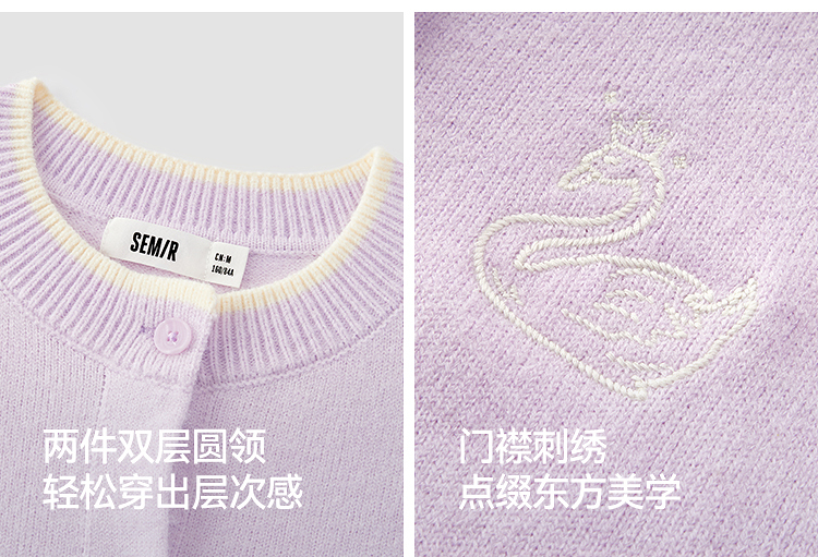 森马针织开衫女冬季短款绣花图案假两件正肩2025新款叠穿小众上衣