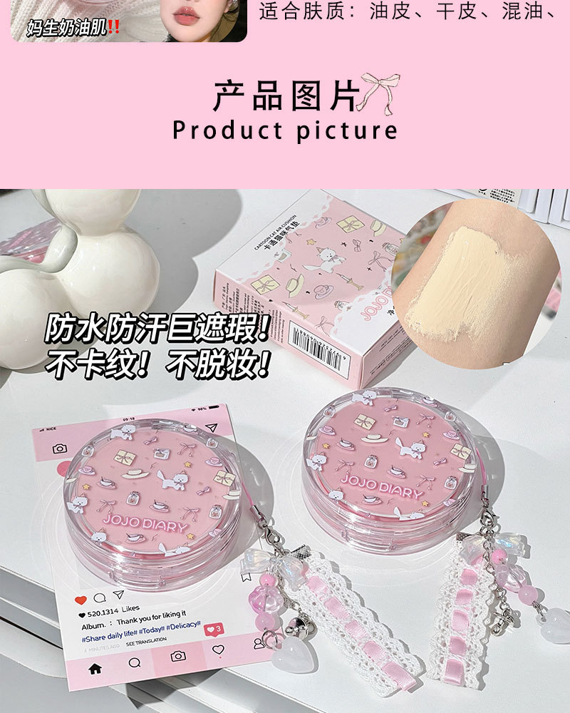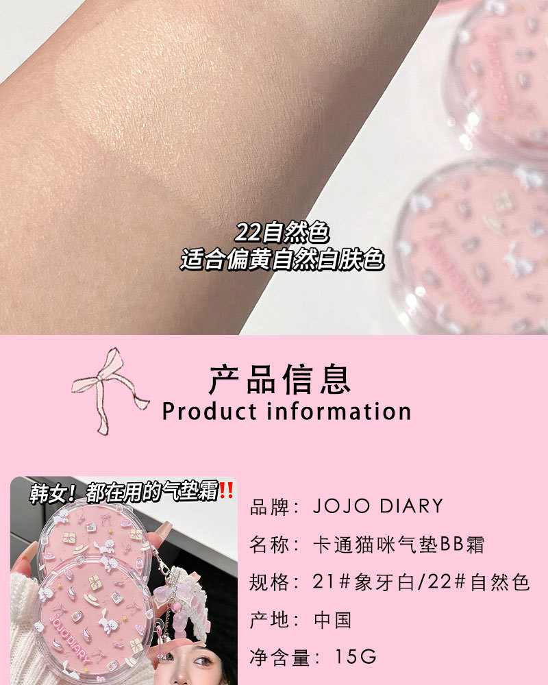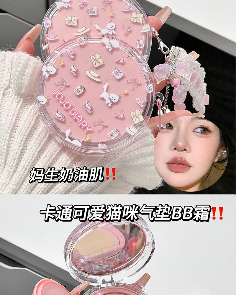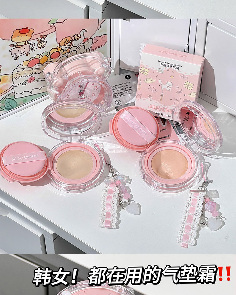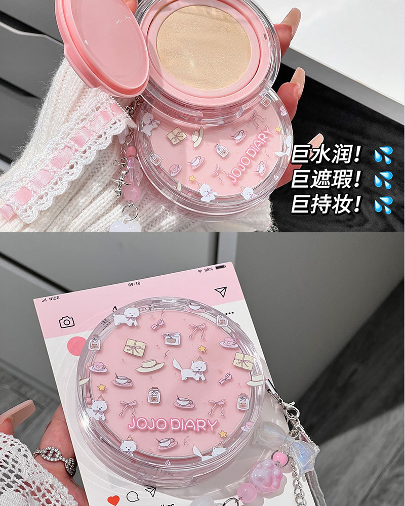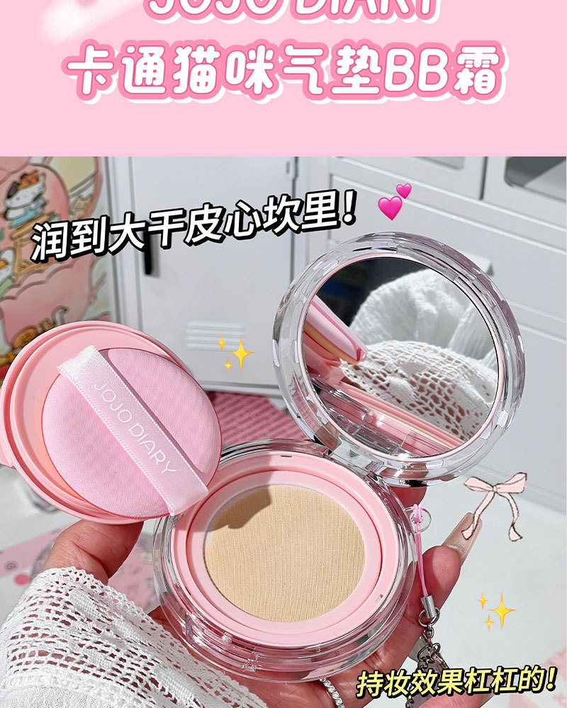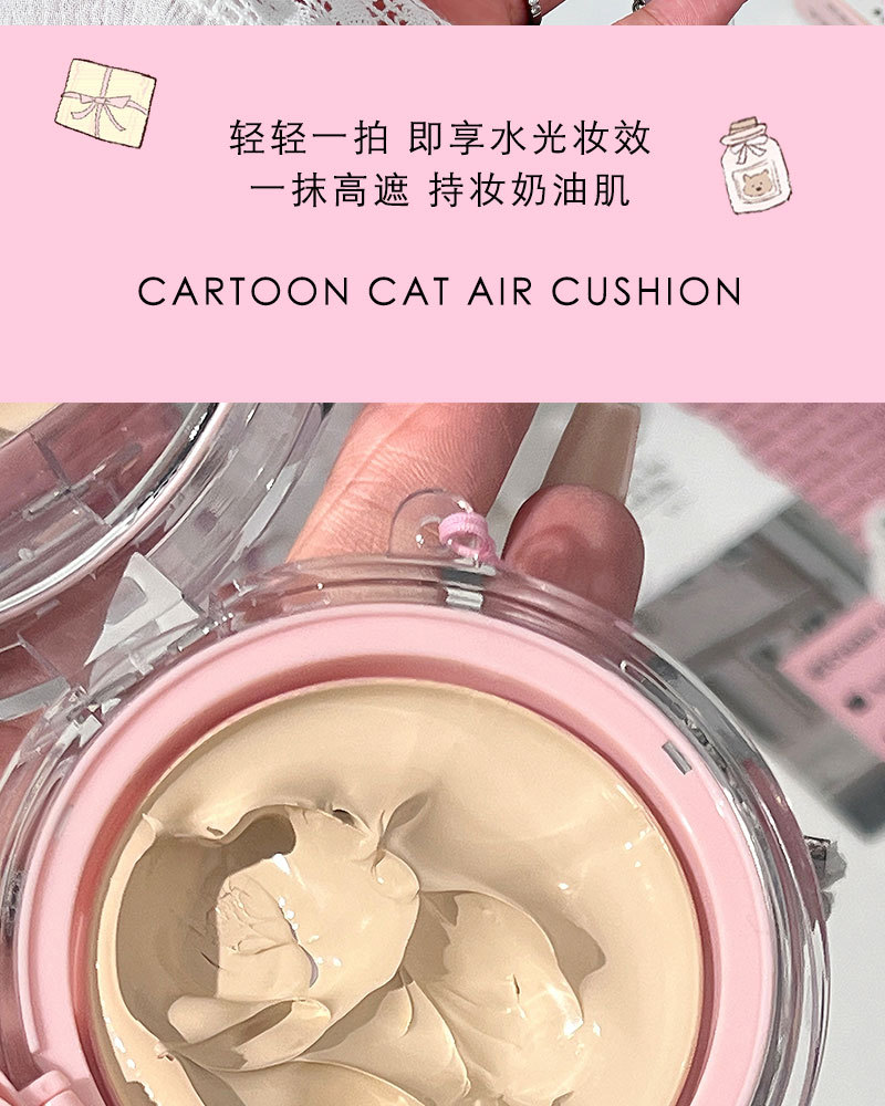 【控油持妆 !防水防汗】久久日记卡通猫咪气垫BB霜控油遮瑕持久防水不脱妆学生平价气垫霜。xb