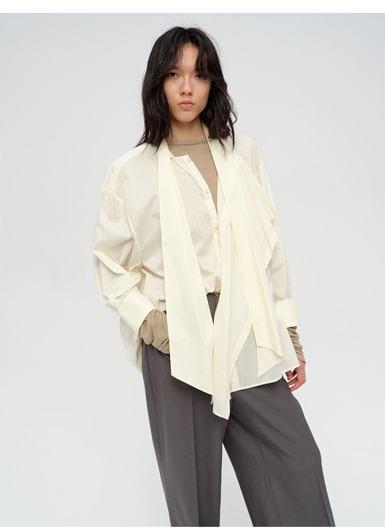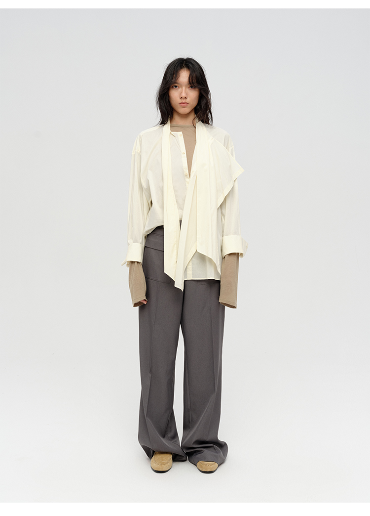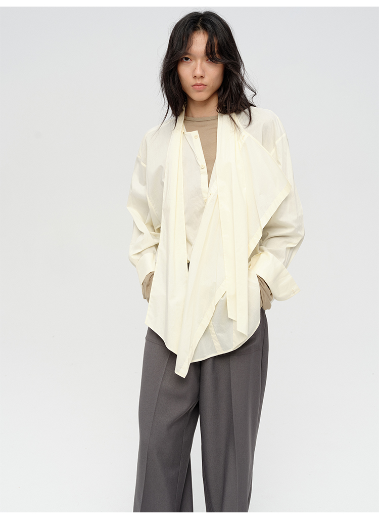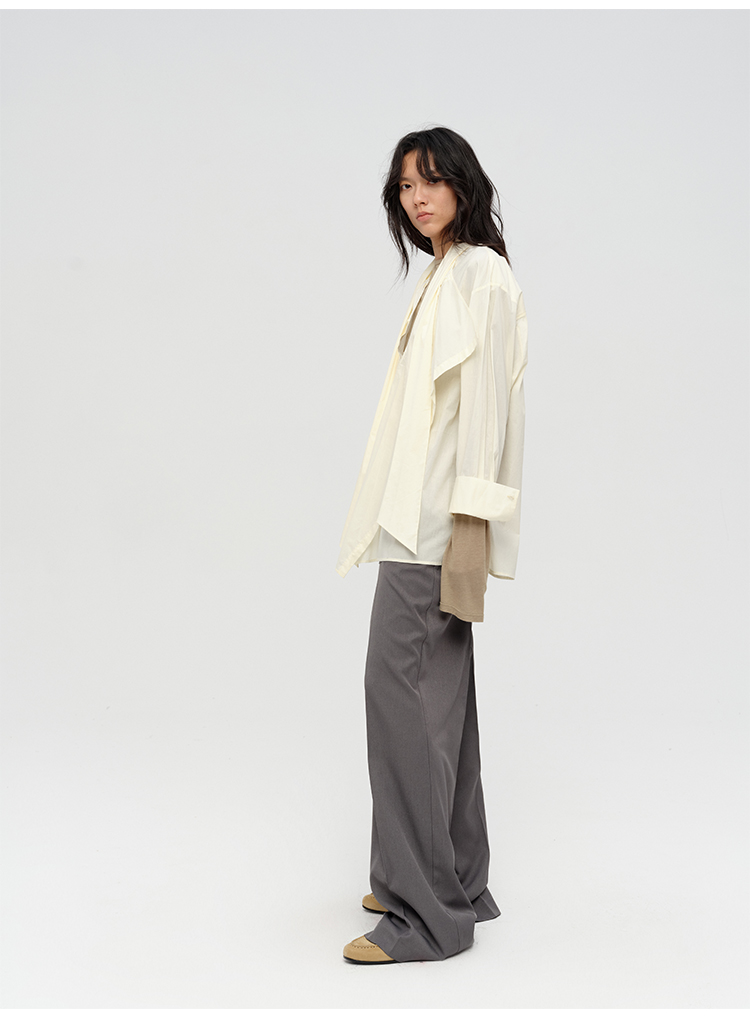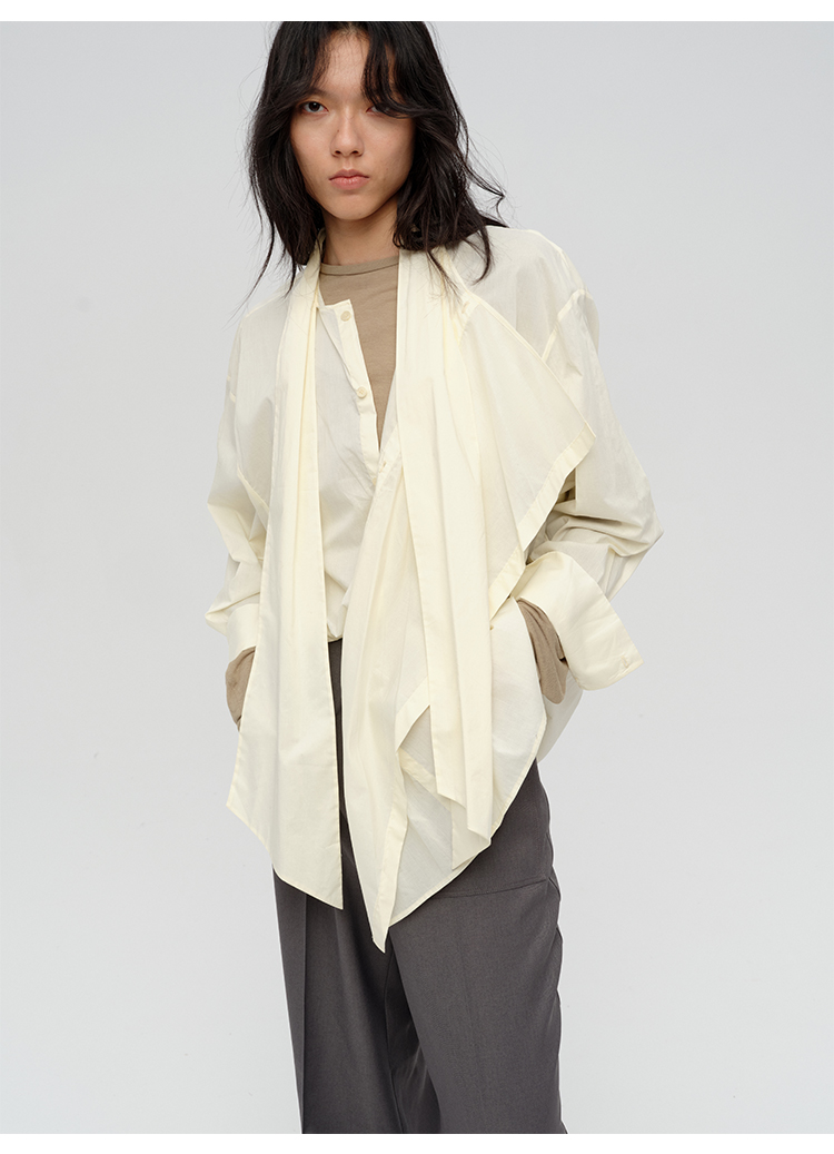 HIDEMI本期必入拉链褶皱廓形衬衫 黑色/白色