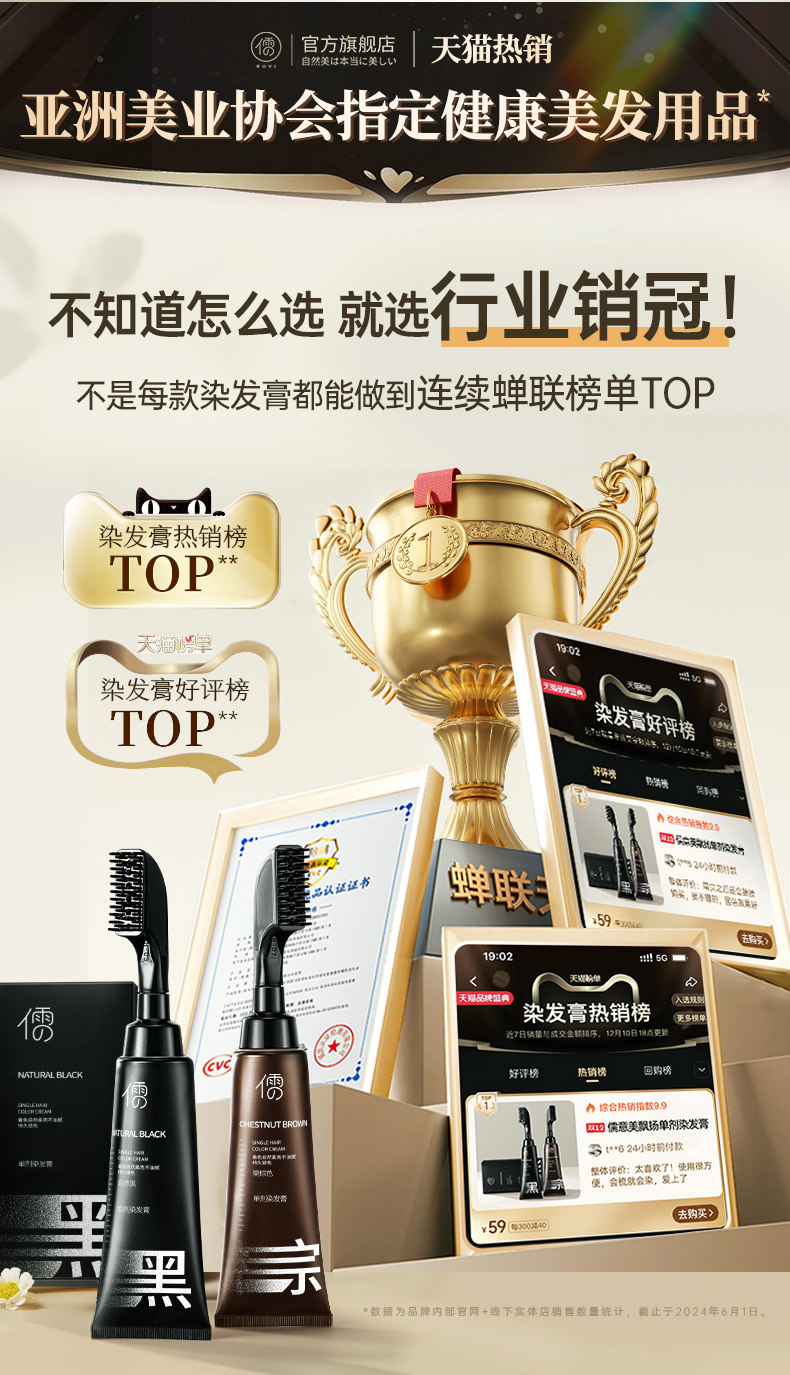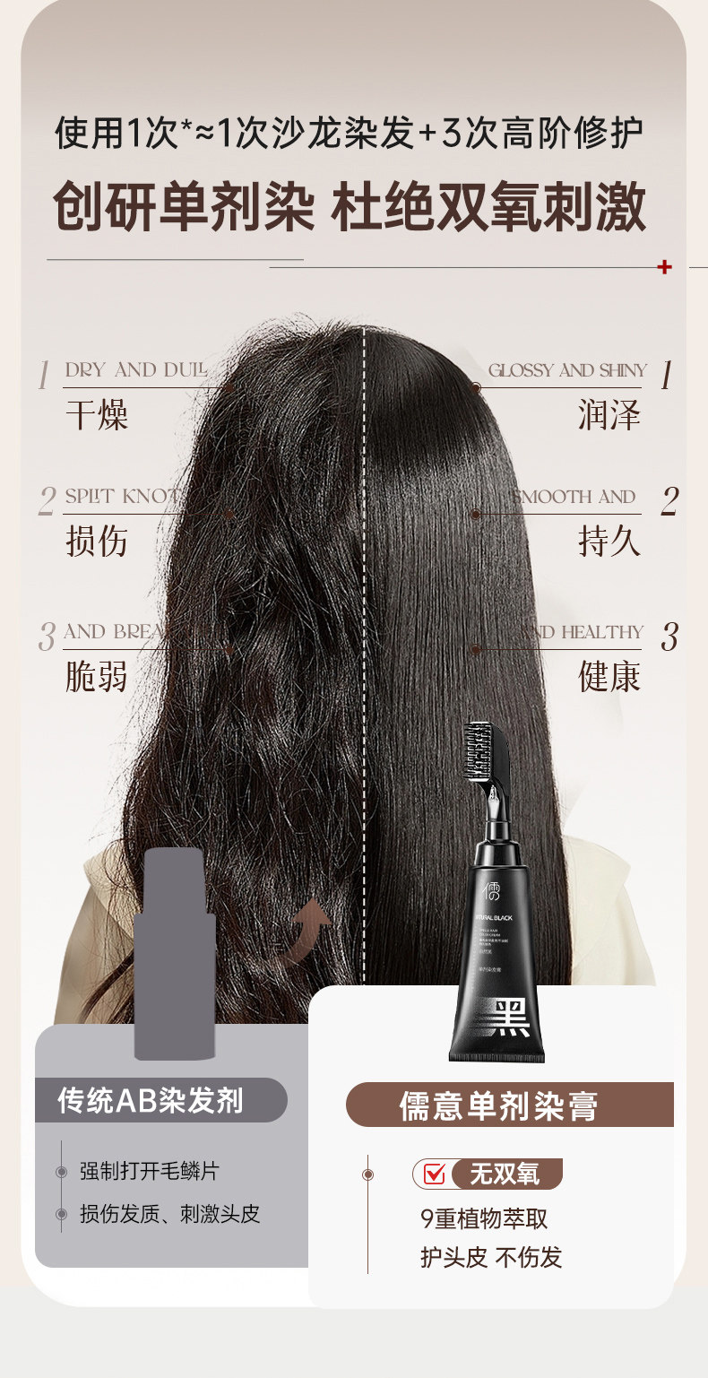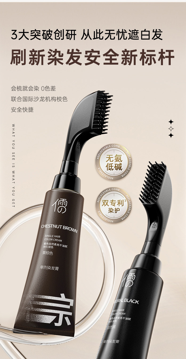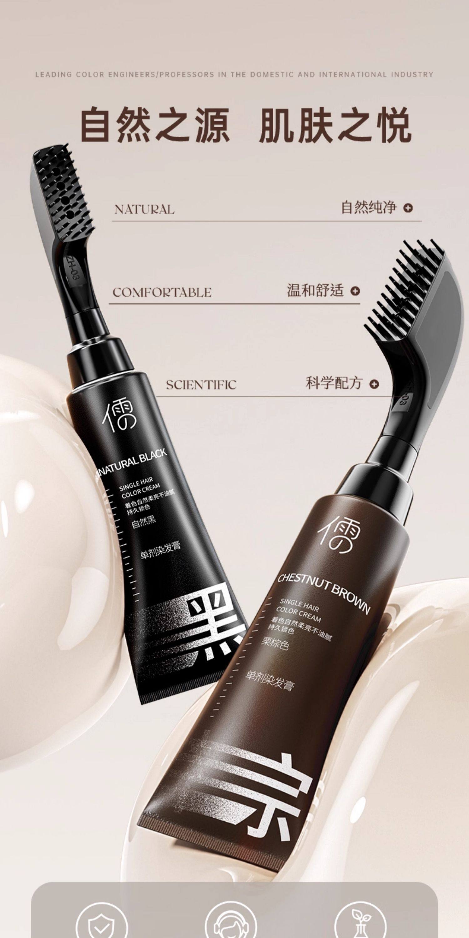 【3大潮色任意选】儒意·单剂染发膏 0刺激、0掉色 自带染发梳 一挤一梳 在家30分钟搞定染发 80ml/支