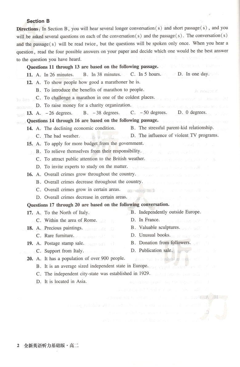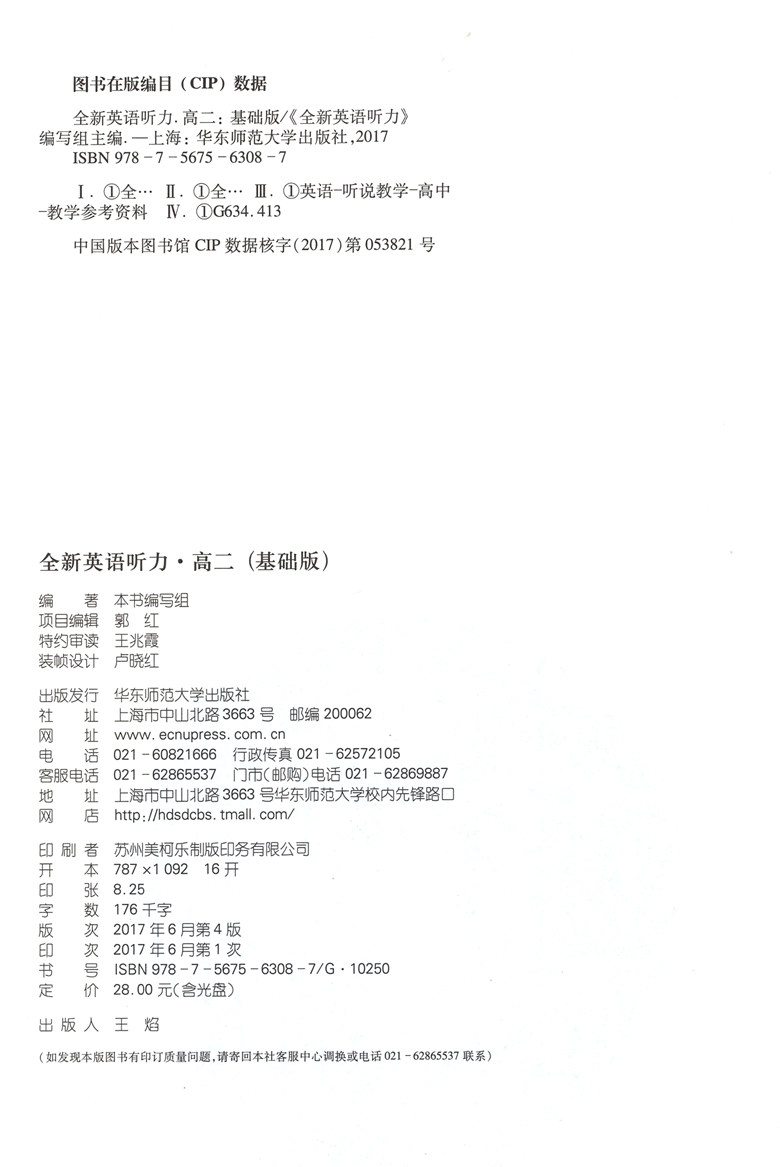 全新英语听力 高2年级/高二年级 基础版(含MP3光盘一张 英语学习教材