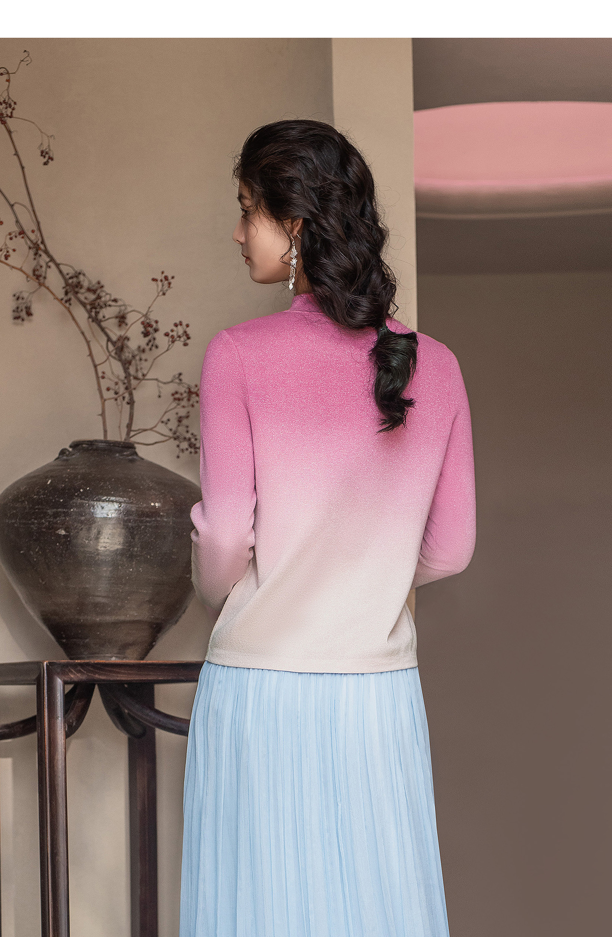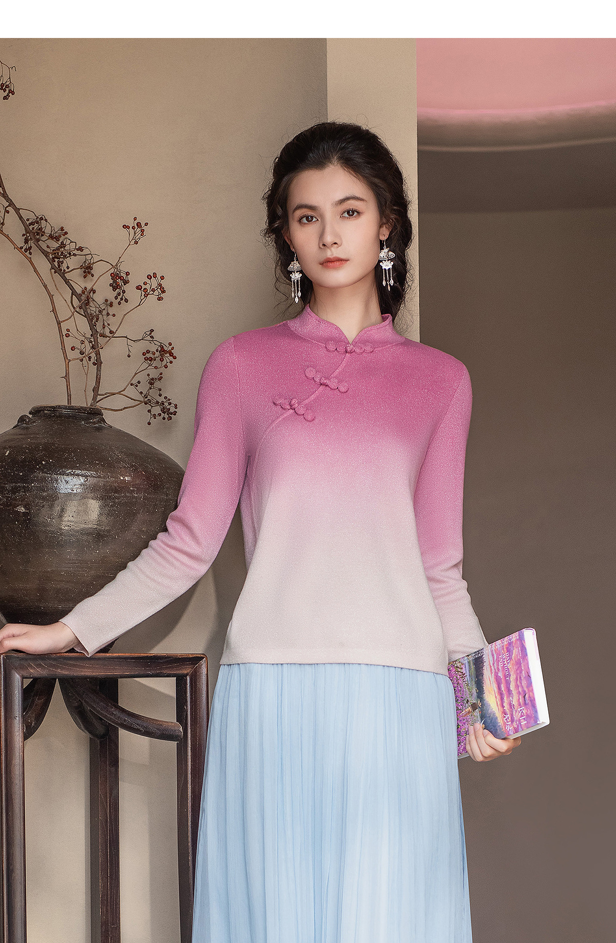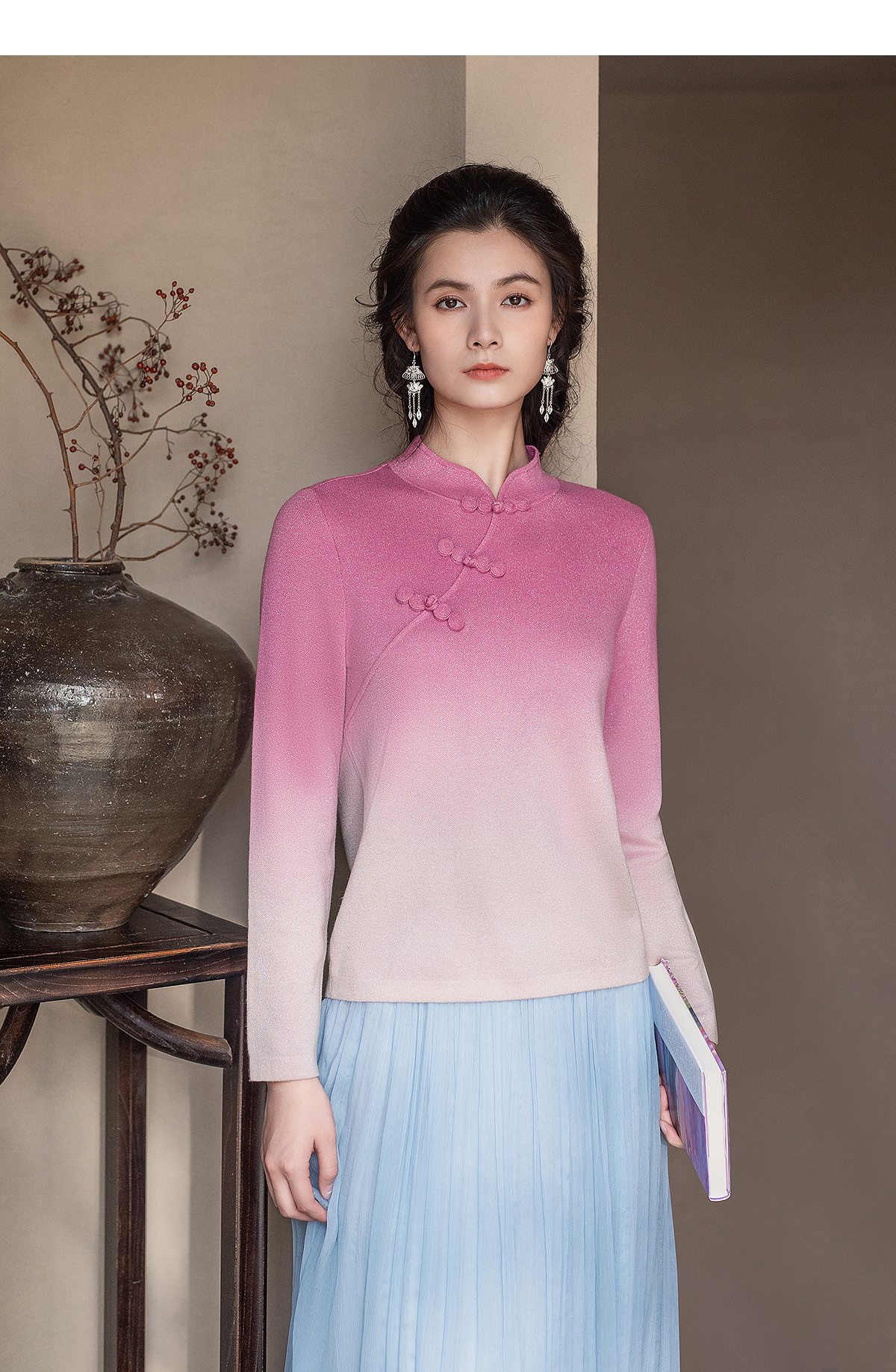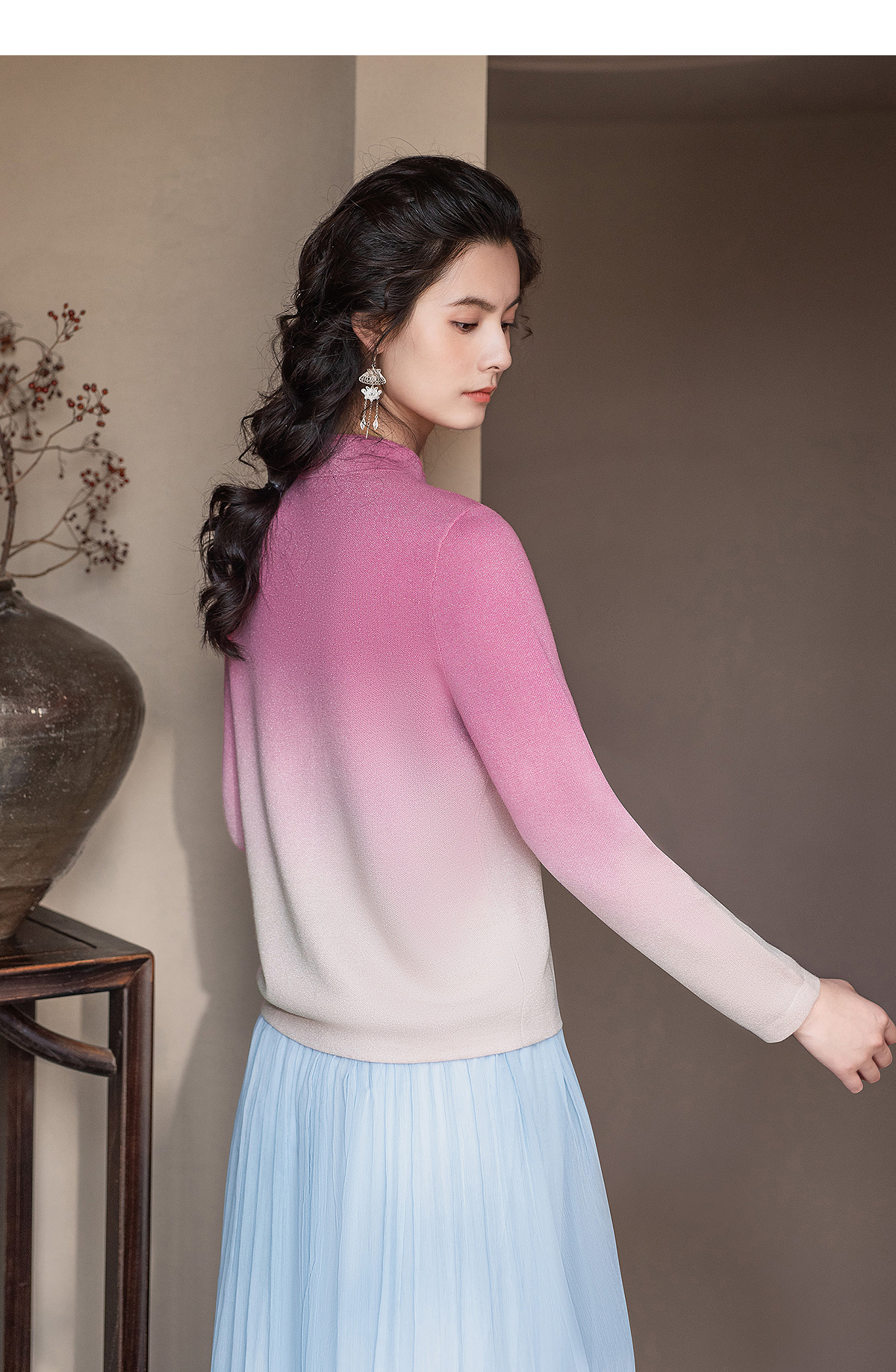 【林栖设计小店】多色渐变毛织衫2024秋冬新品新中式盘扣长袖毛衣针织衫女1941240
